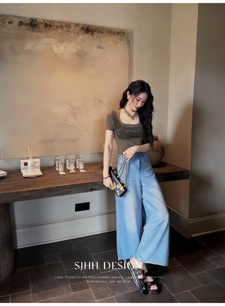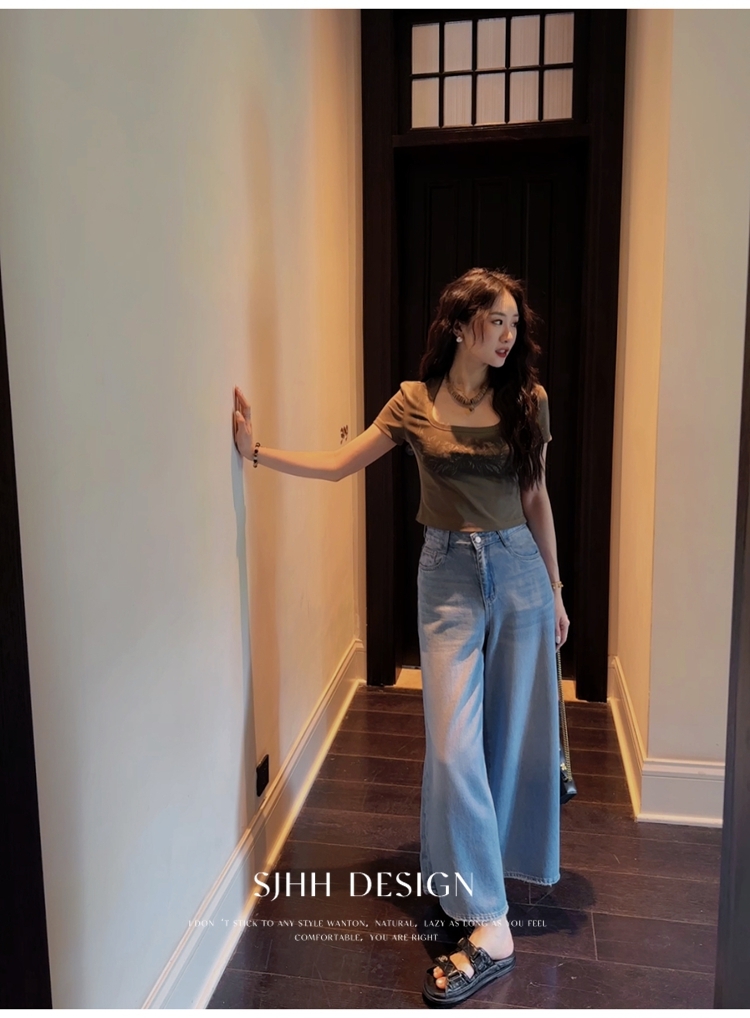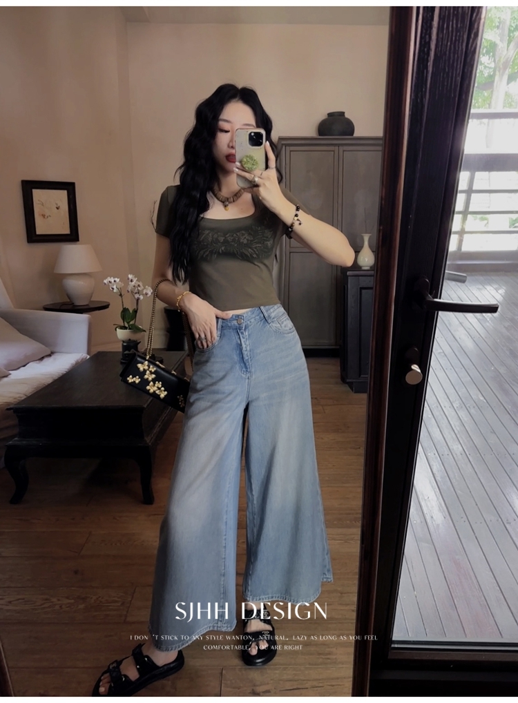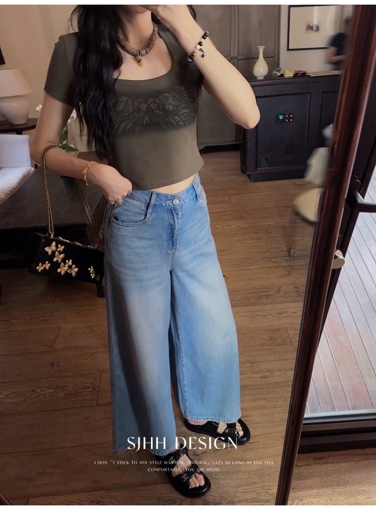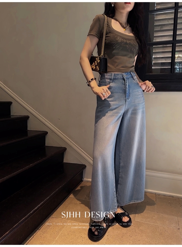 *o-ha-you*【FSJ0124】【標配】百搭款闊腿牛仔褲
