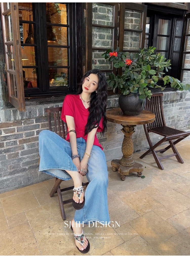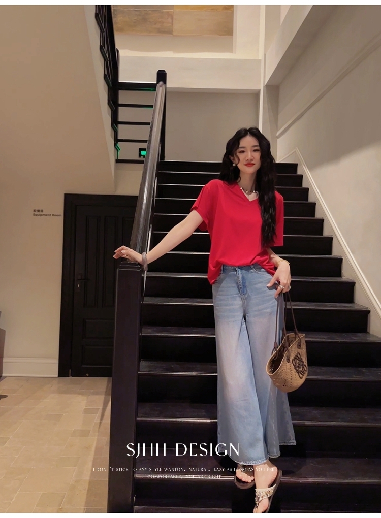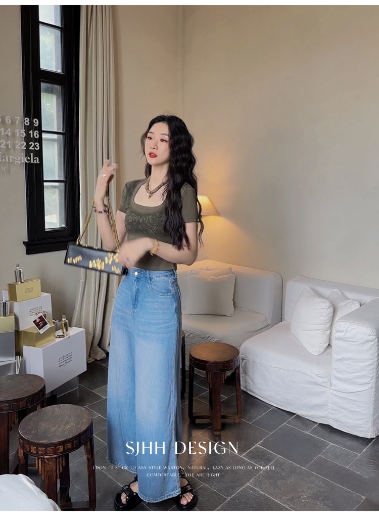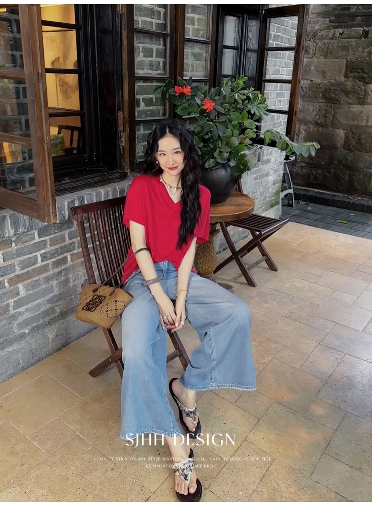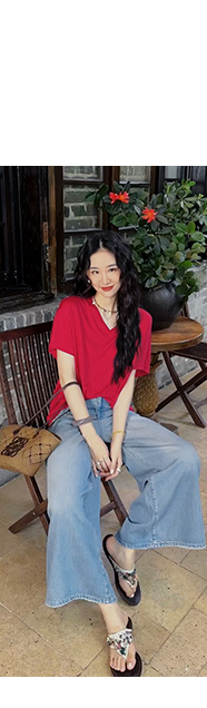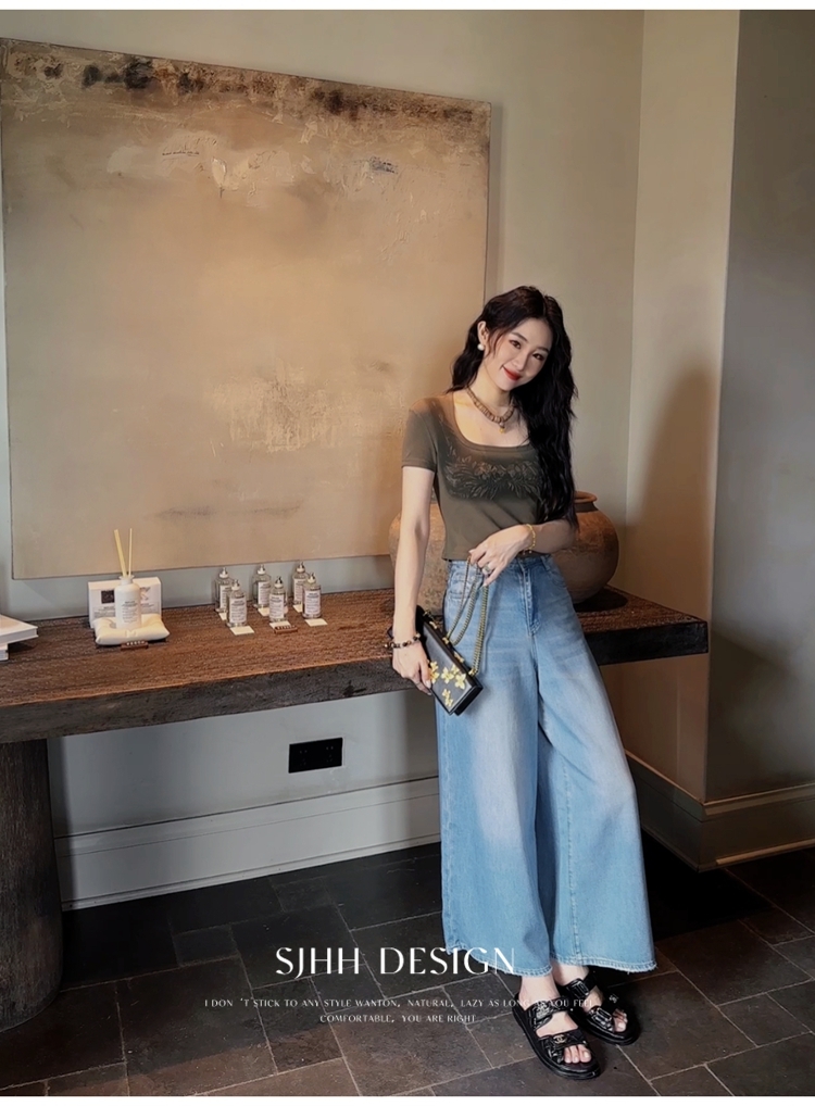 *o-ha-you*【FSJ0124】【標配】百搭款闊腿牛仔褲