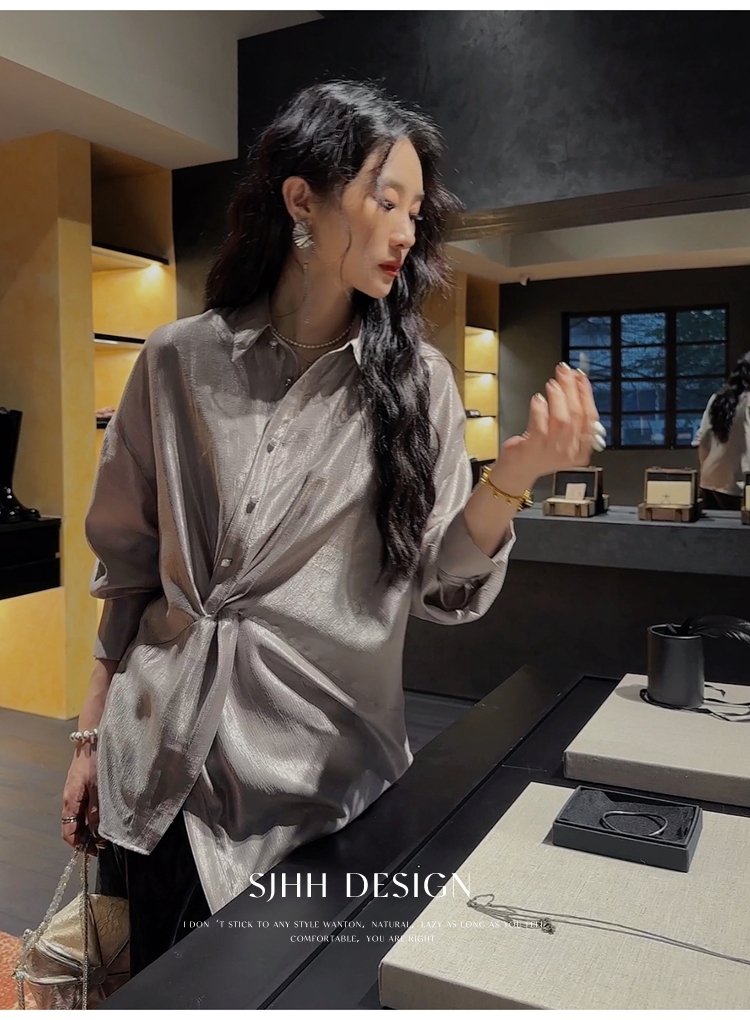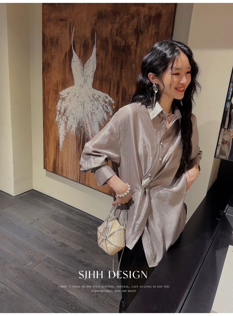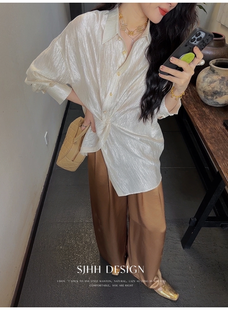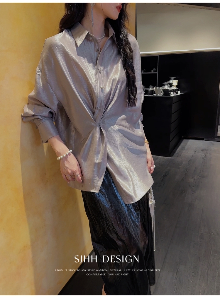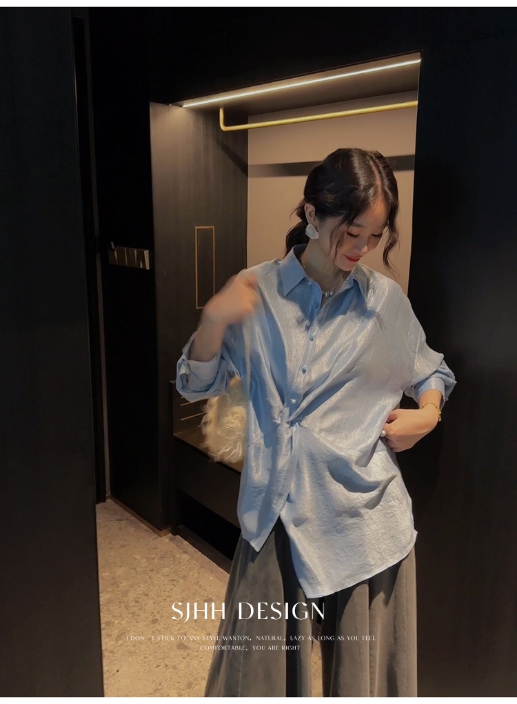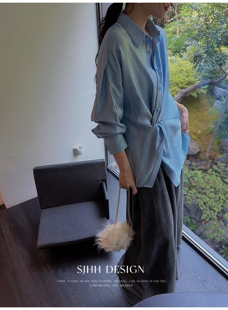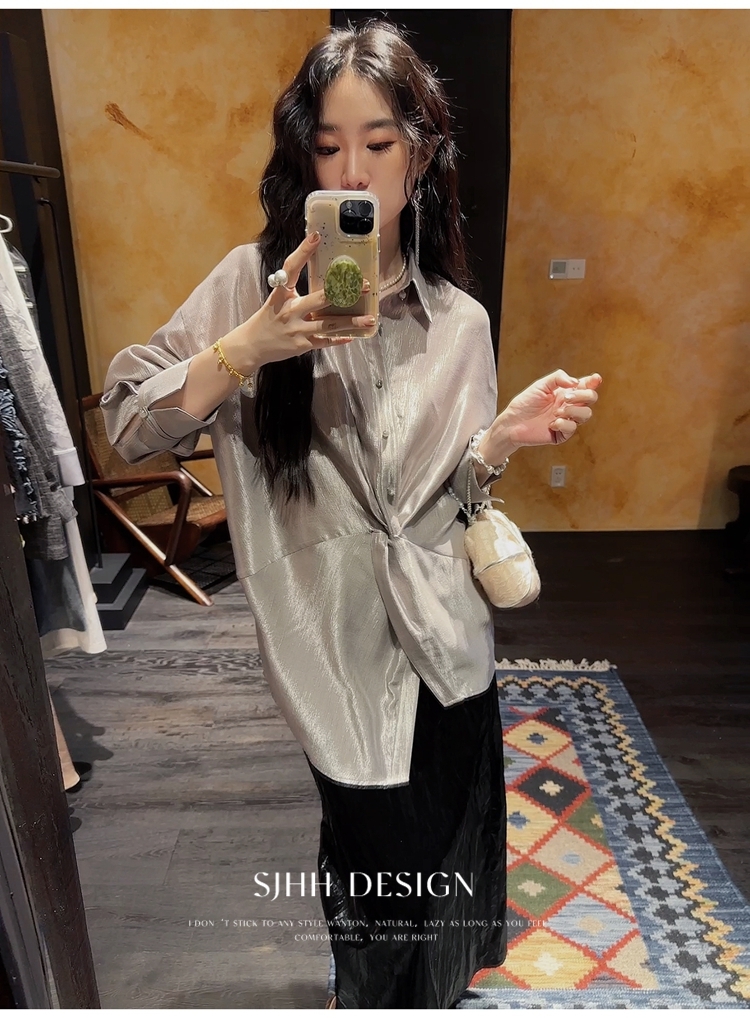 *o-ha-you*【FSJ0135】【韶光】寬鬆款絲光扭結襯衫