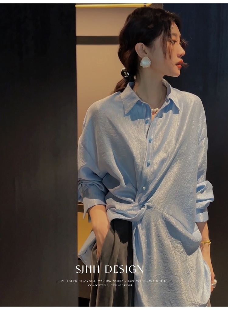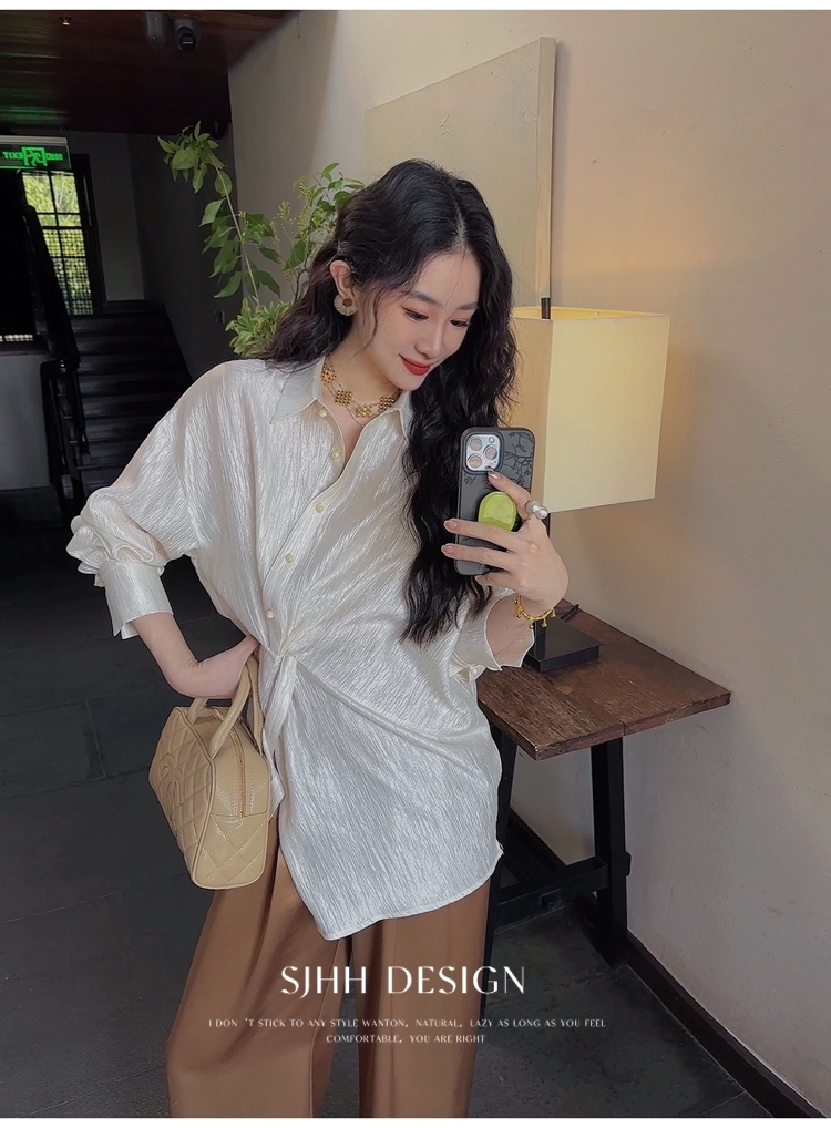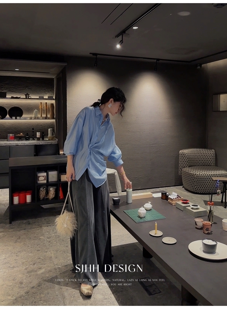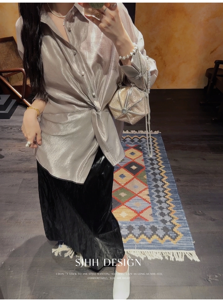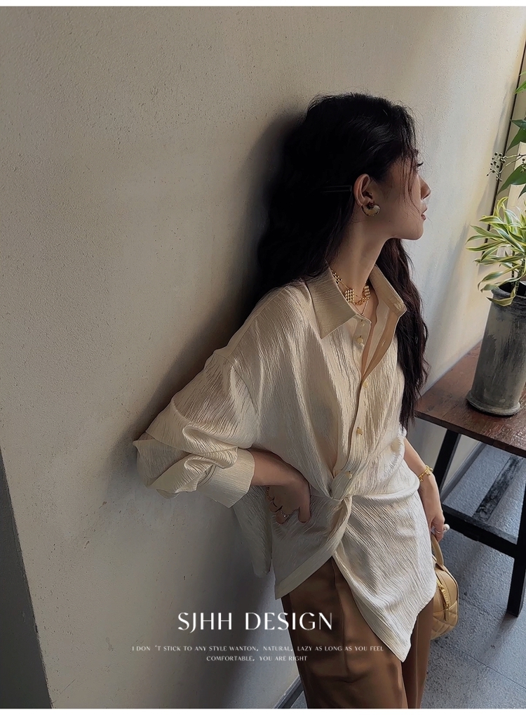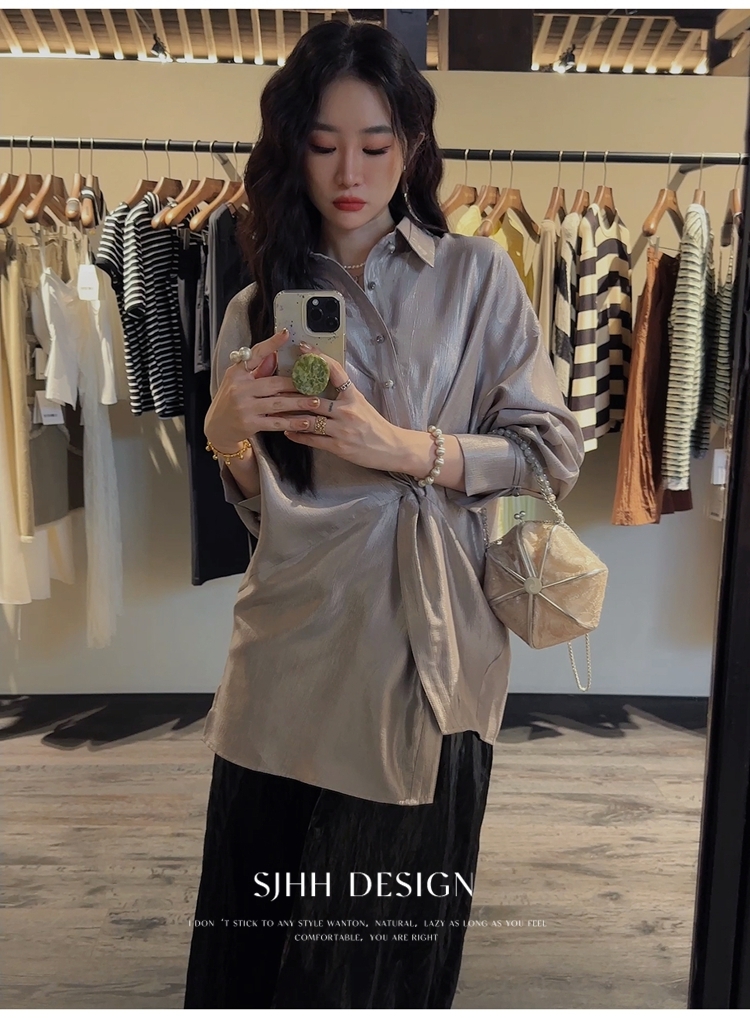 *o-ha-you*【FSJ0135】【韶光】寬鬆款絲光扭結襯衫