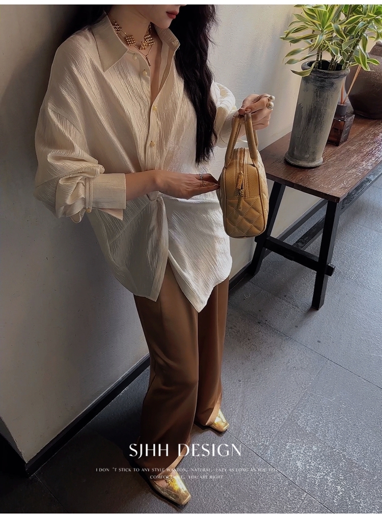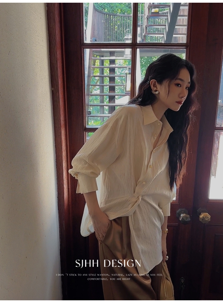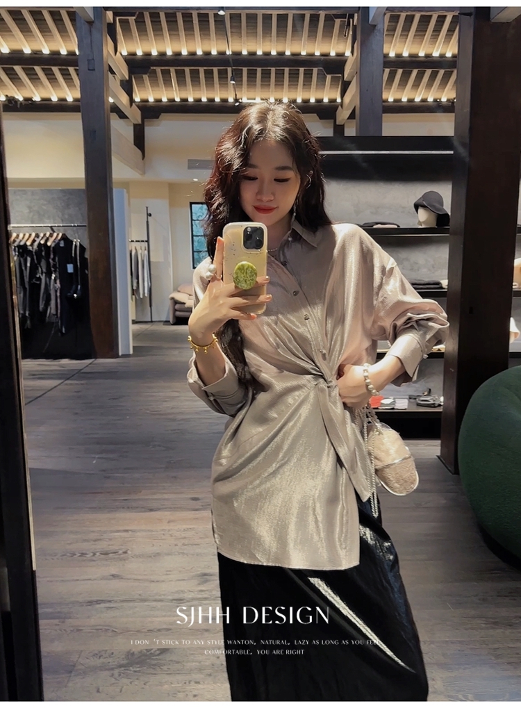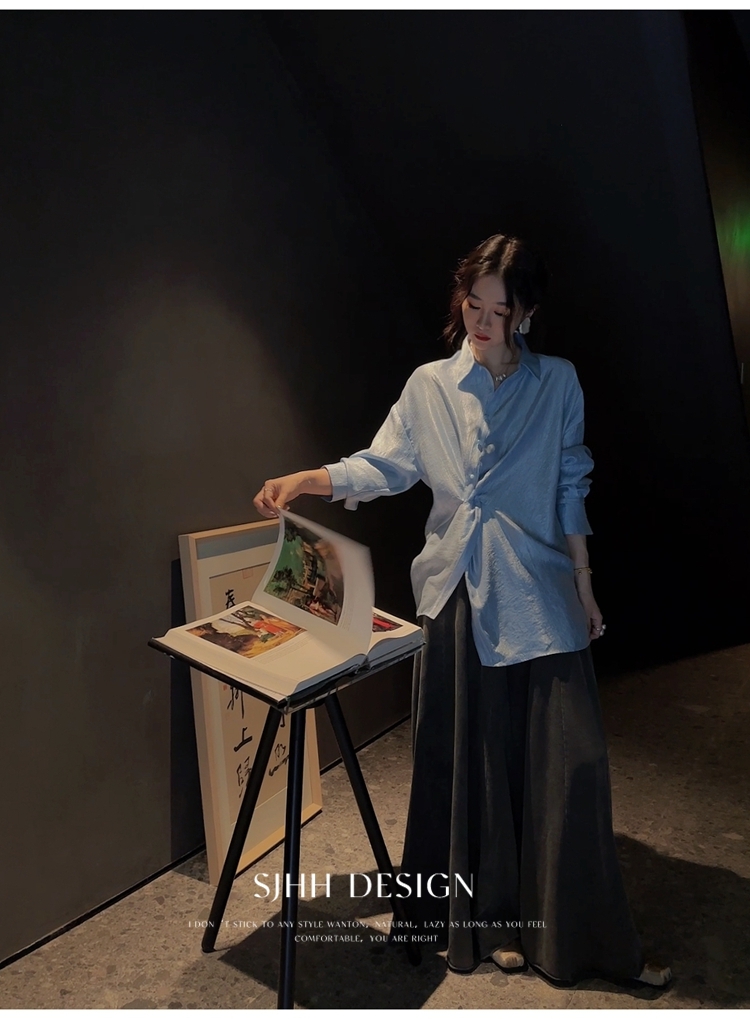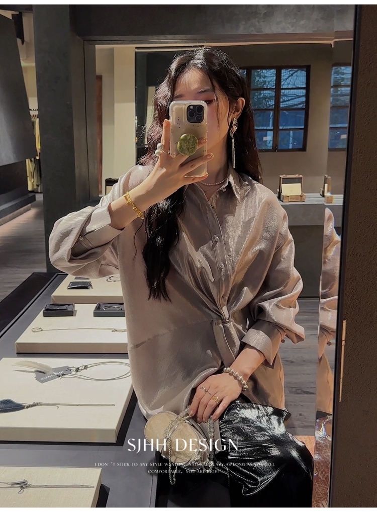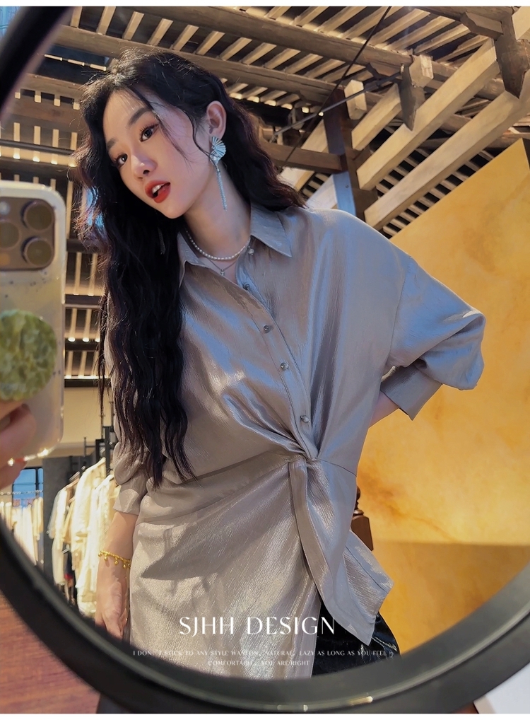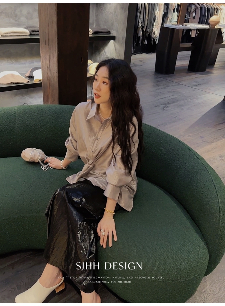 *o-ha-you*【FSJ0135】【韶光】寬鬆款絲光扭結襯衫
