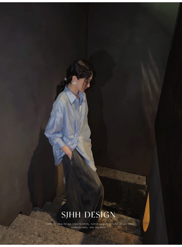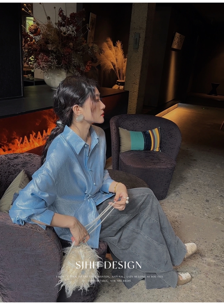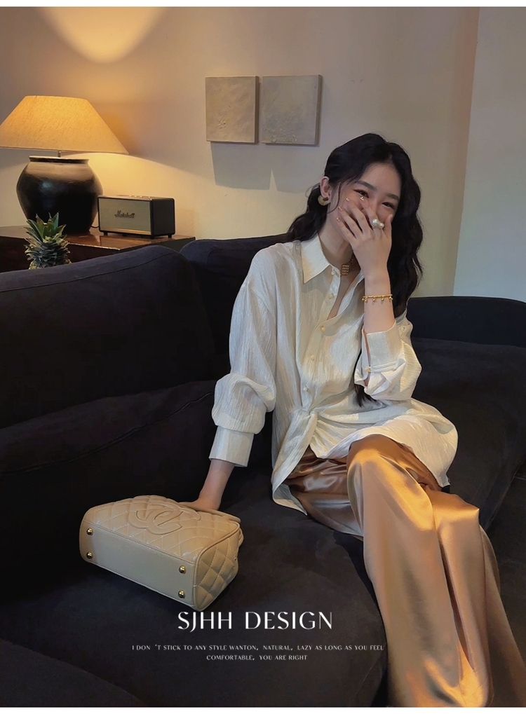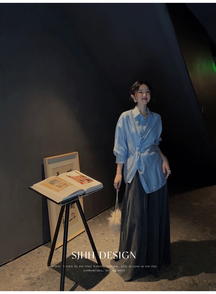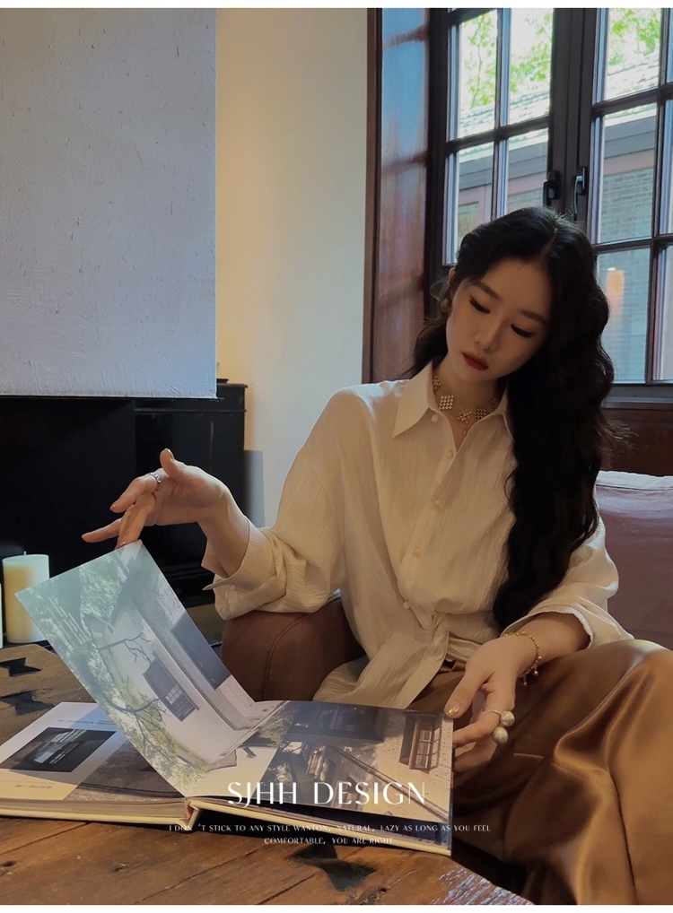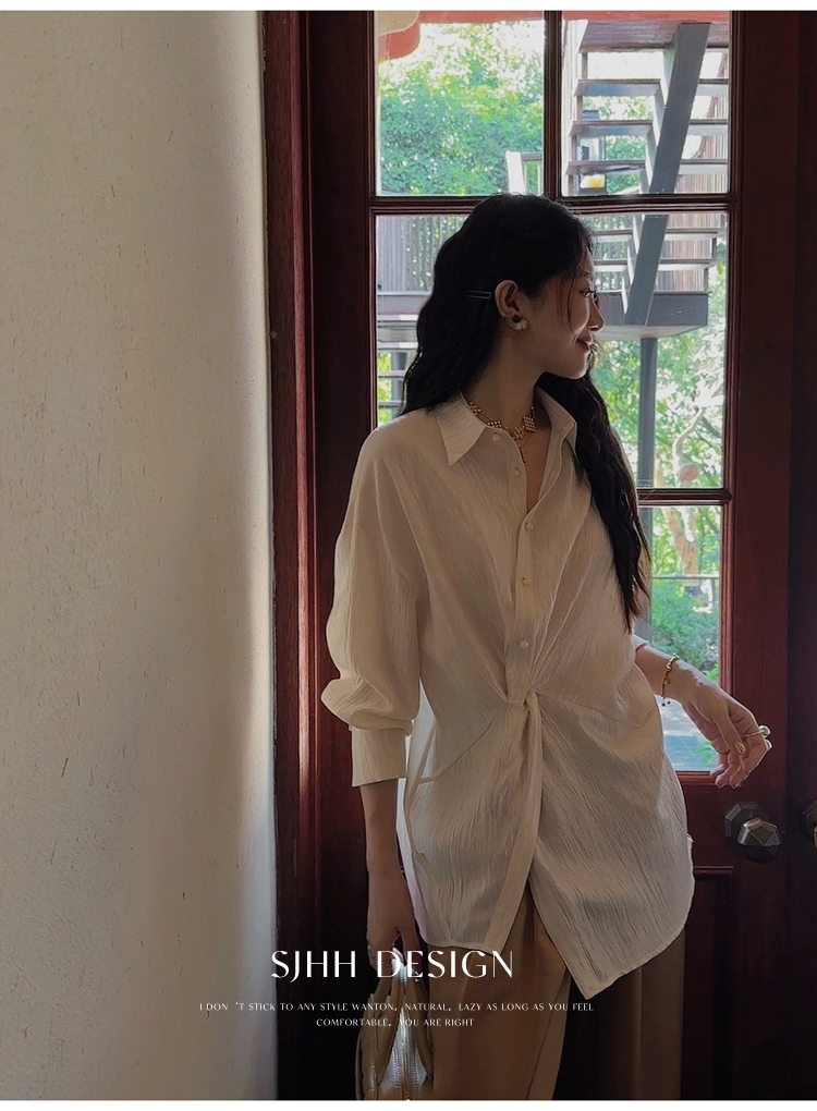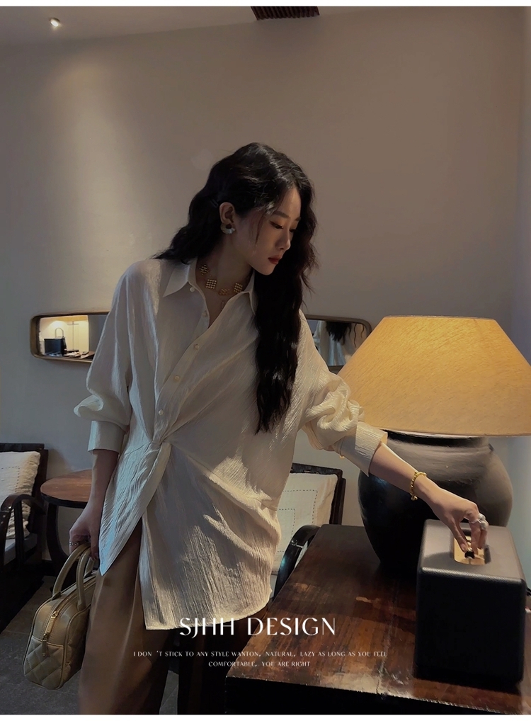 *o-ha-you*【FSJ0135】【韶光】寬鬆款絲光扭結襯衫