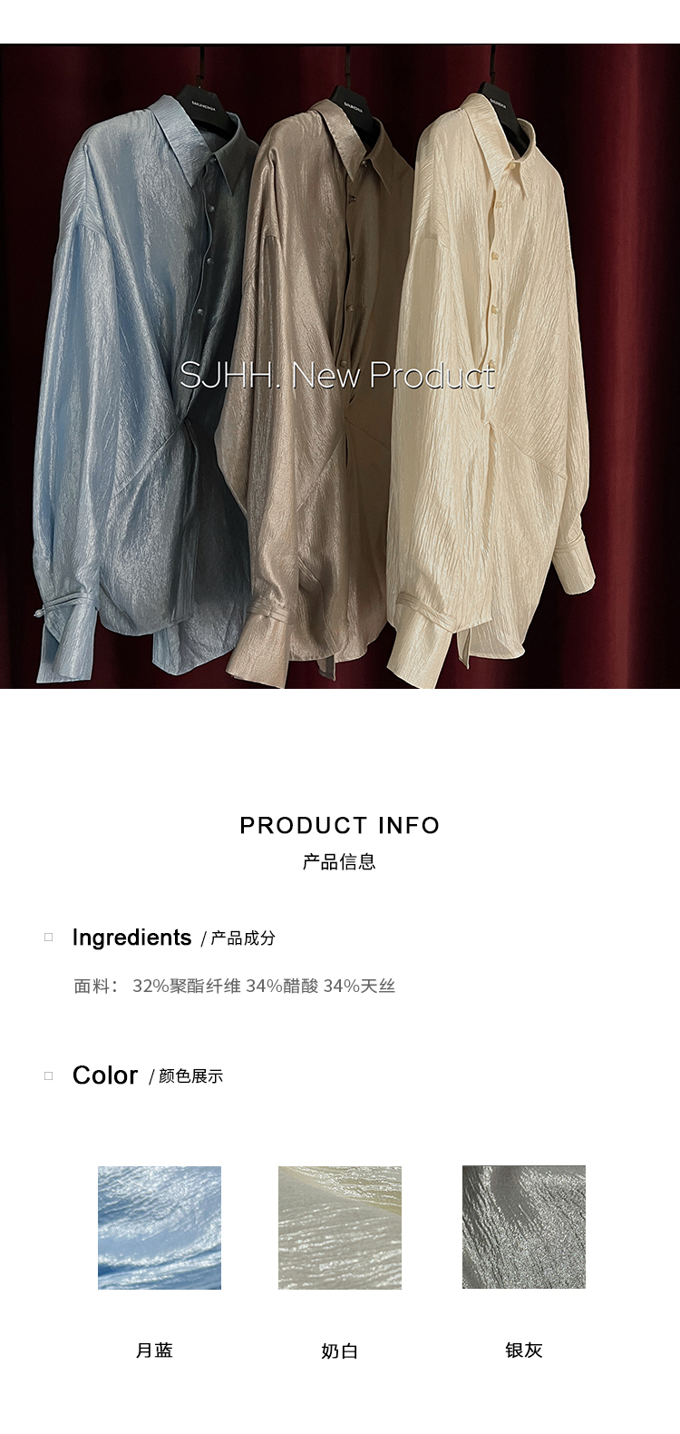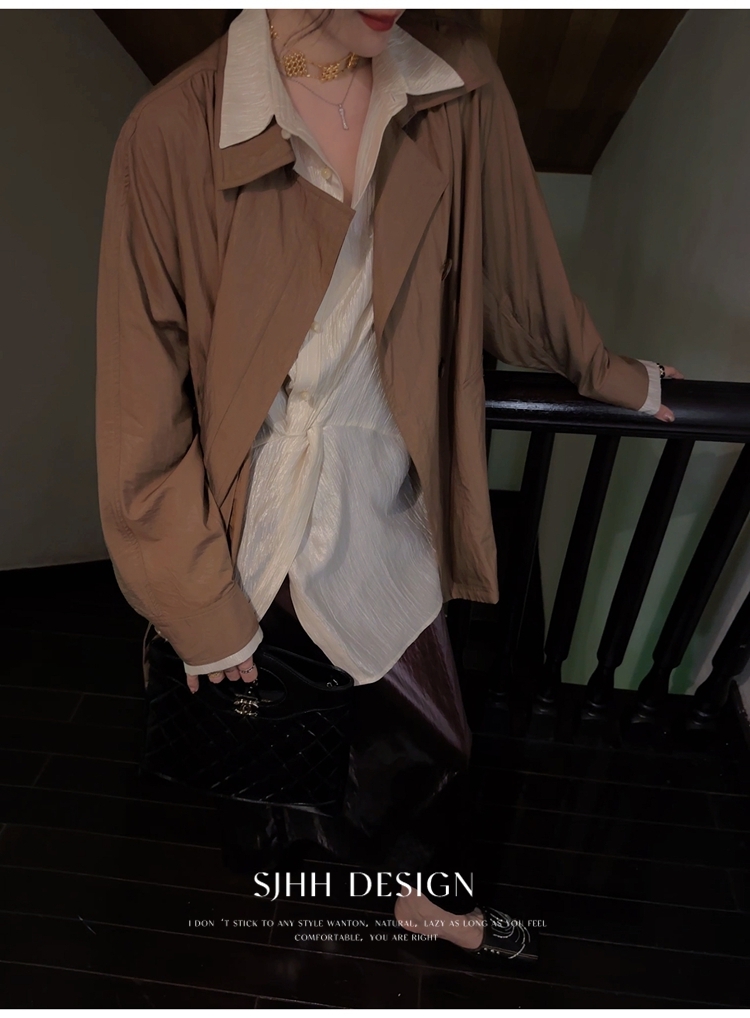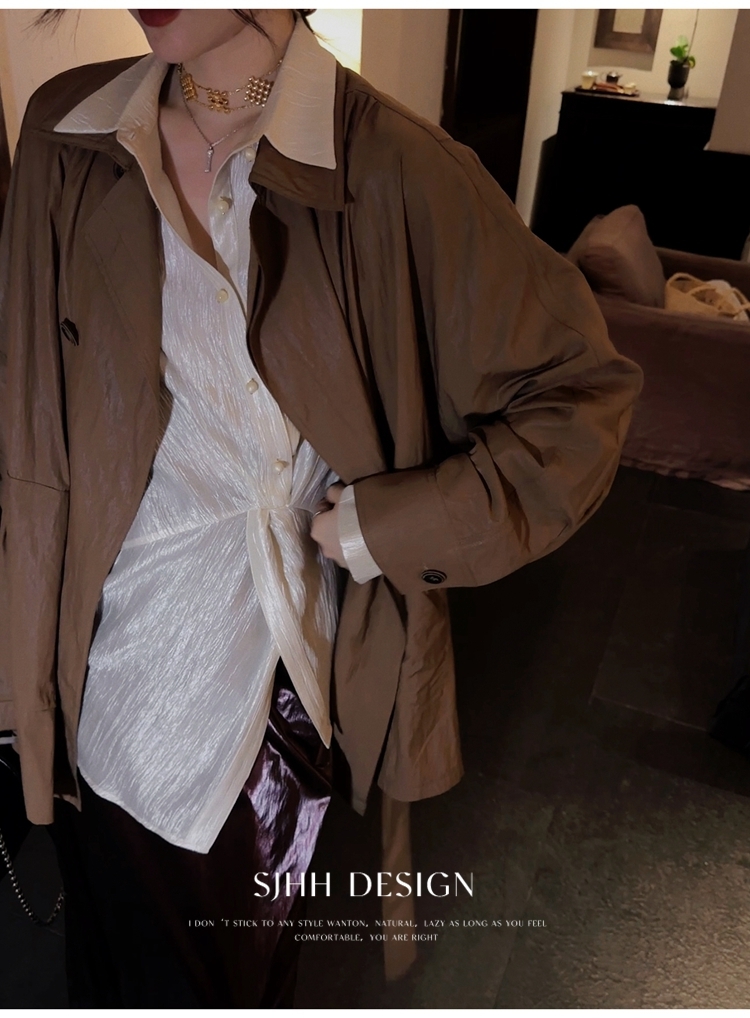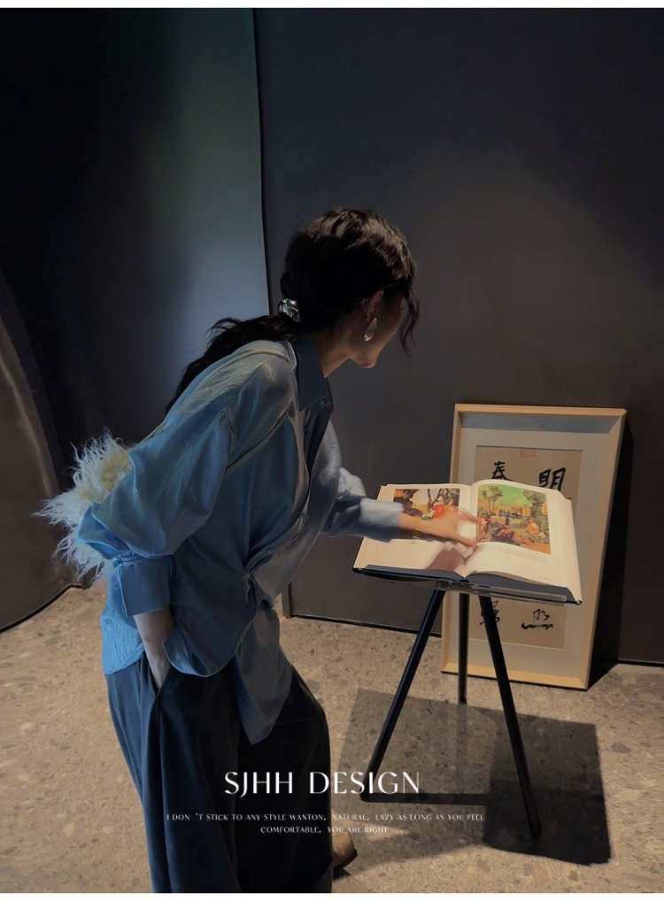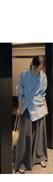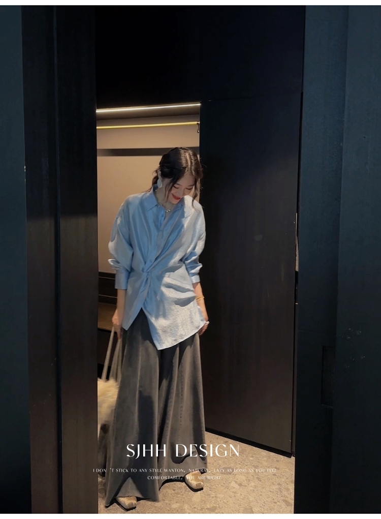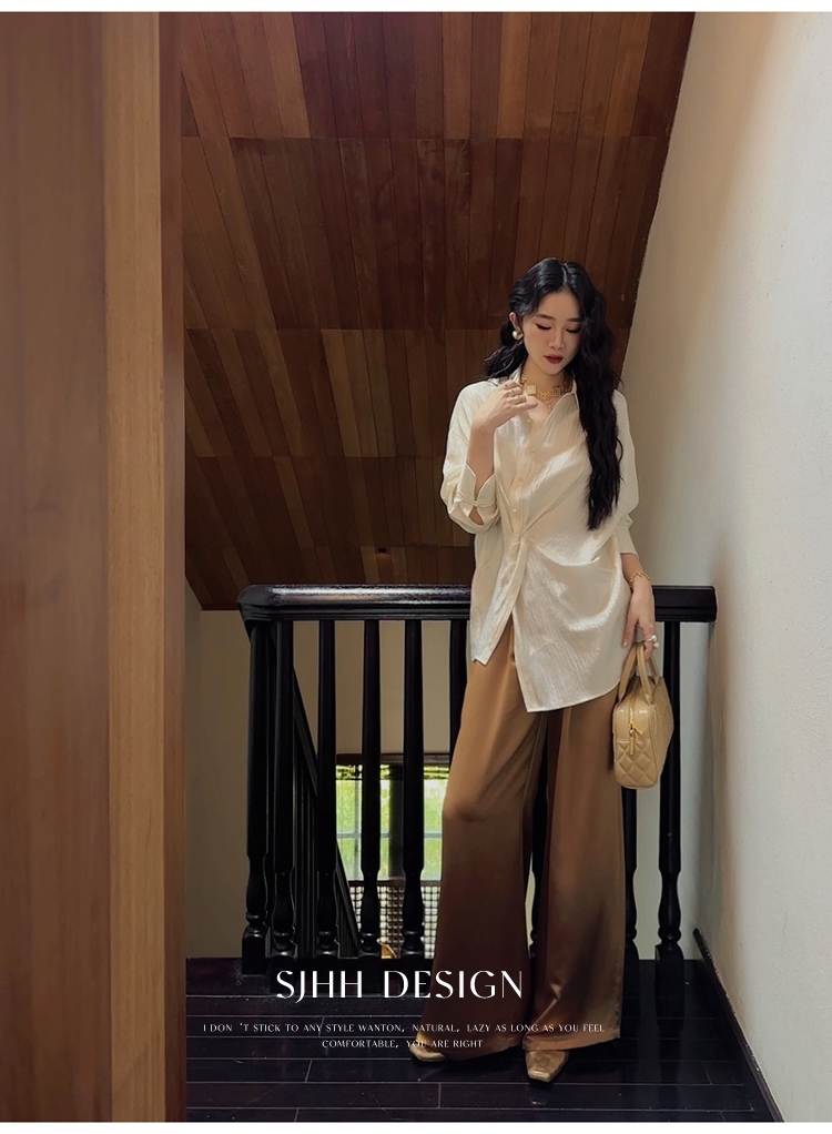 *o-ha-you*【FSJ0135】【韶光】寬鬆款絲光扭結襯衫