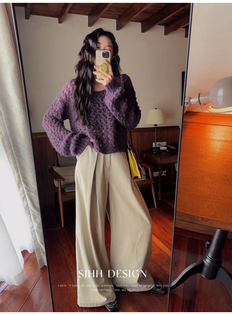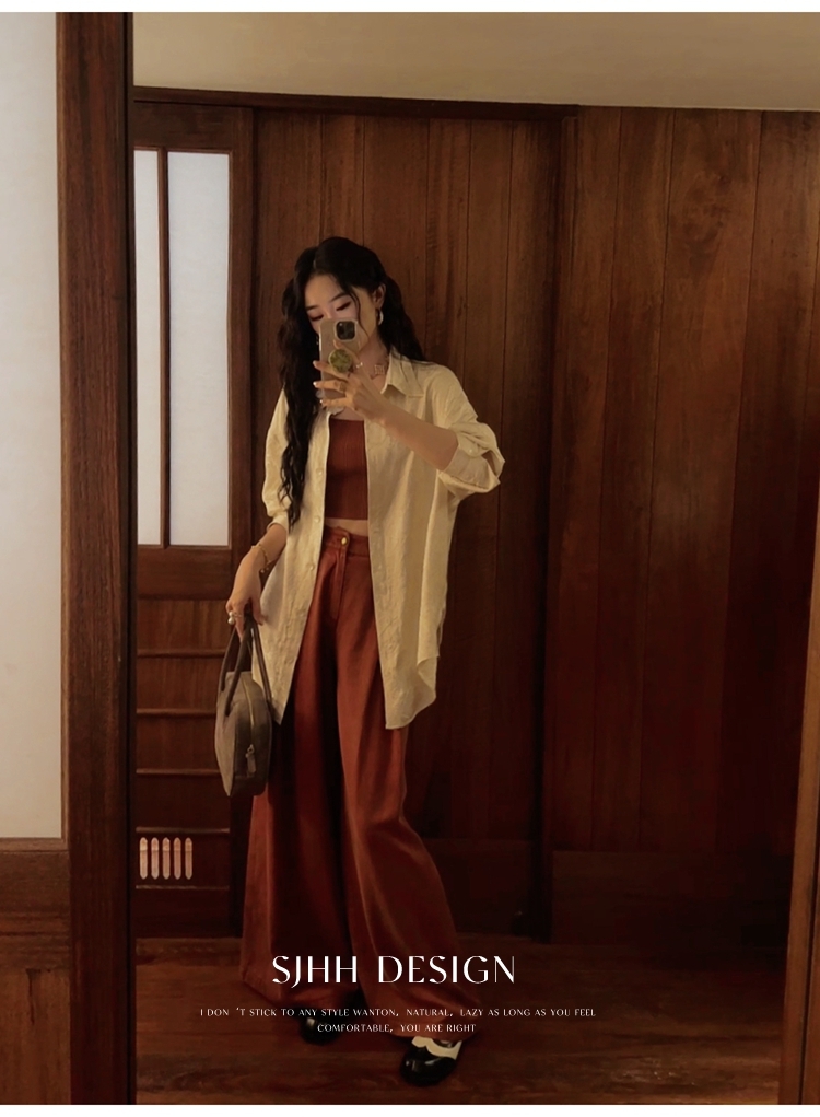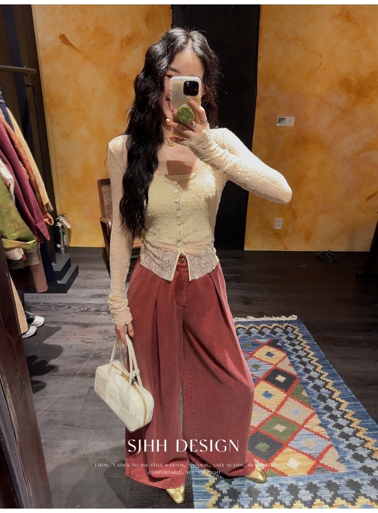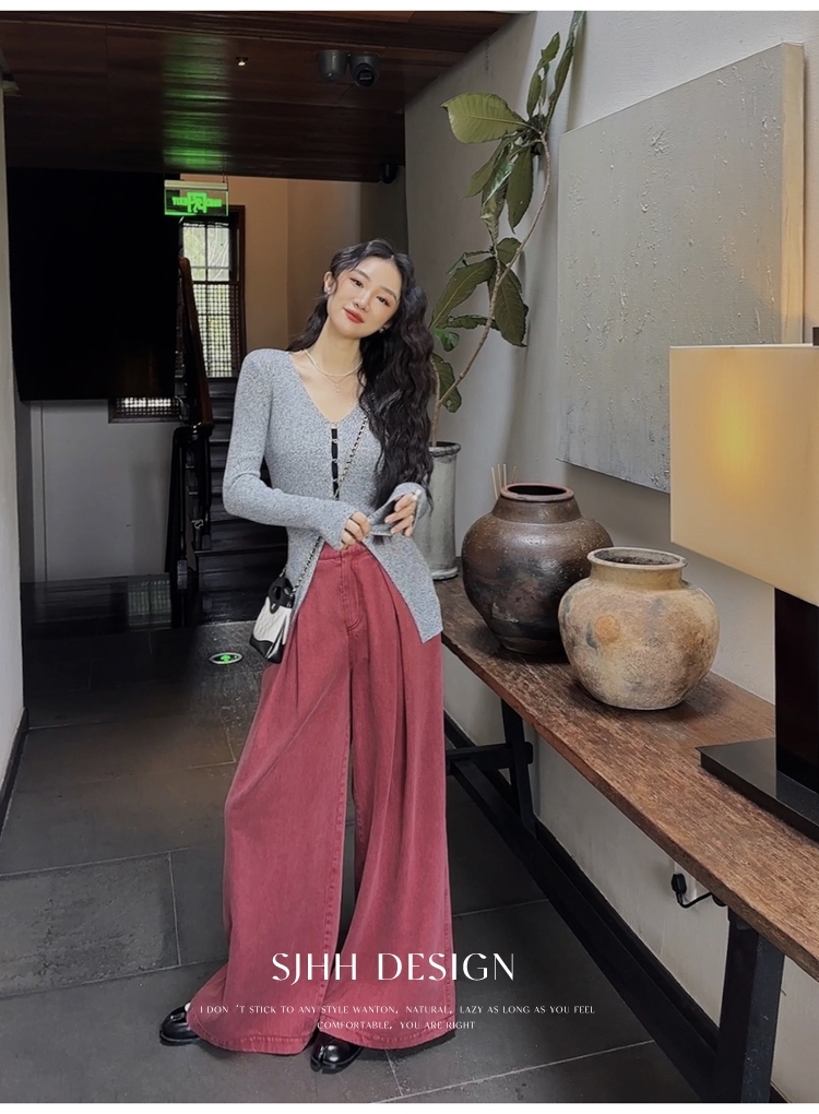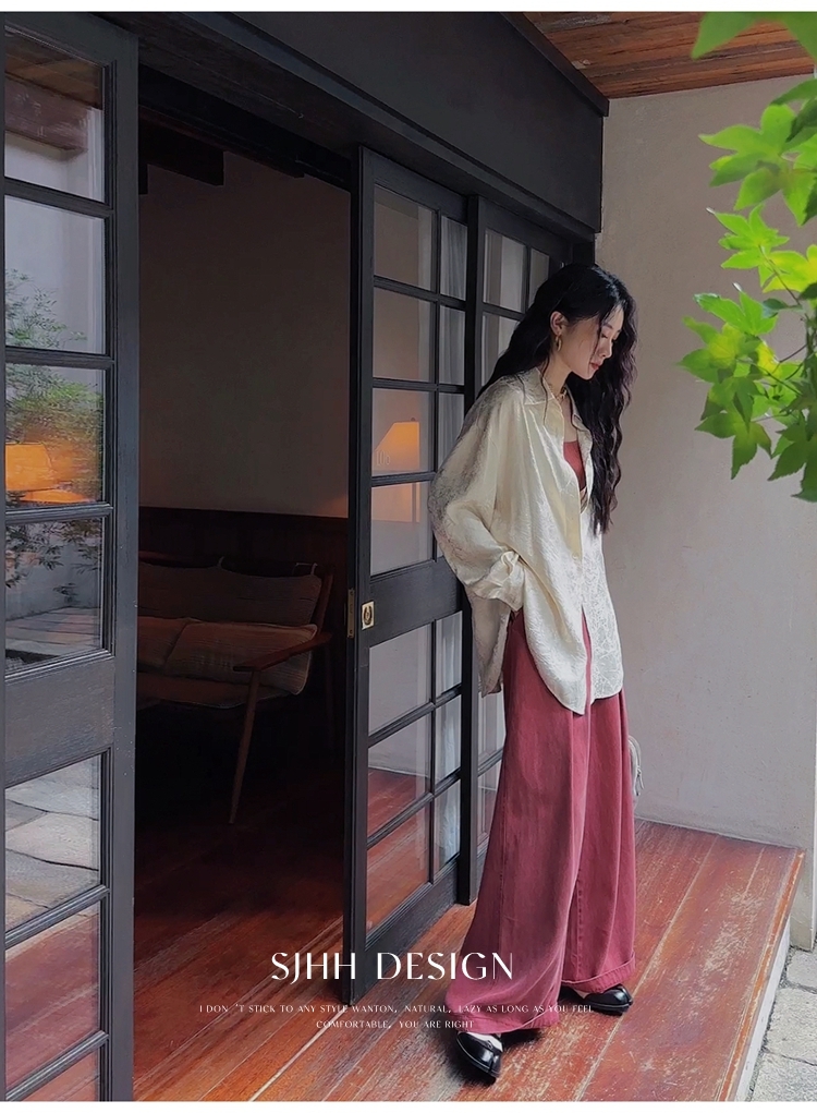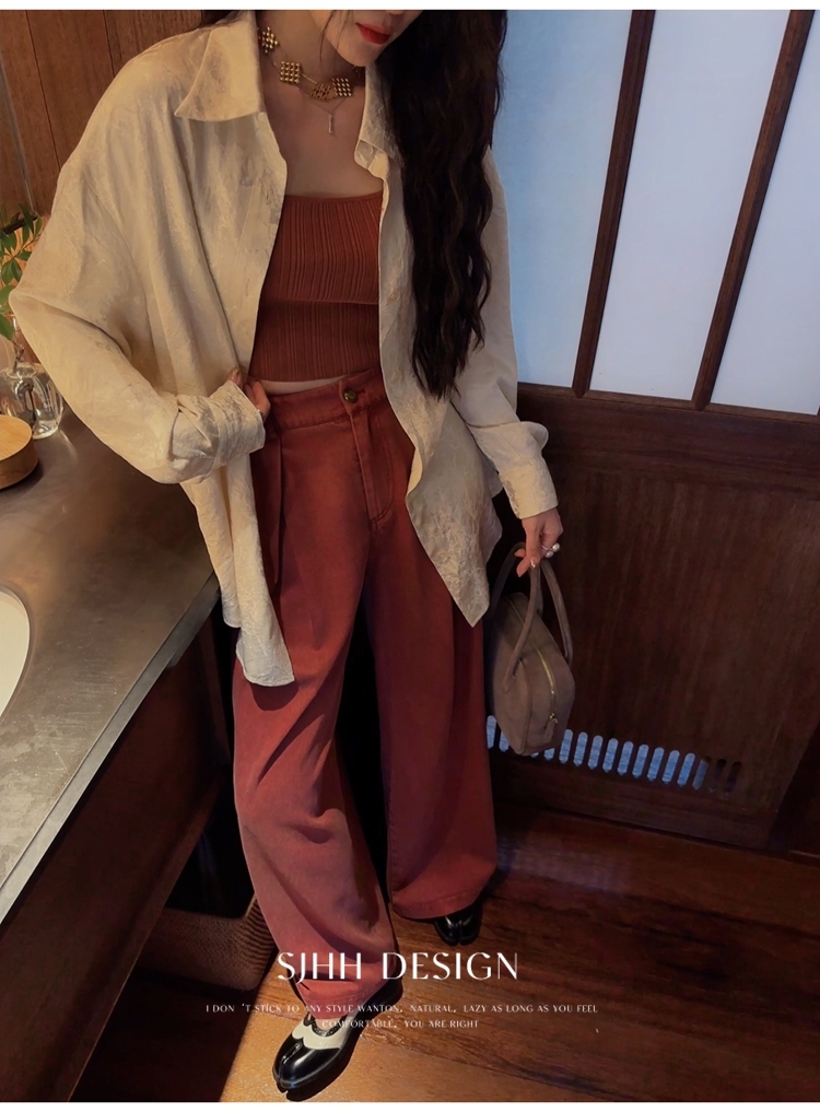 *o-ha-you*【FSJ0141】【柔軟時光】天絲闊腿牛仔褲2024年新款春秋款休閒高腰-3色