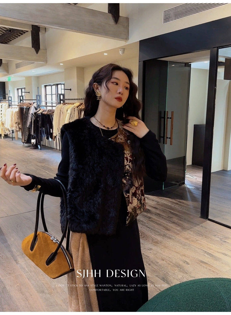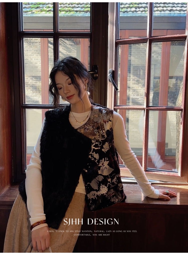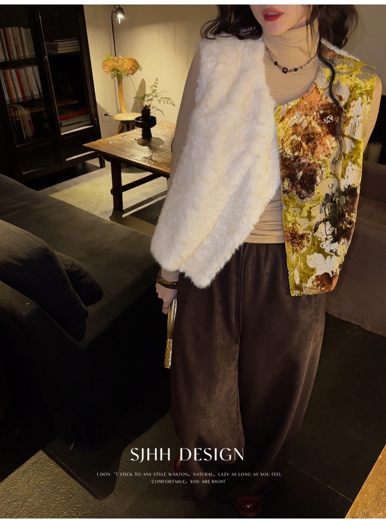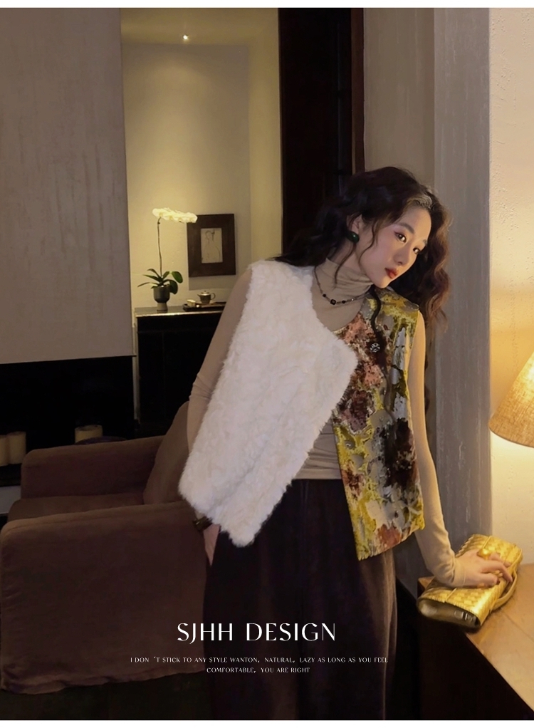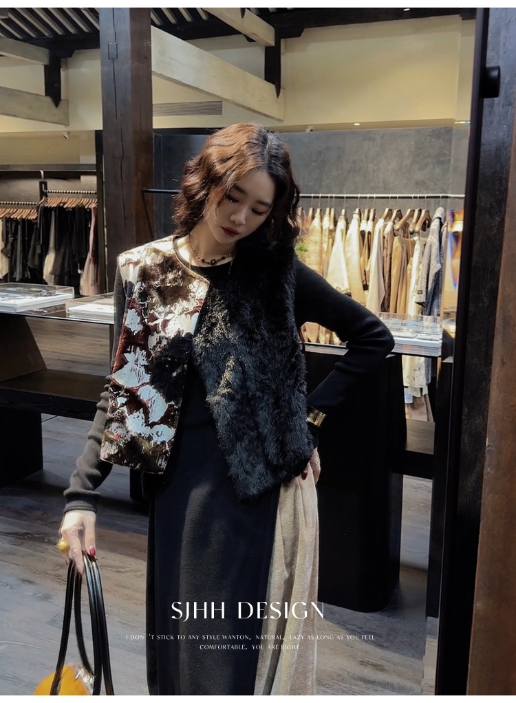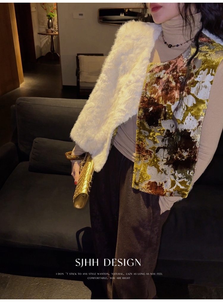 *o-ha-you*【FSJ0148】【彩雲歸】新中式中國風拼接皮草背心無袖外套