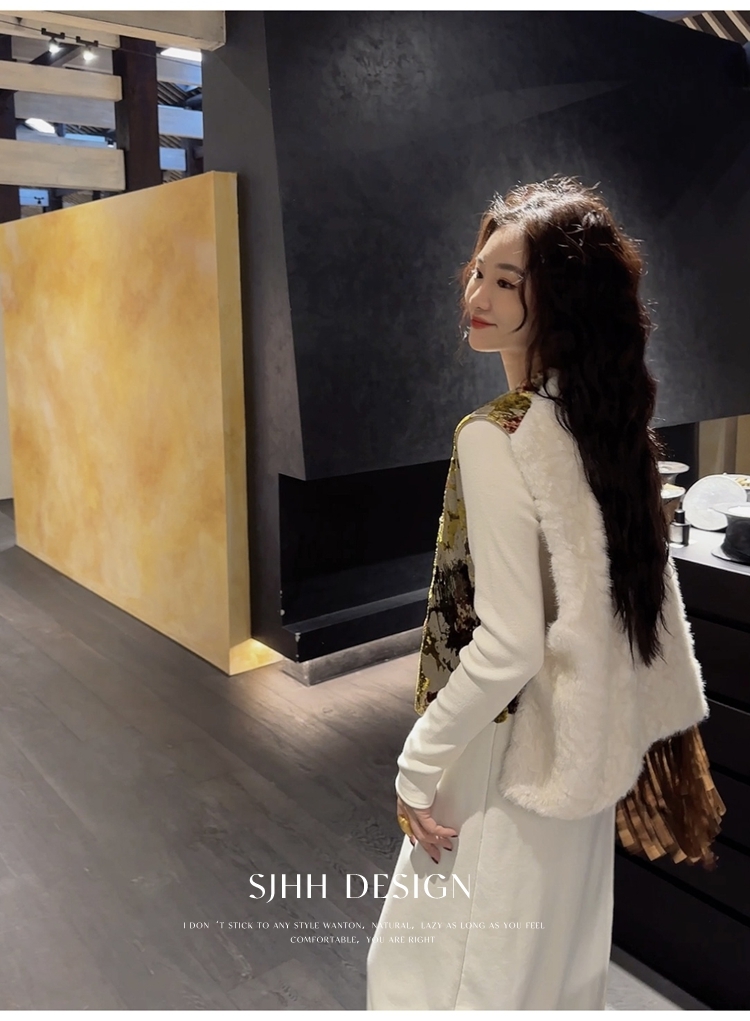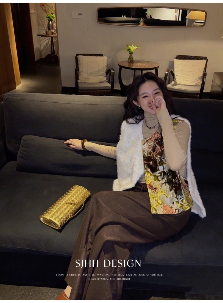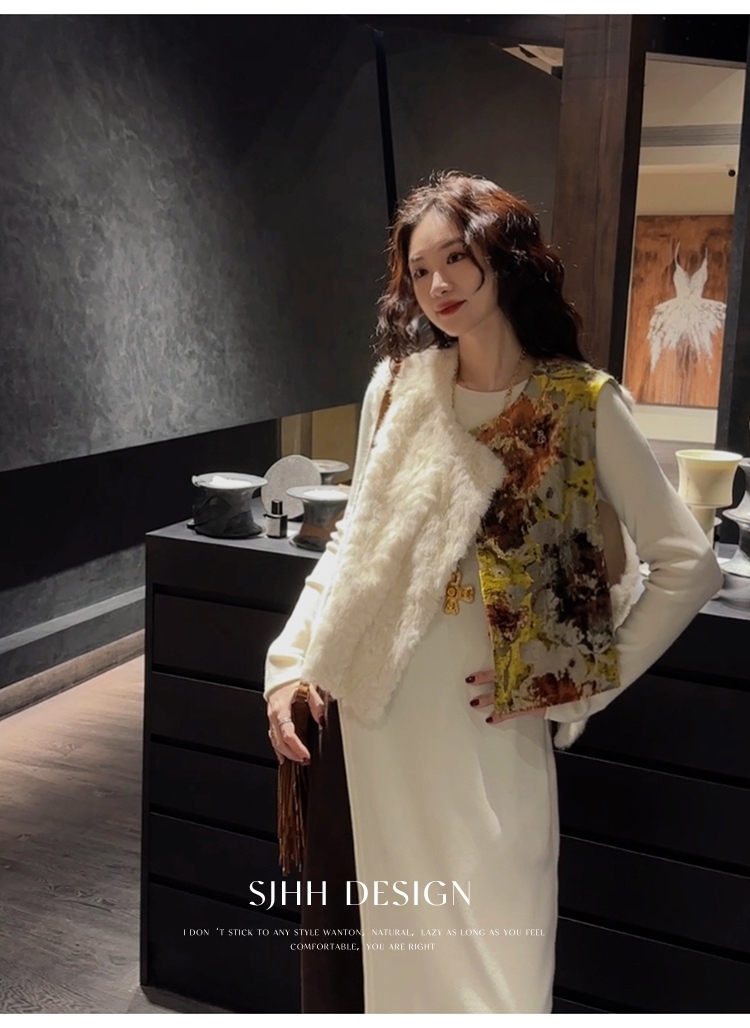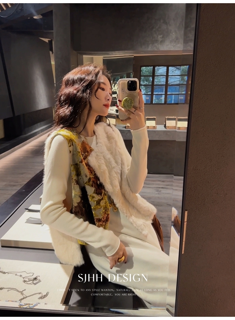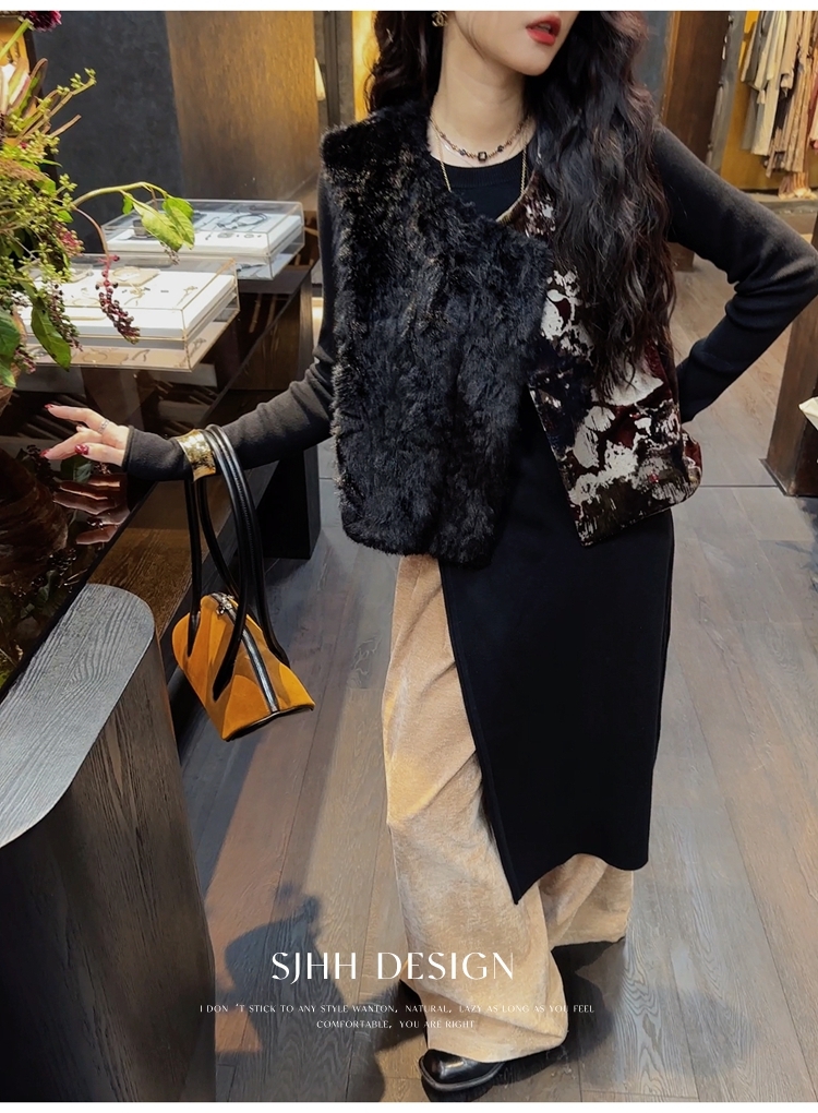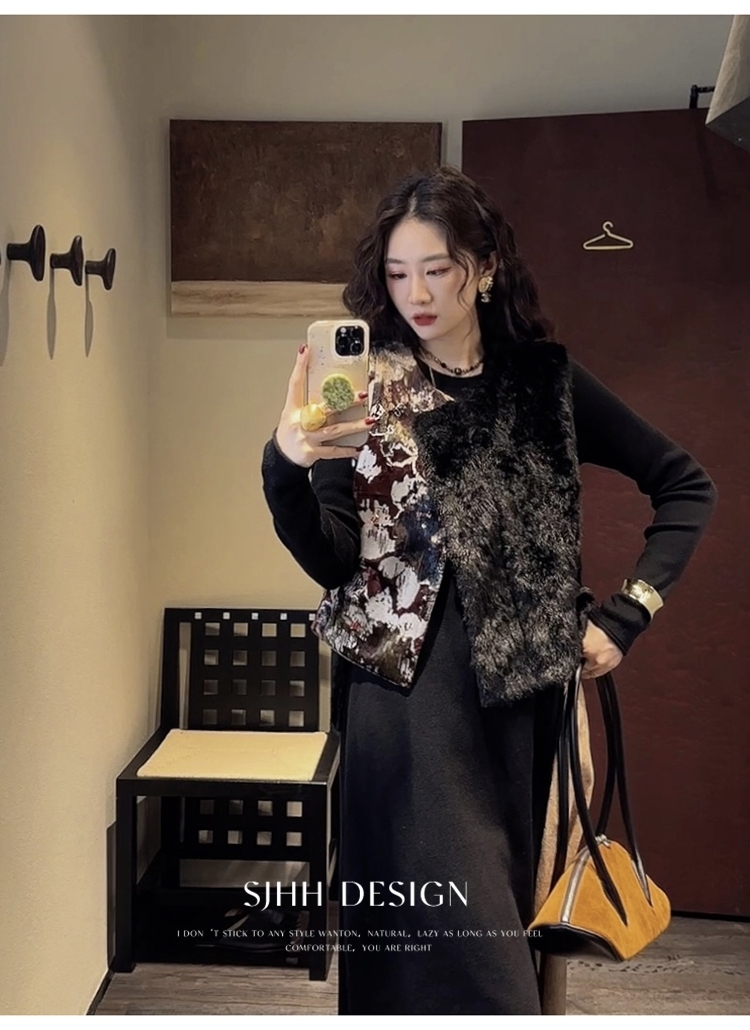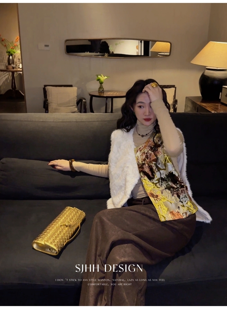 *o-ha-you*【FSJ0148】【彩雲歸】新中式中國風拼接皮草背心無袖外套