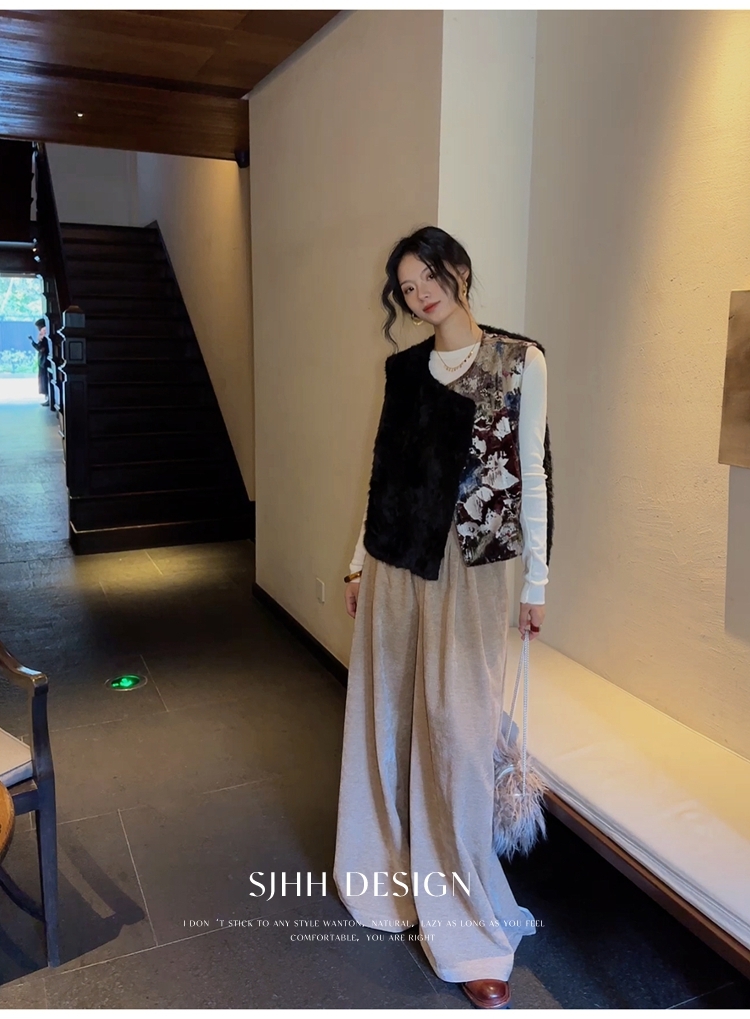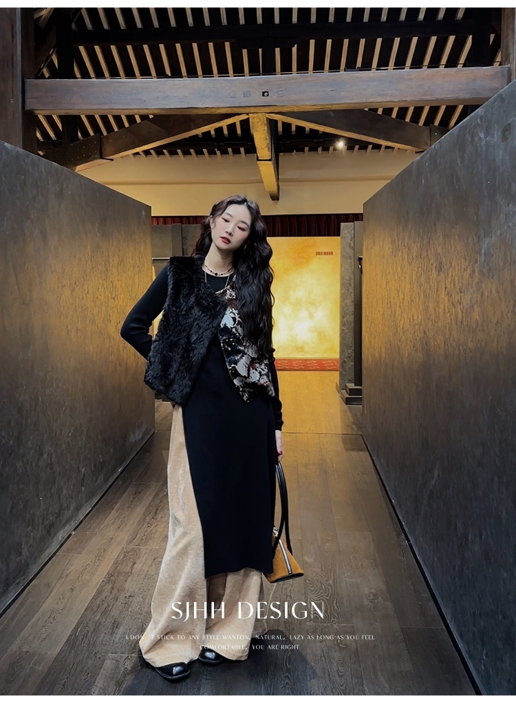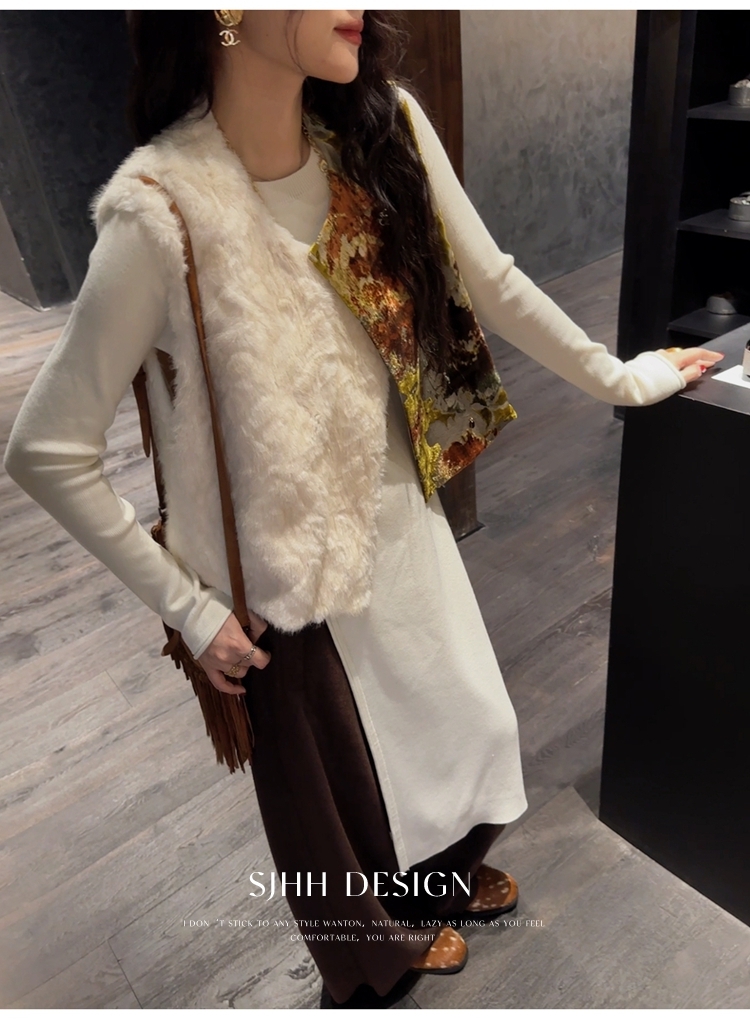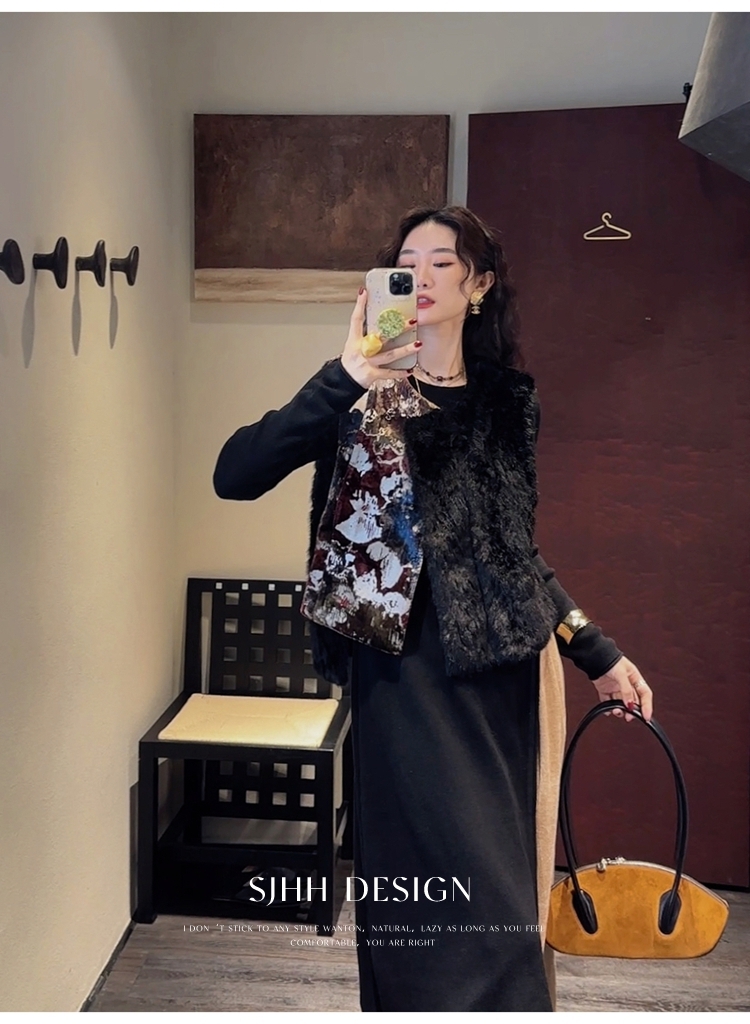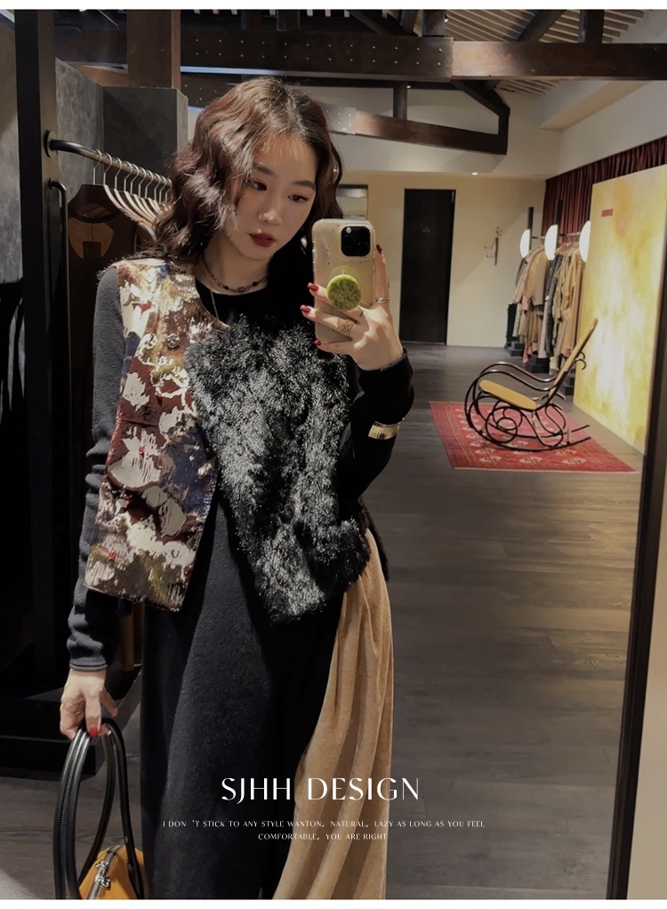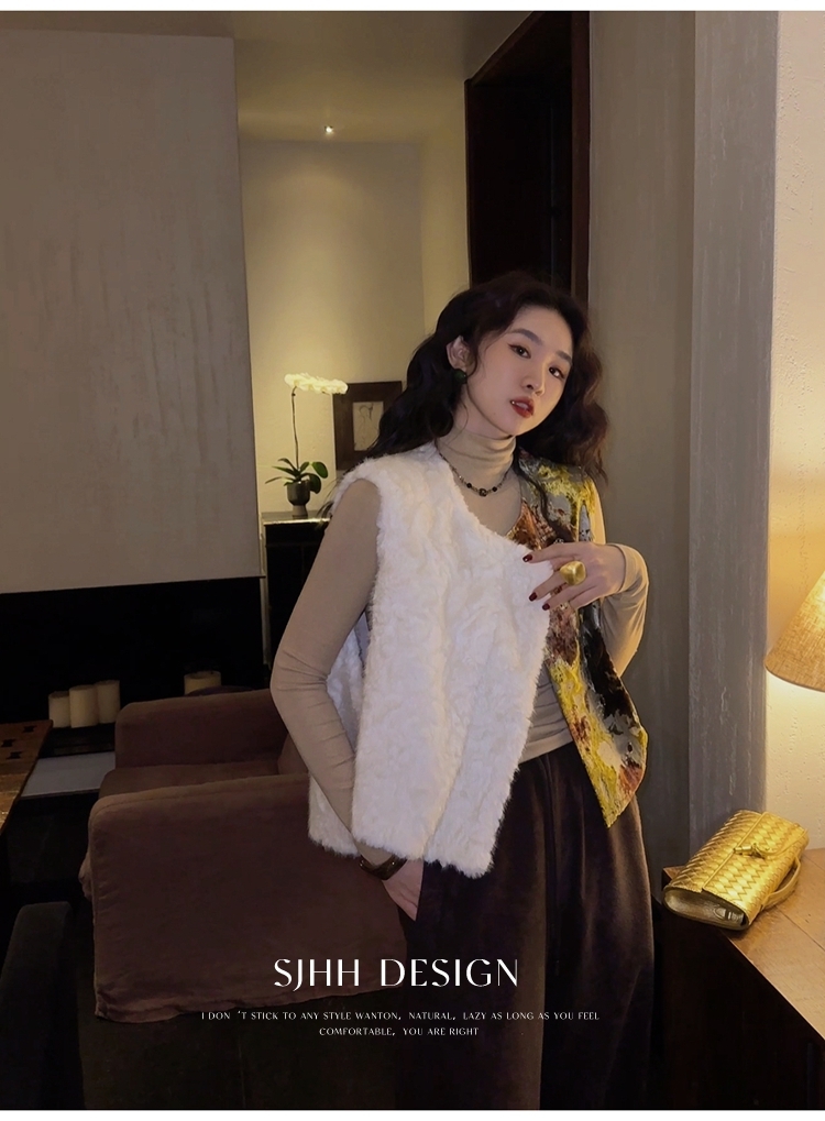 *o-ha-you*【FSJ0148】【彩雲歸】新中式中國風拼接皮草背心無袖外套
