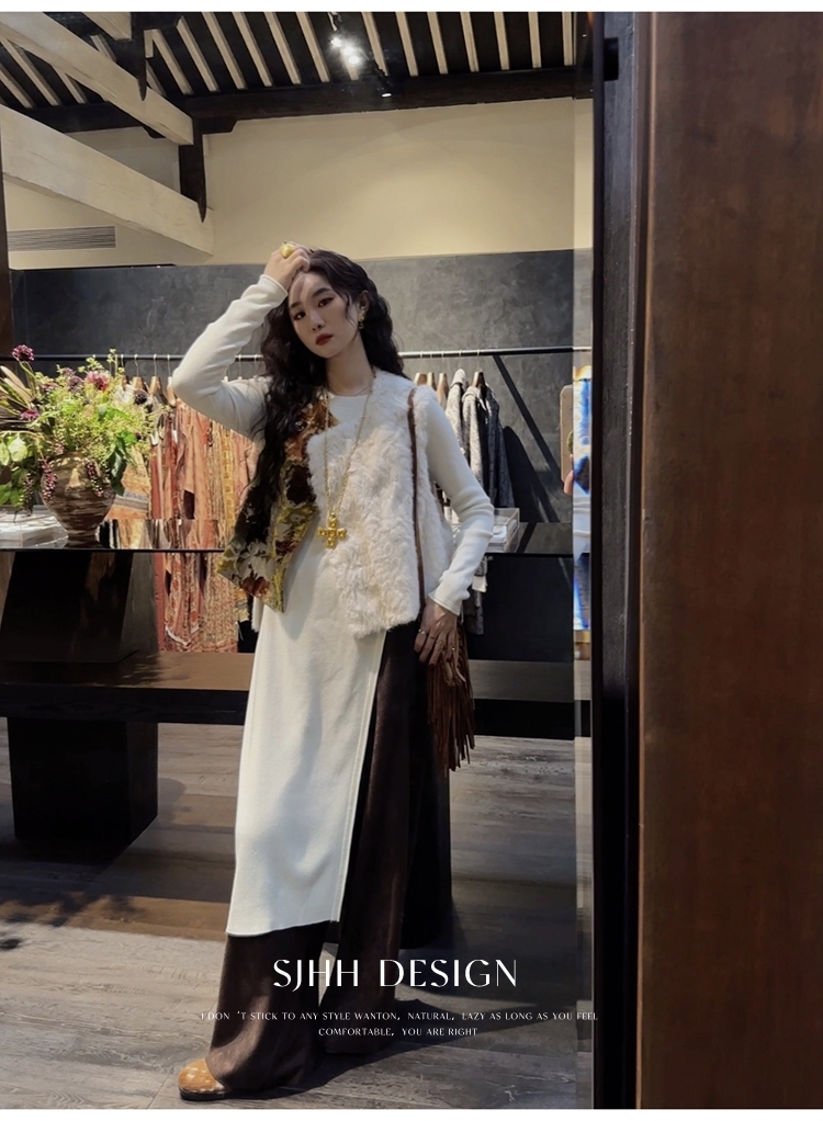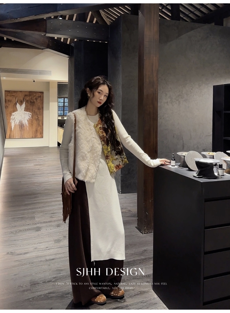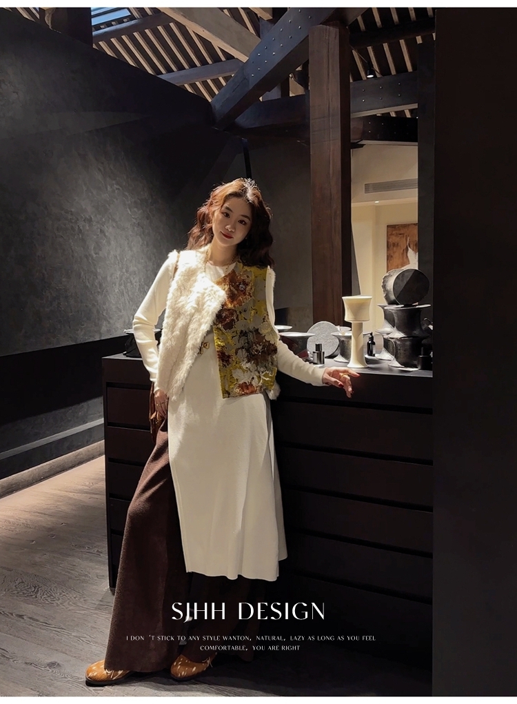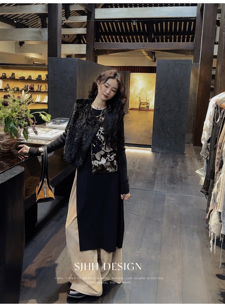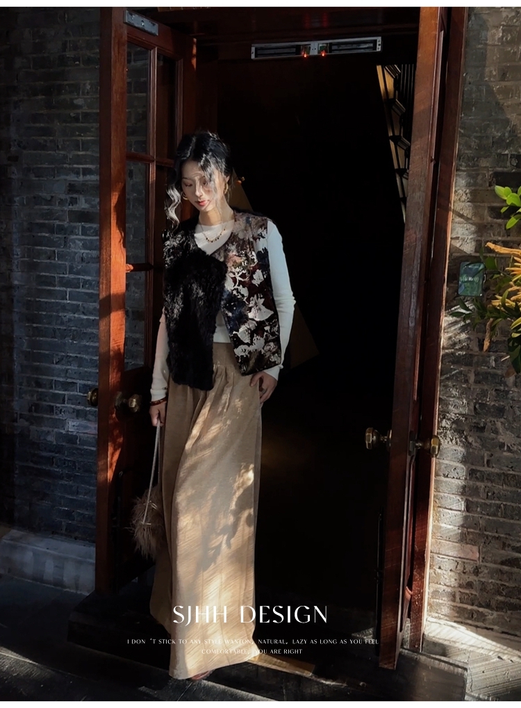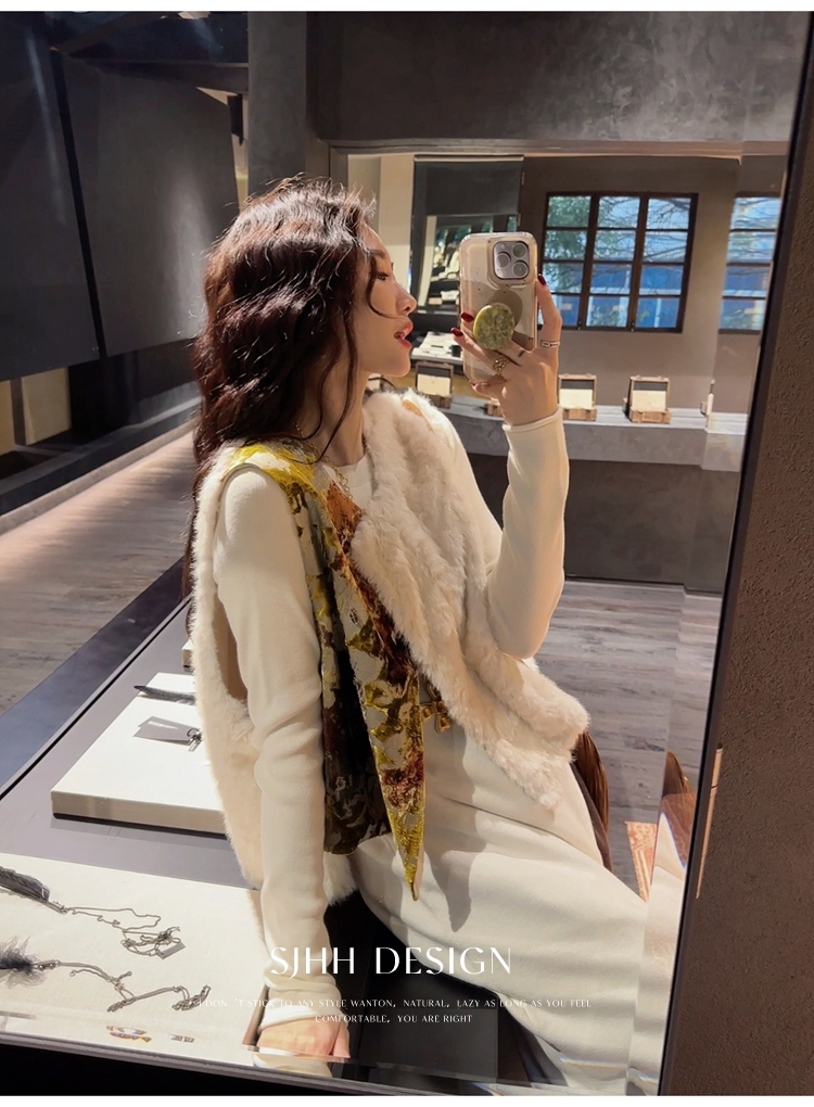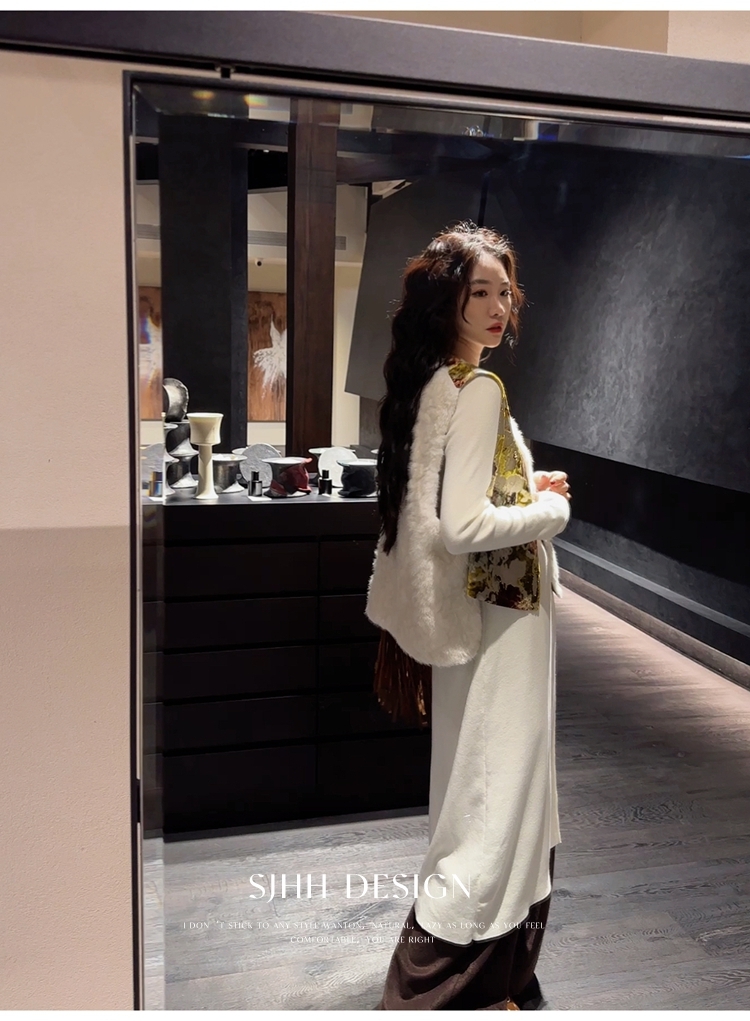 *o-ha-you*【FSJ0148】【彩雲歸】新中式中國風拼接皮草背心無袖外套