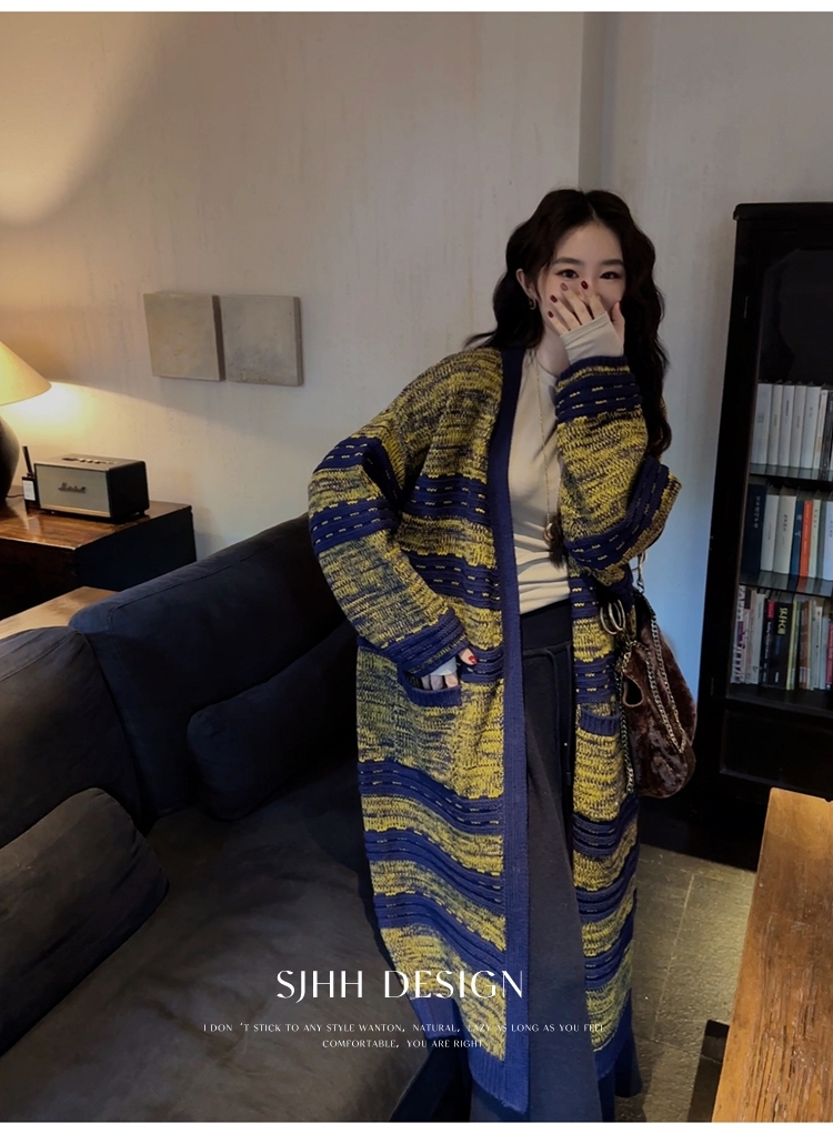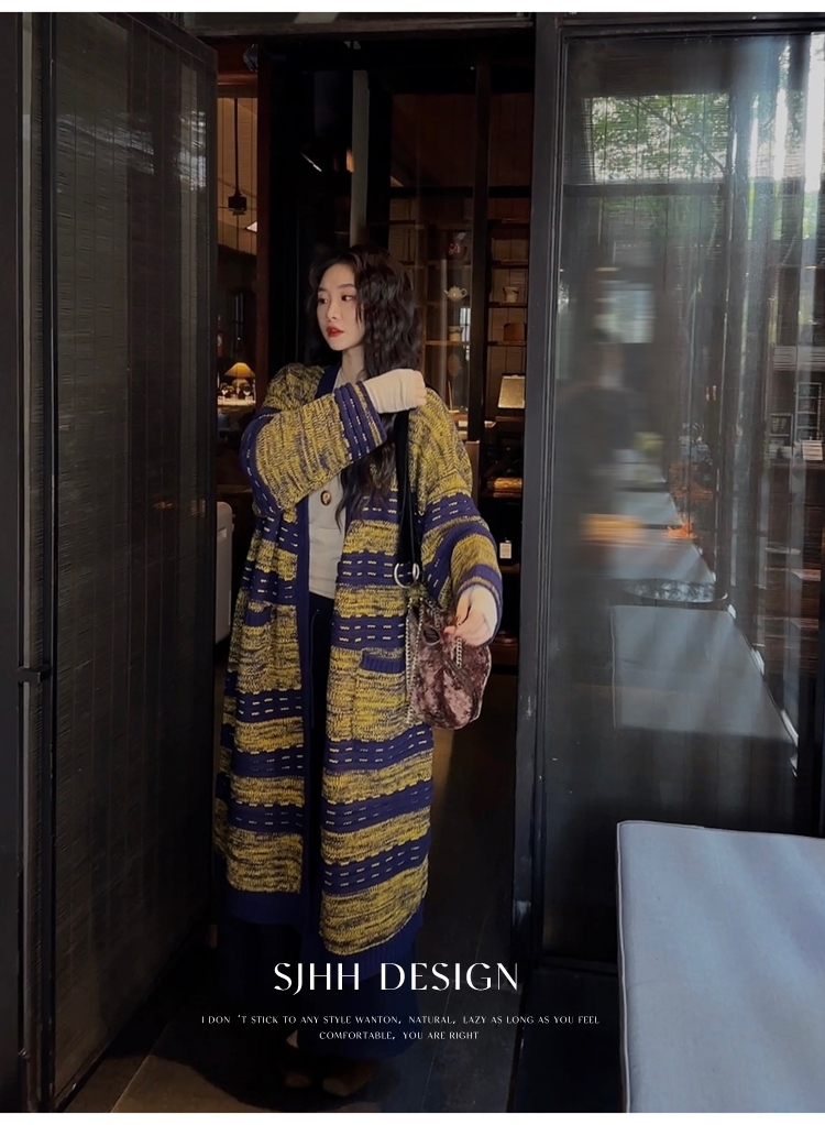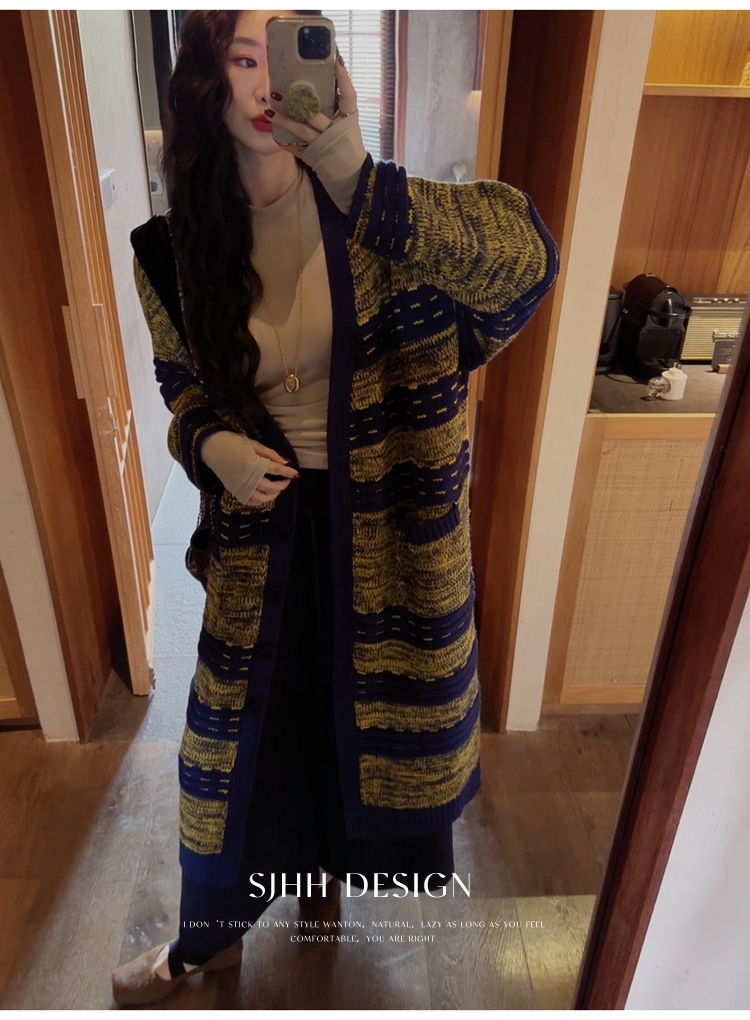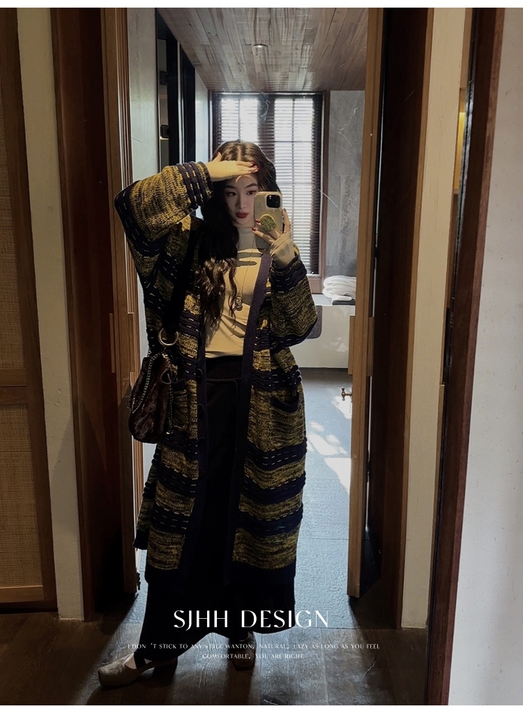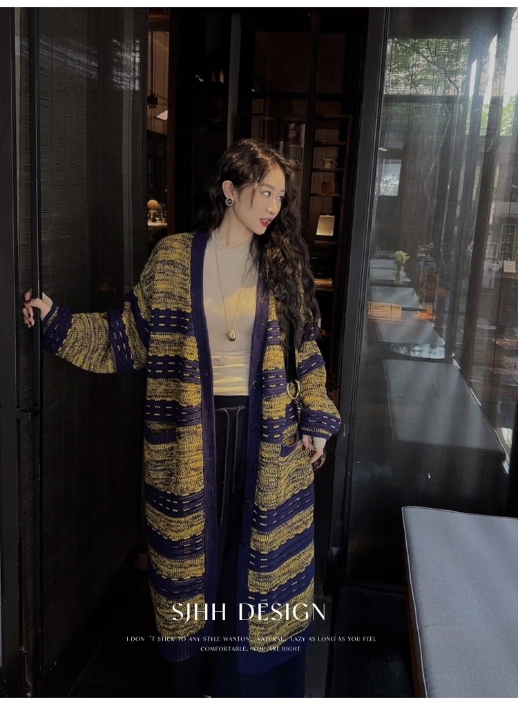 *o-ha-you*【FSJ0155】設計秋冬長條紋針織開襟衫韓系氛圍感穿搭高級感-2色