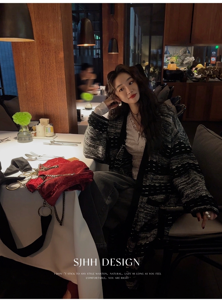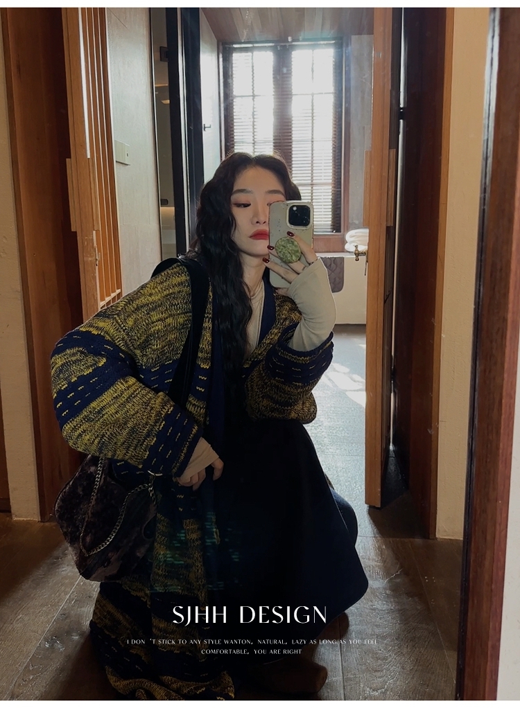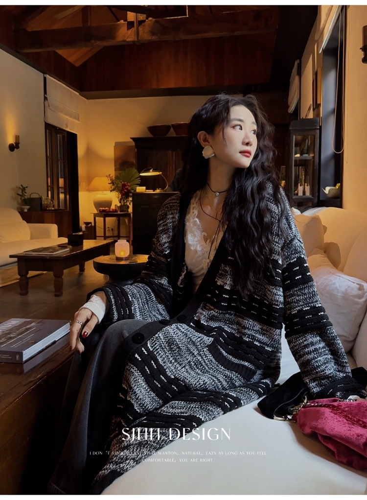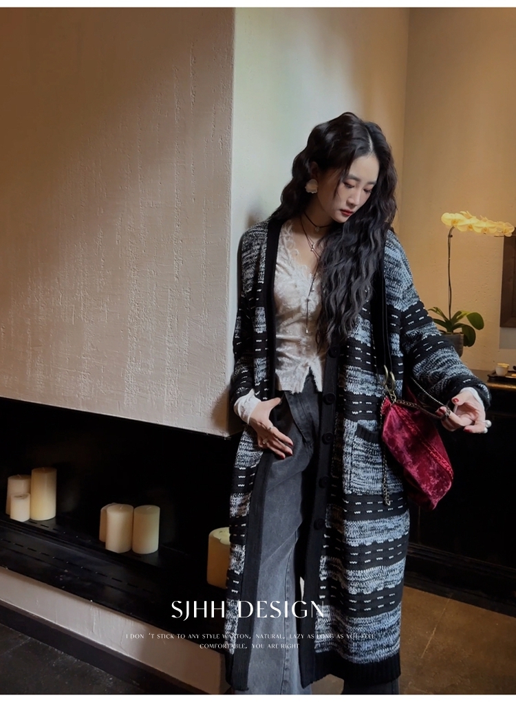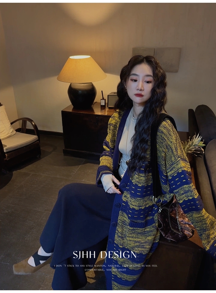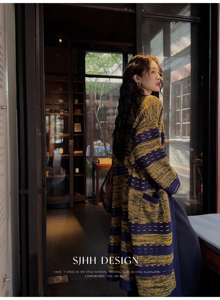 *o-ha-you*【FSJ0155】設計秋冬長條紋針織開襟衫韓系氛圍感穿搭高級感-2色