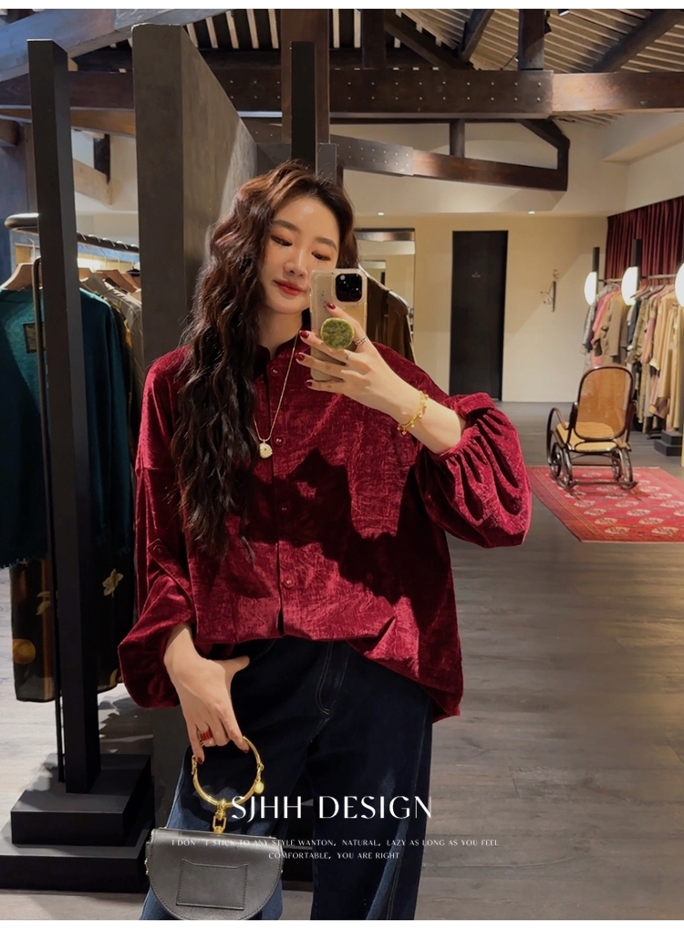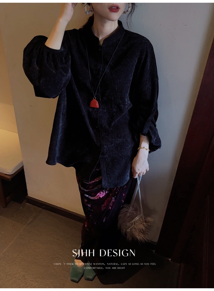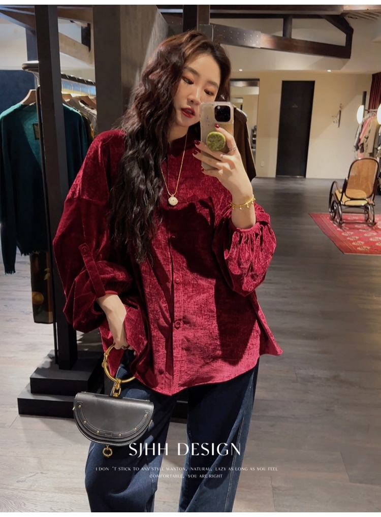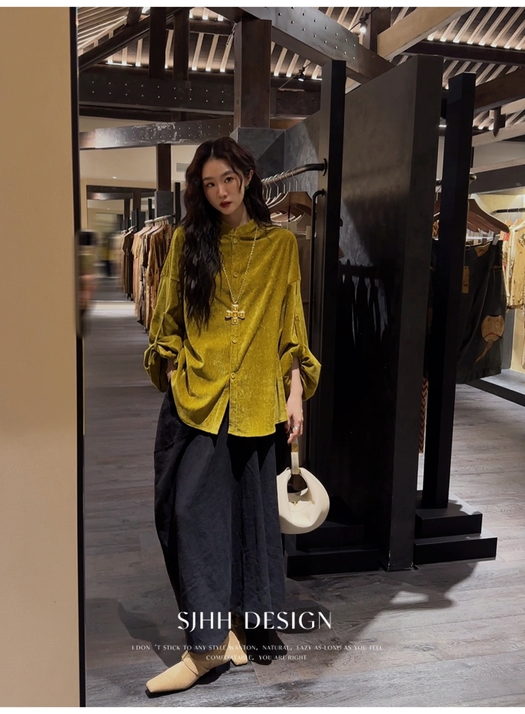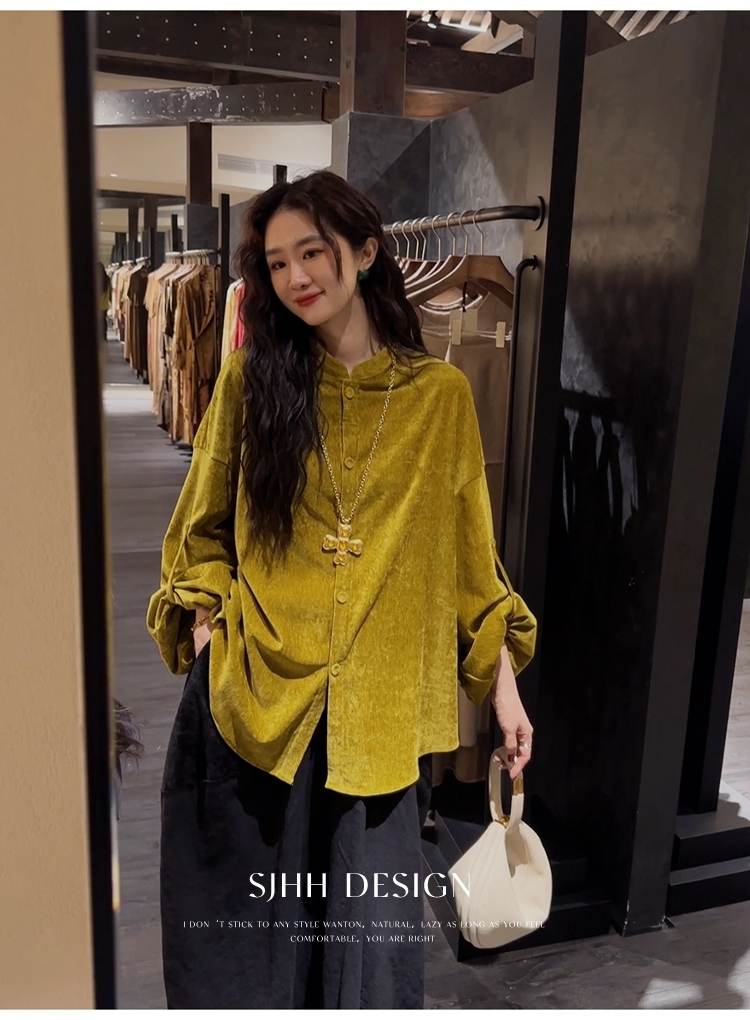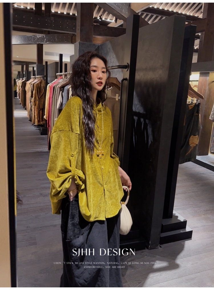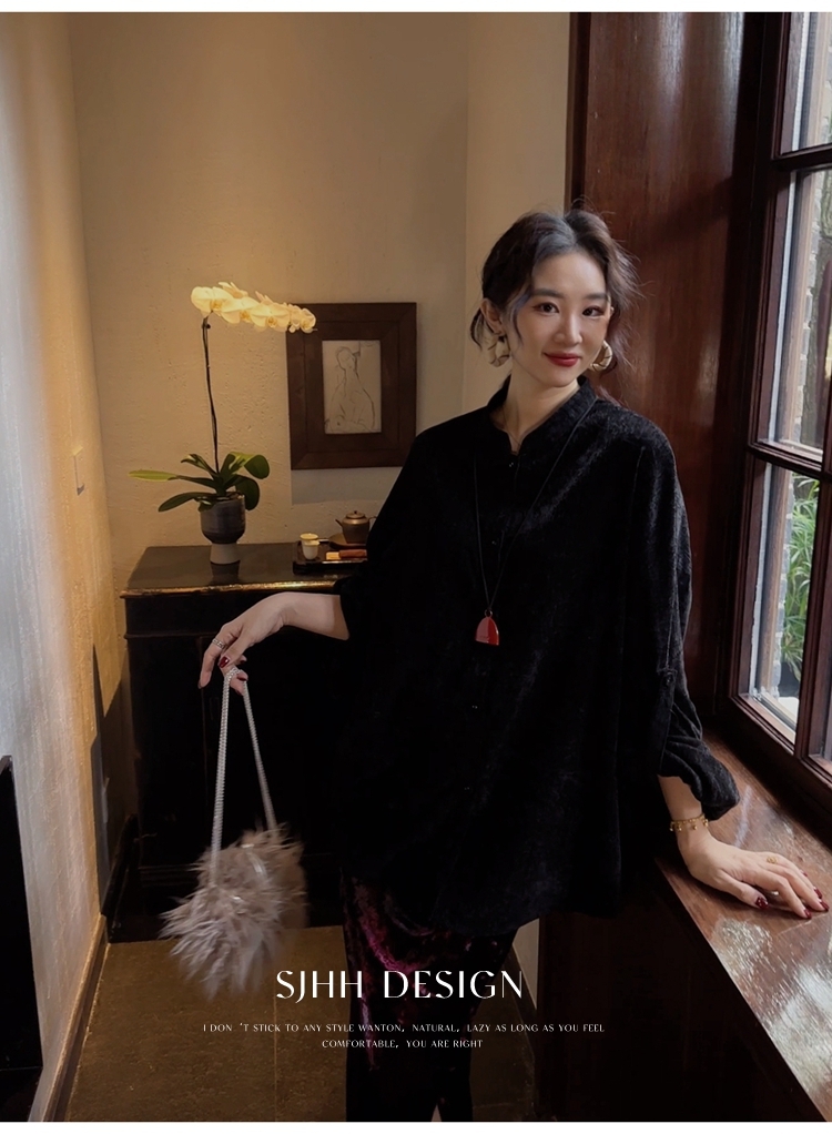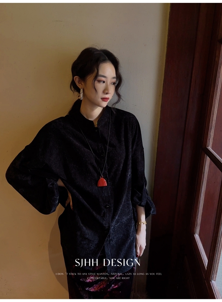 *o-ha-you*【FSJ0156】【相思故】新中式雪尼爾絨襯衫上衣2024新款輕奢高級感-3色