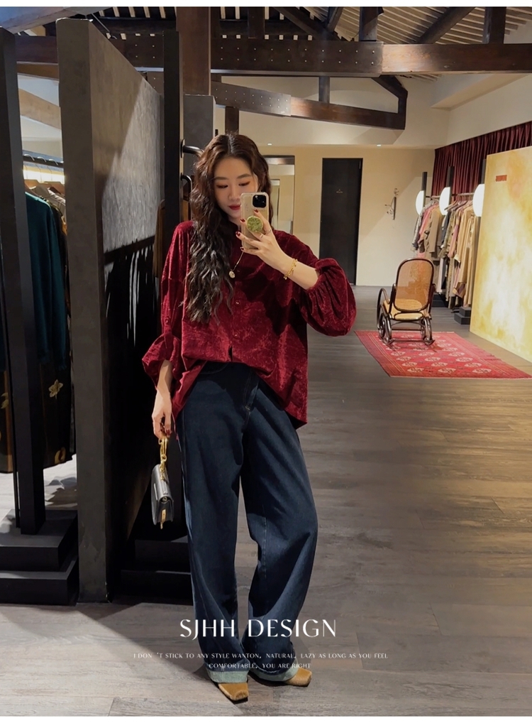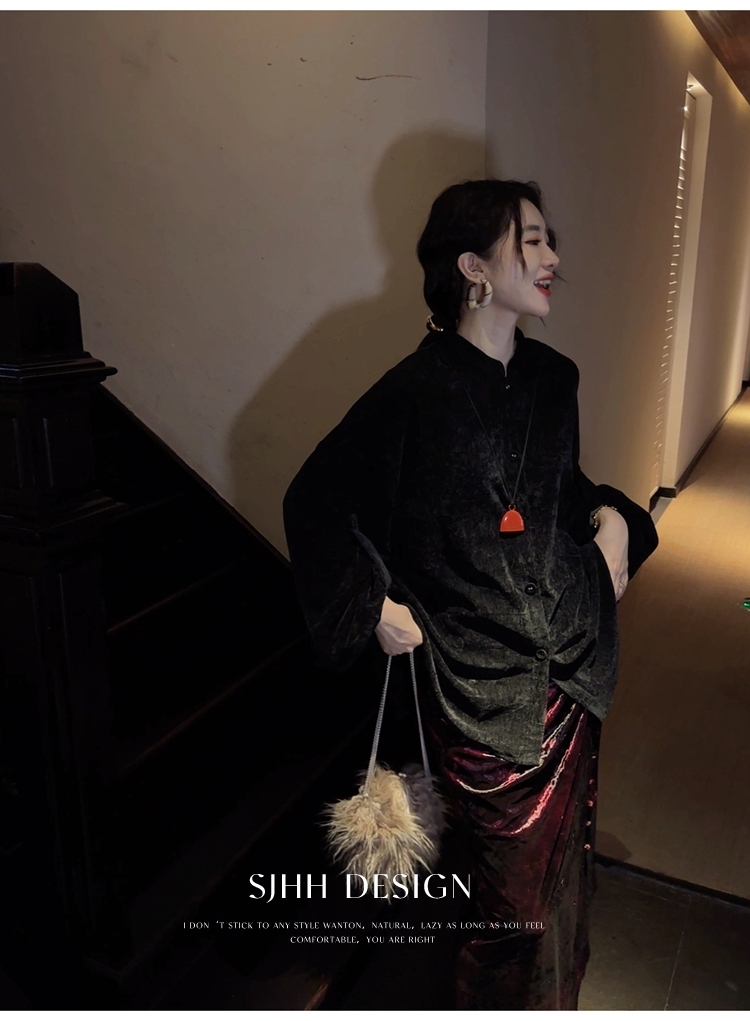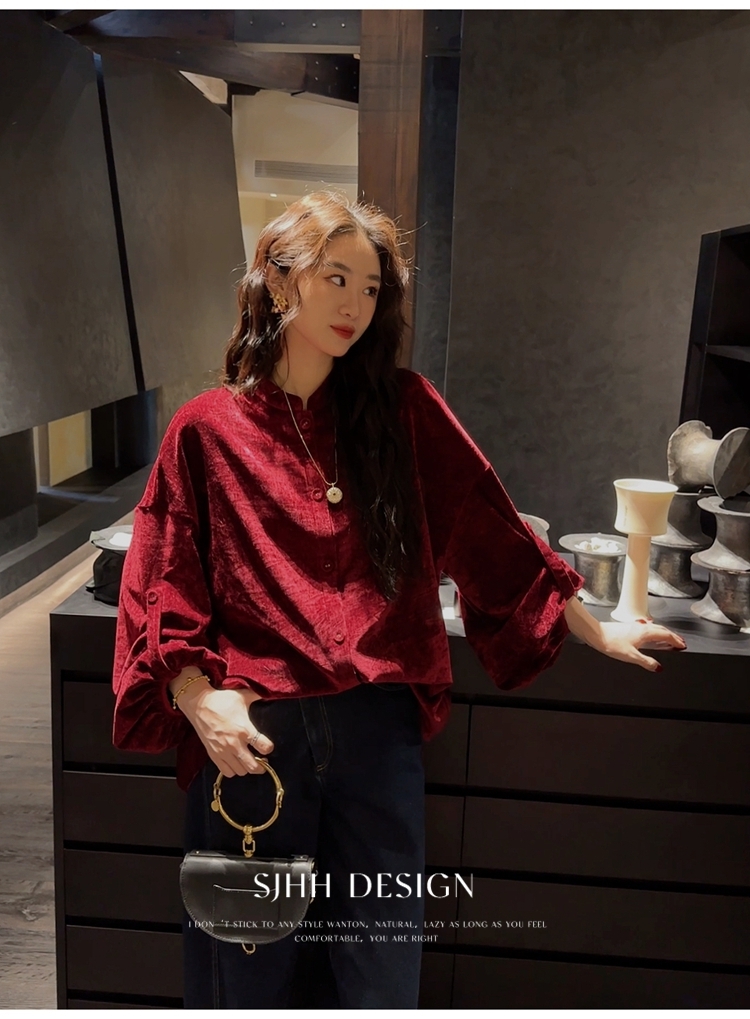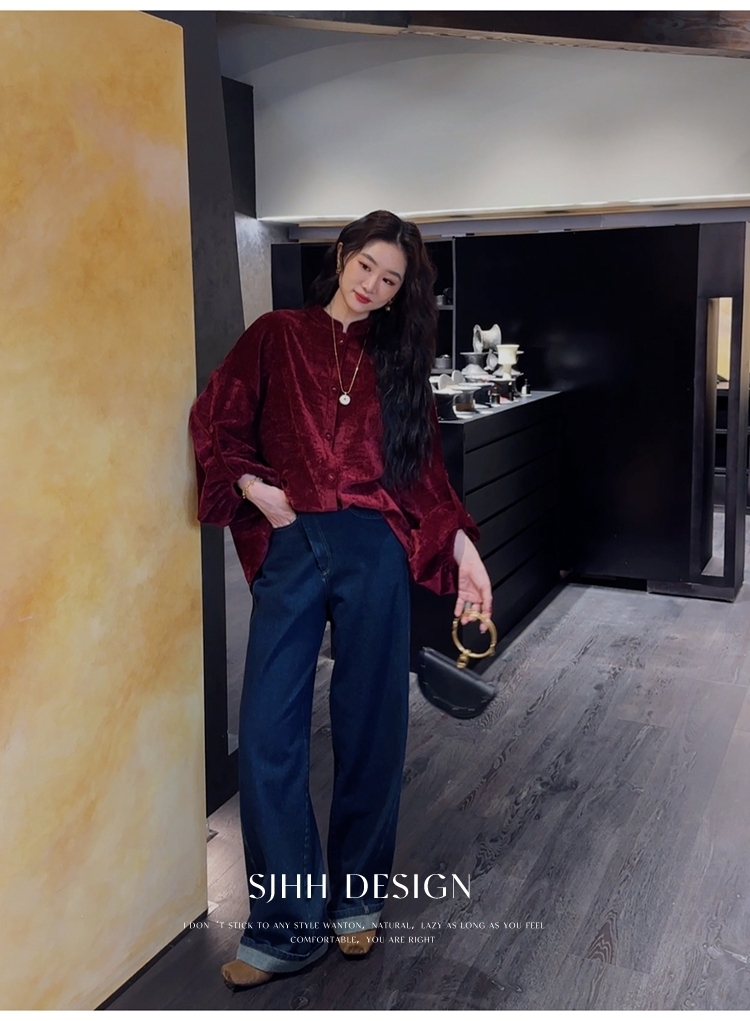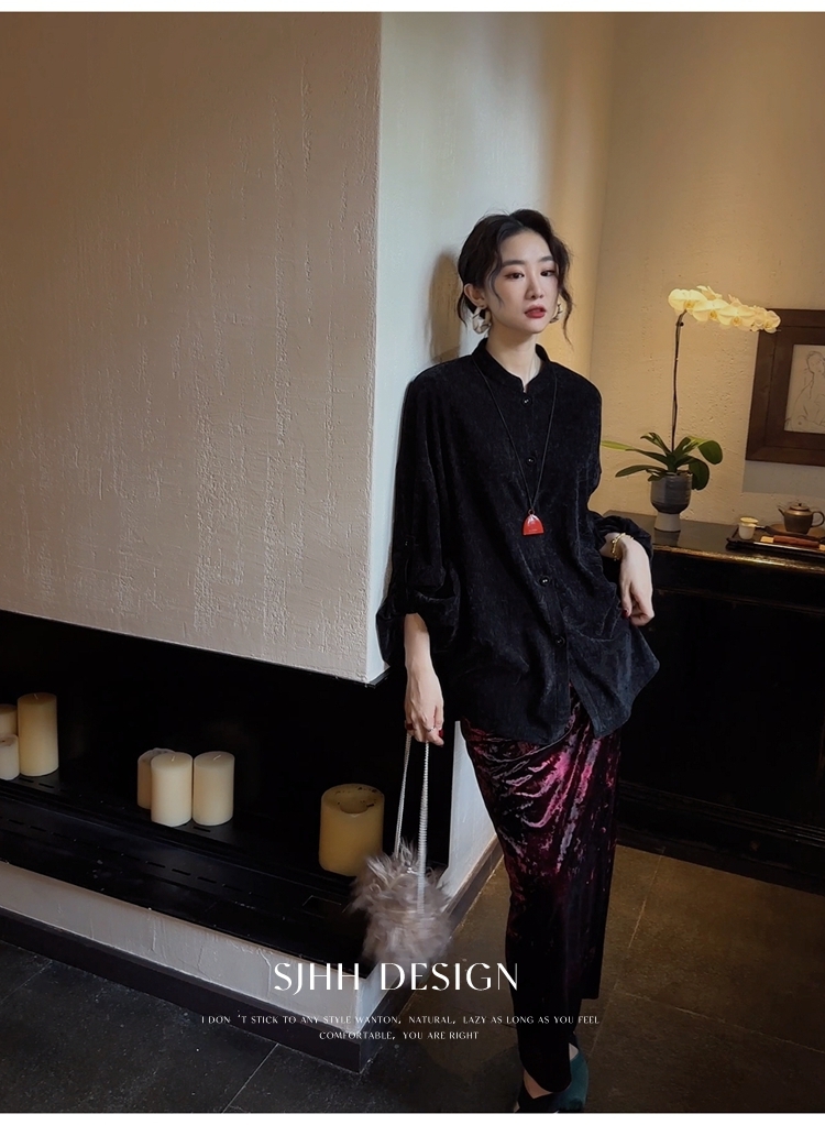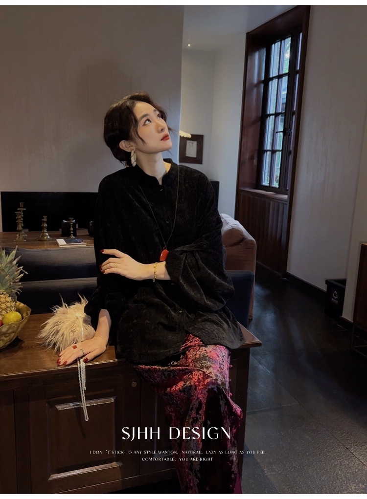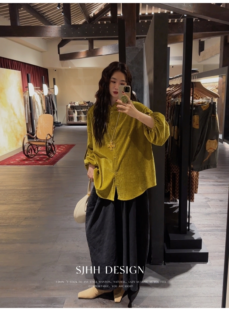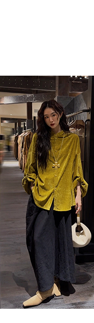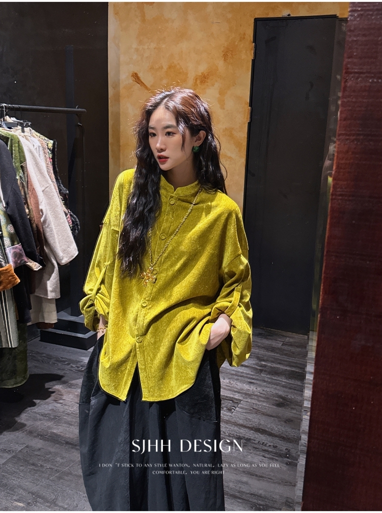 *o-ha-you*【FSJ0156】【相思故】新中式雪尼爾絨襯衫上衣2024新款輕奢高級感-3色