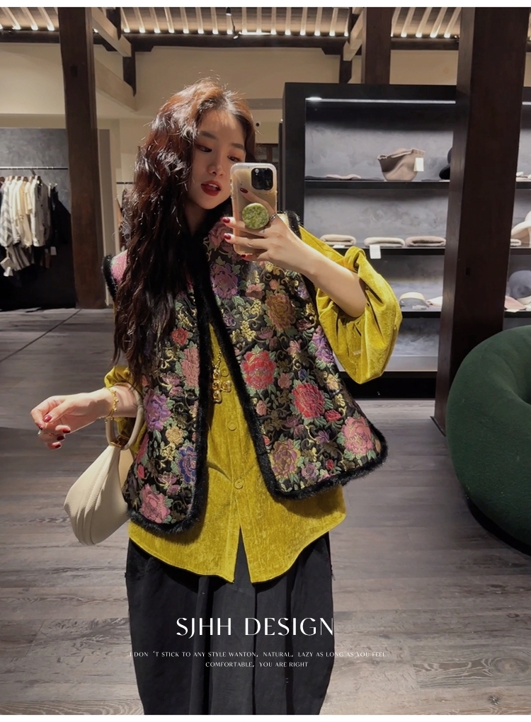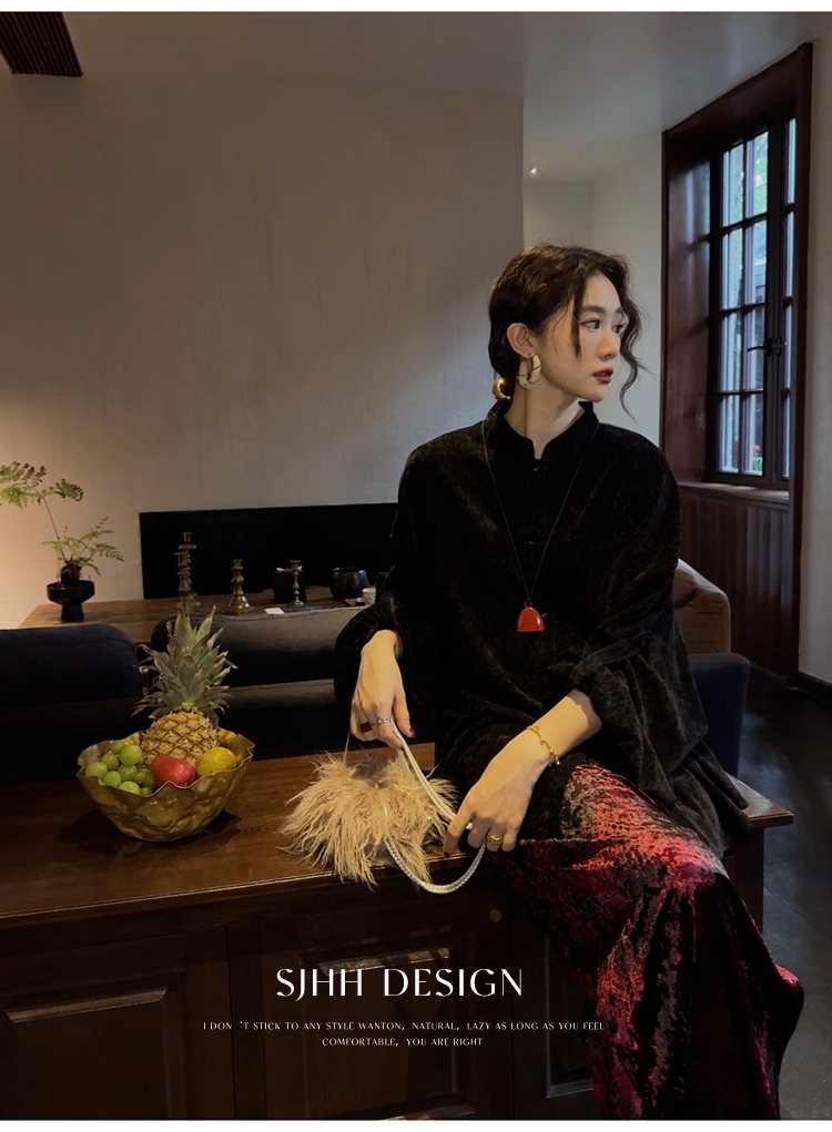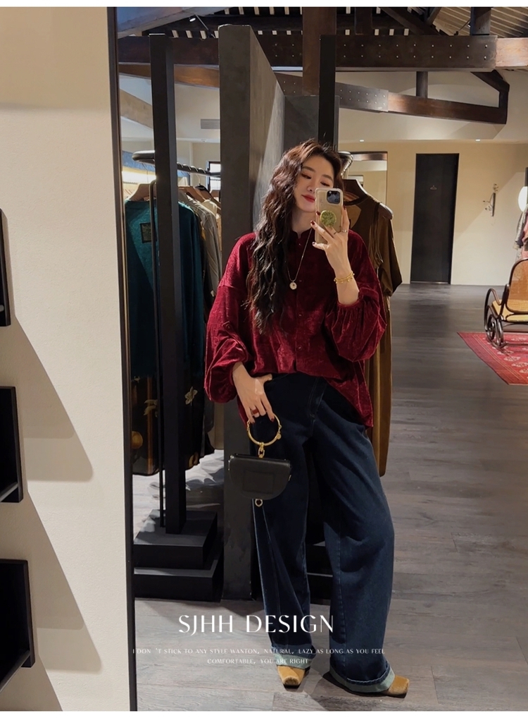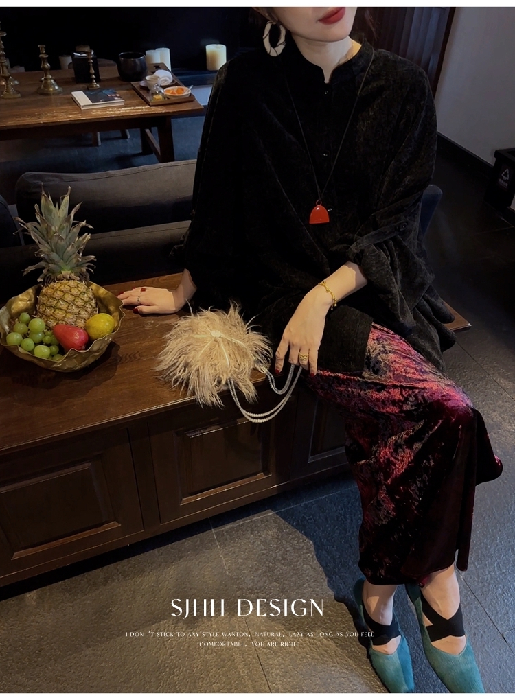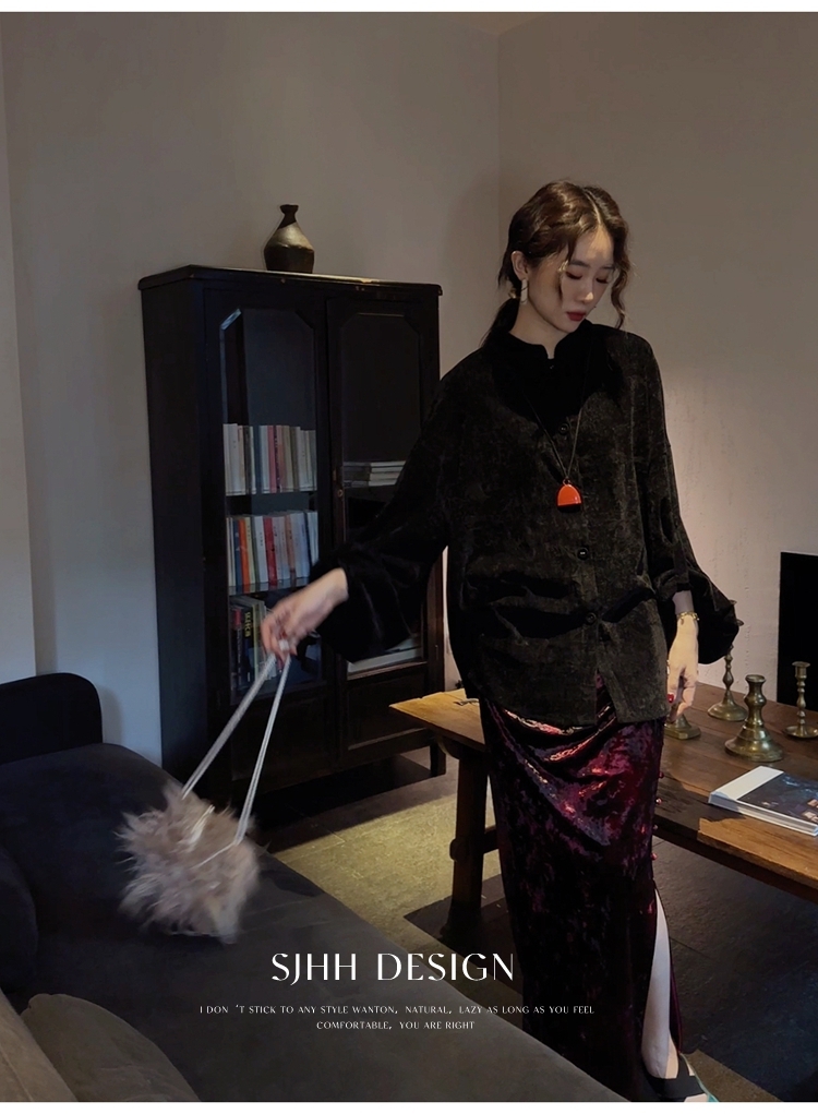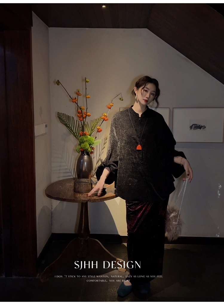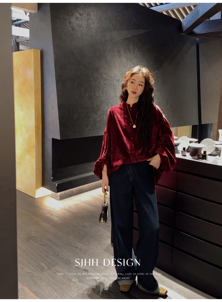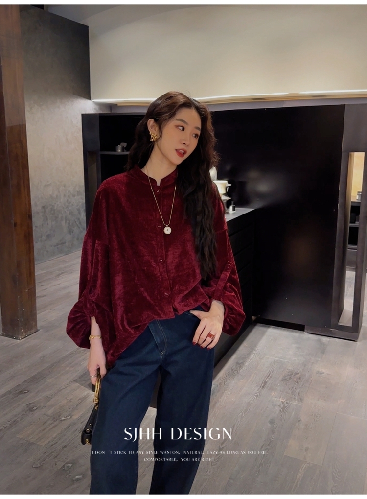 *o-ha-you*【FSJ0156】【相思故】新中式雪尼爾絨襯衫上衣2024新款輕奢高級感-3色