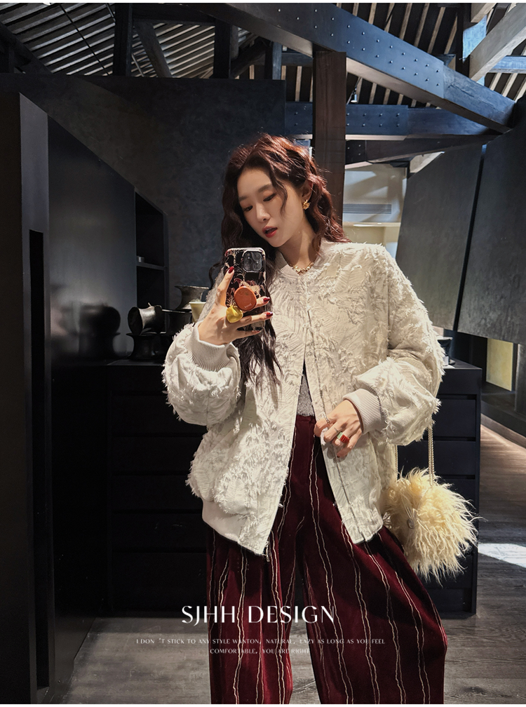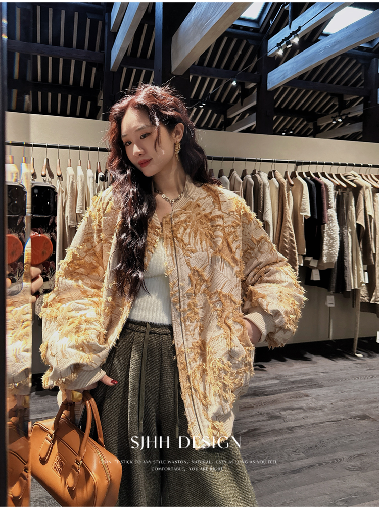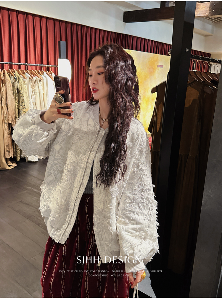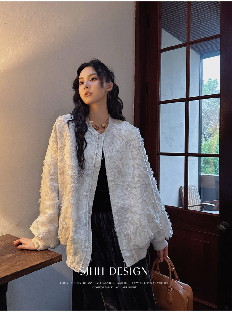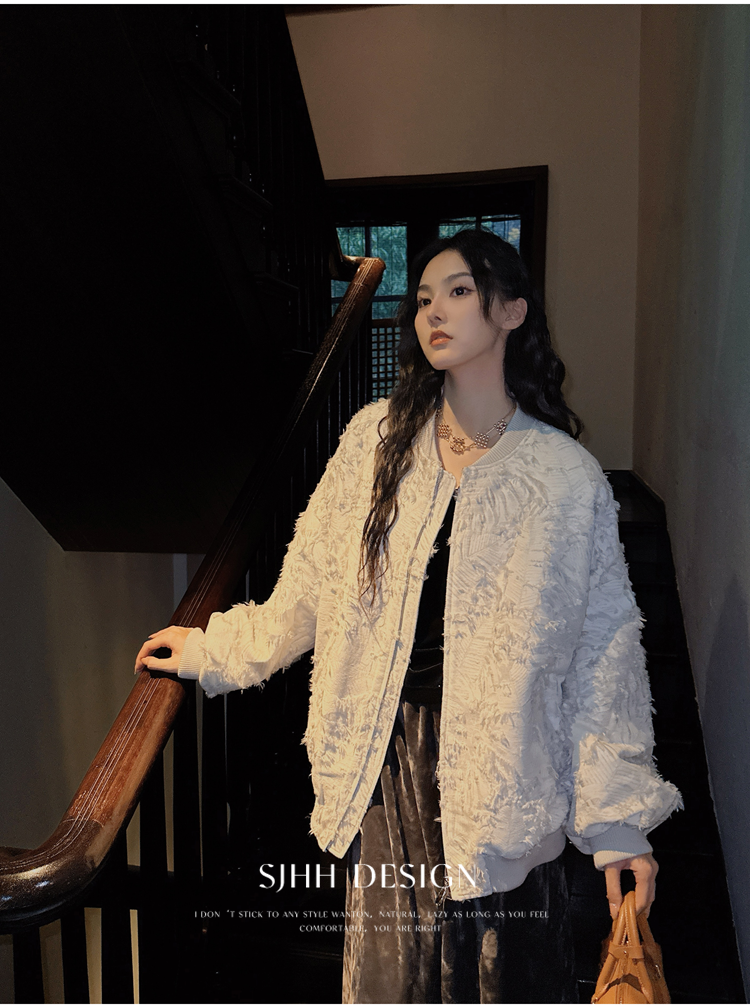 *o-ha-you*【FSJ0179】【剪花】秋冬休閒提花飛行夾克外套-考驗手速建議先參考尺寸