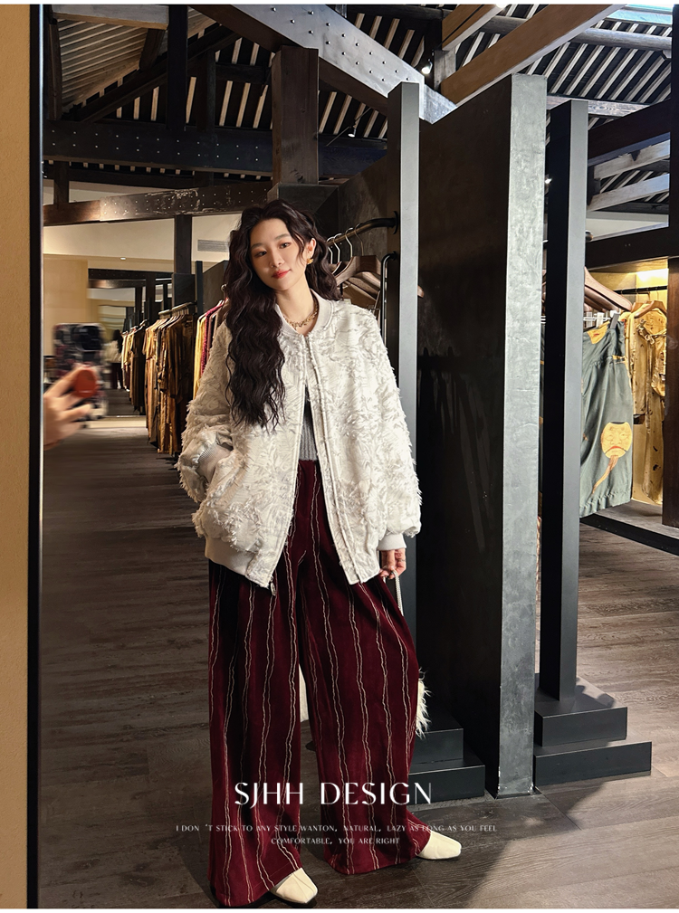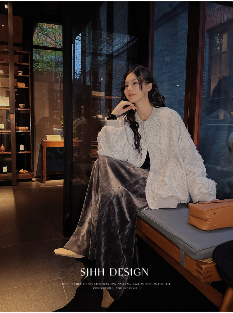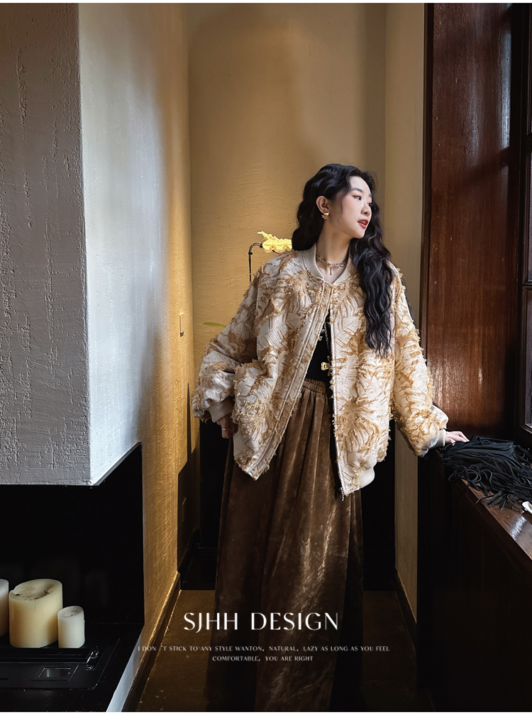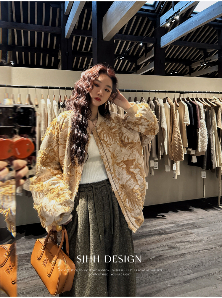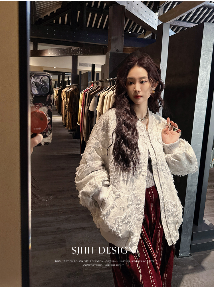 *o-ha-you*【FSJ0179】【剪花】秋冬休閒提花飛行夾克外套-考驗手速建議先參考尺寸