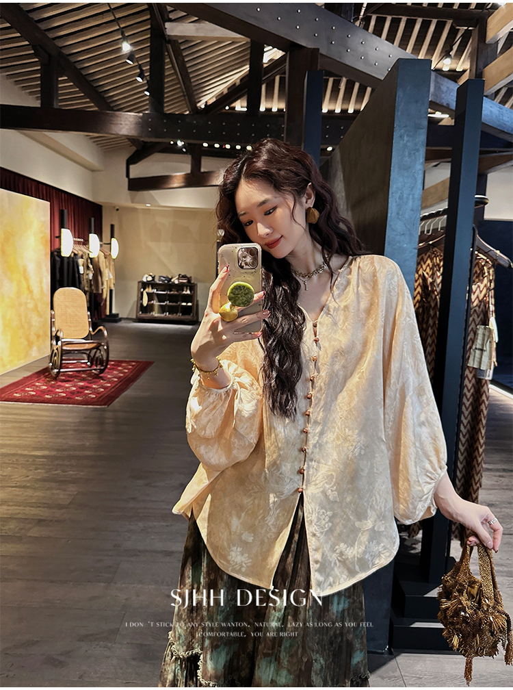 *o-ha-you*【FSJ0190】【漫江南】設計款寬鬆亞麻紮染襯衫