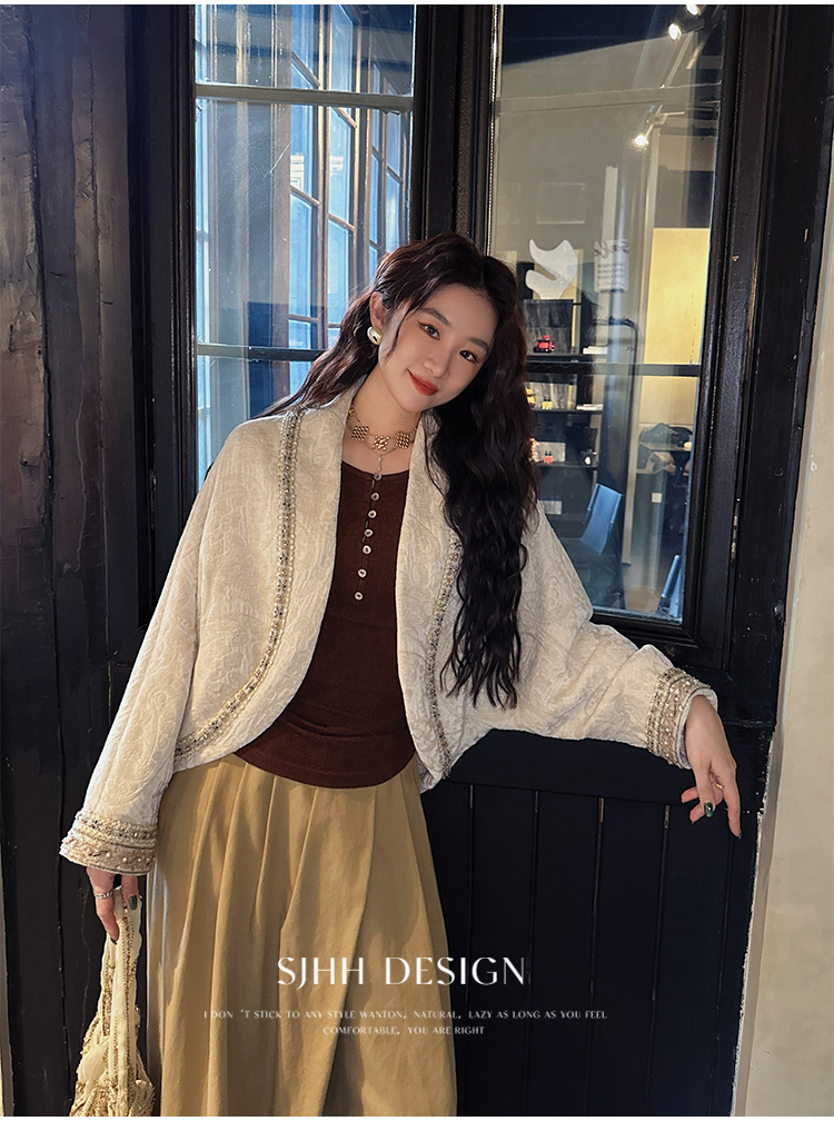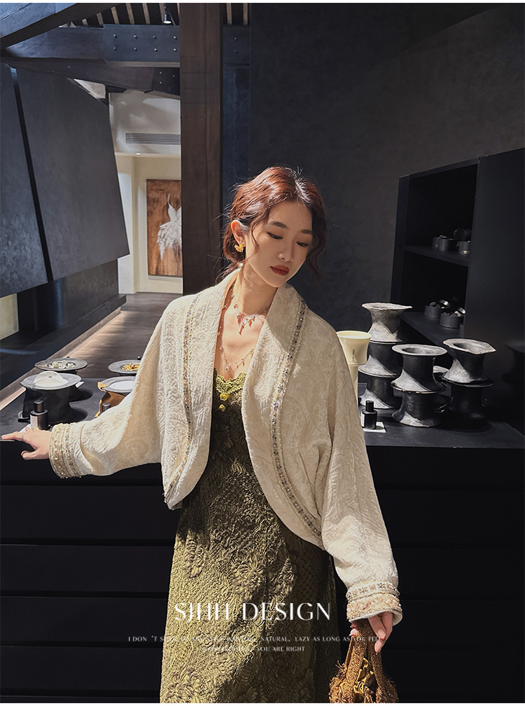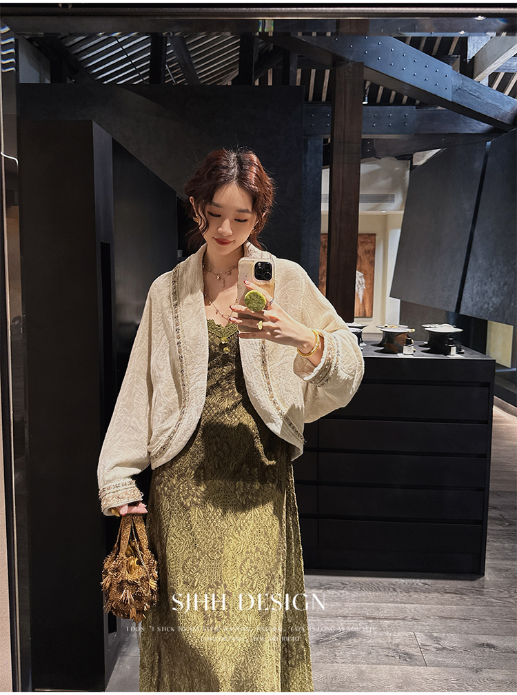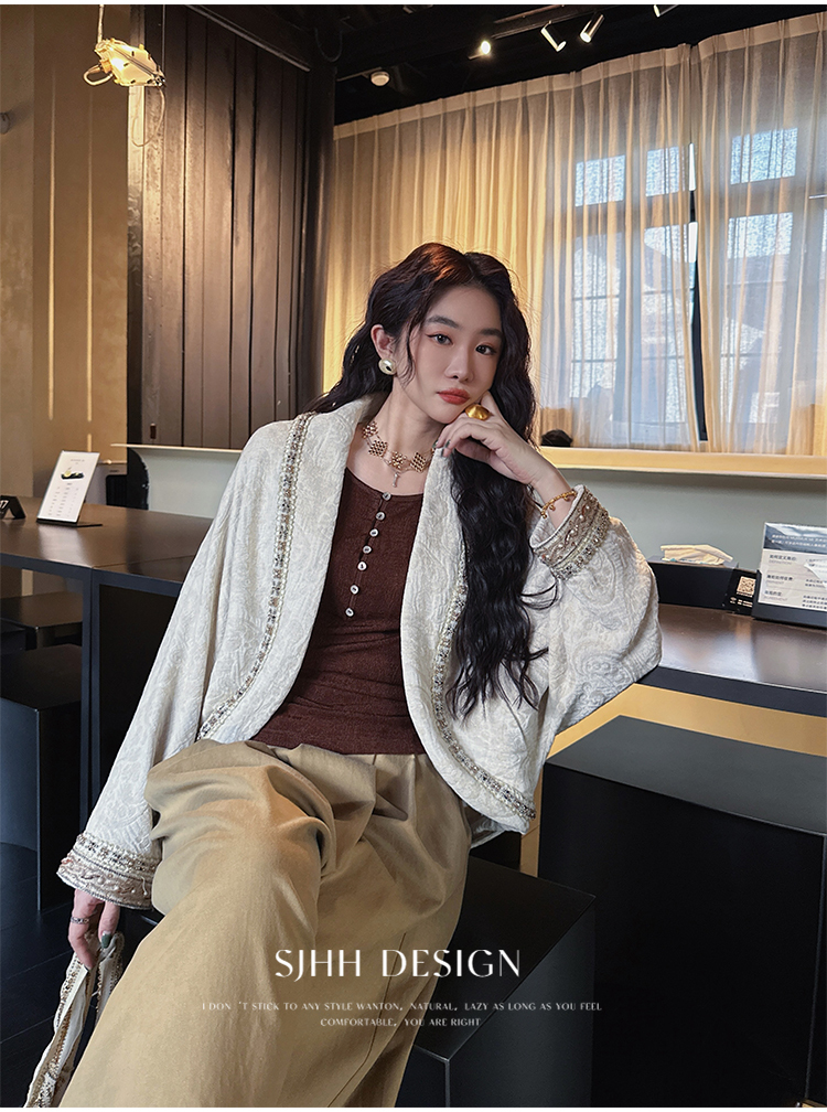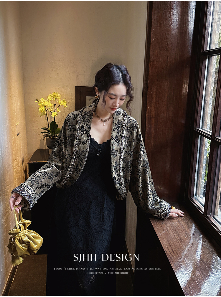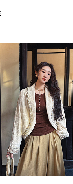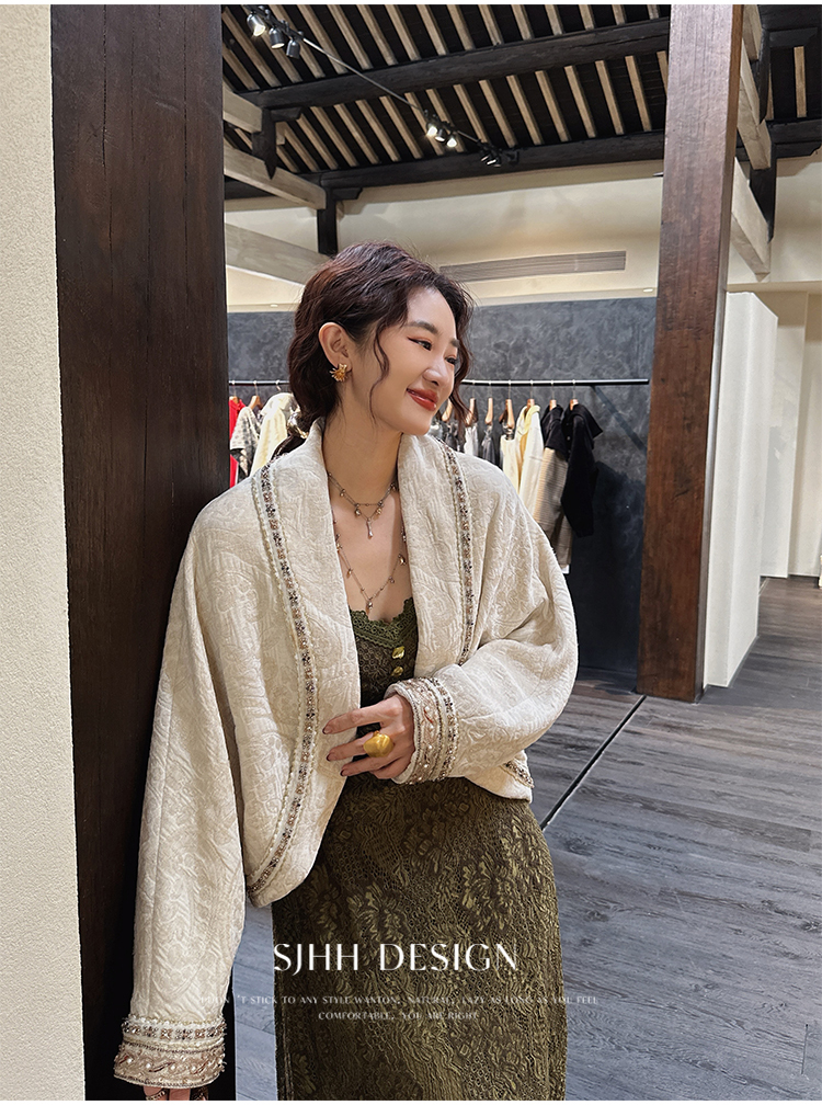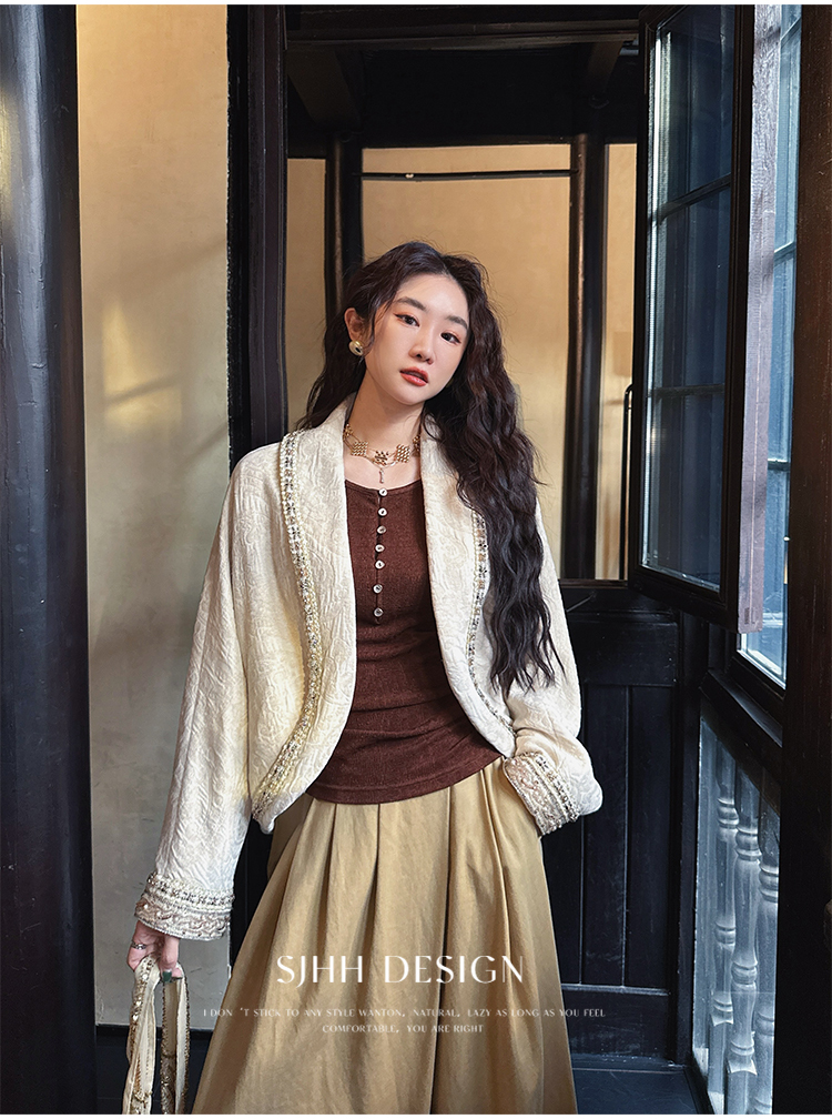 *o-ha-you*【FSJ0198】【曉山青】設計款新中式繭型釘珠短袍外套