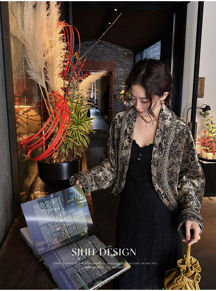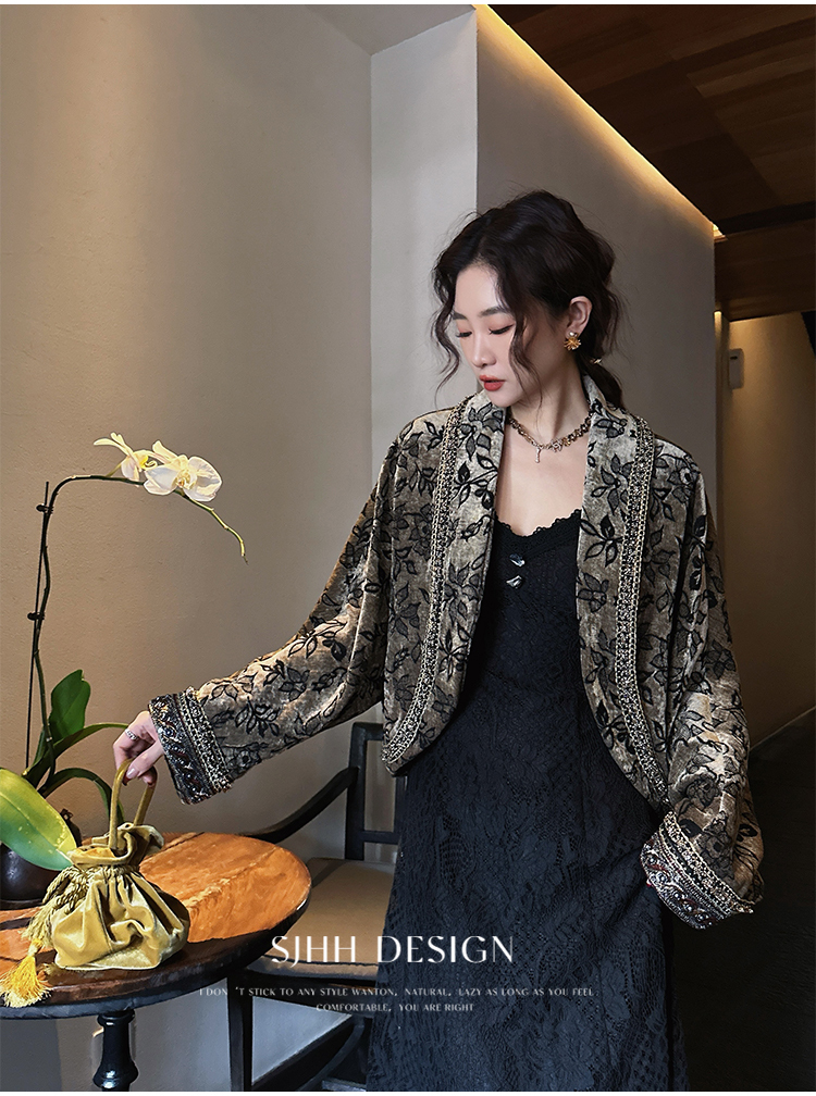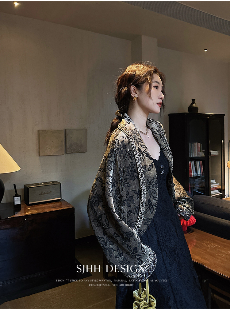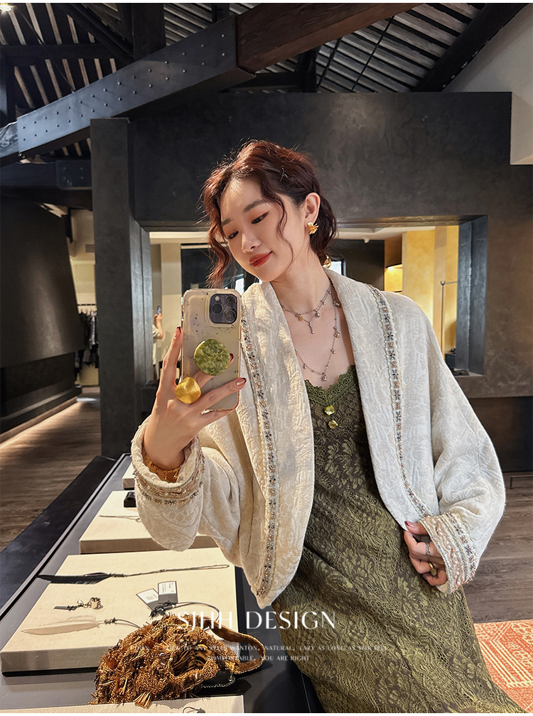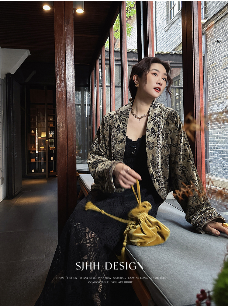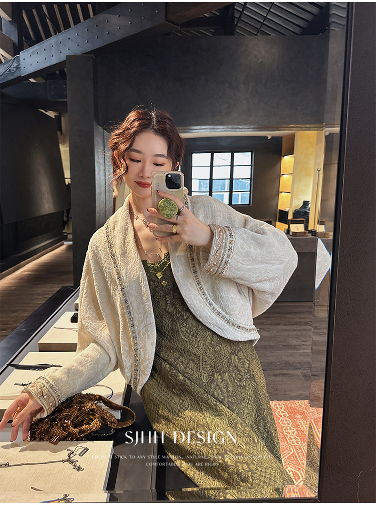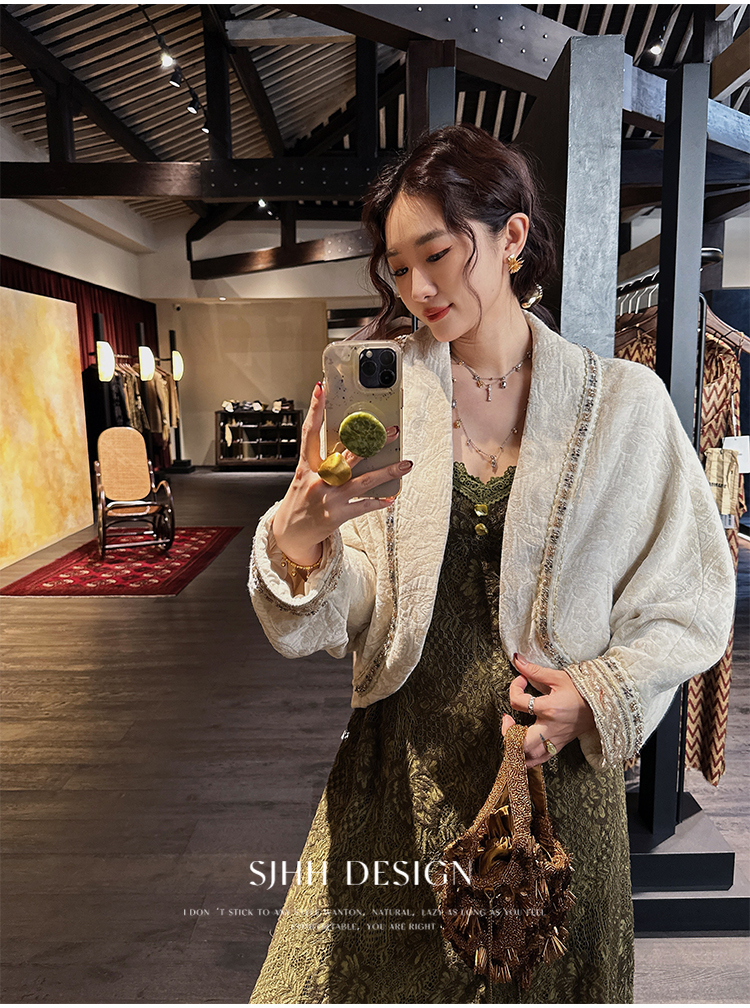 *o-ha-you*【FSJ0198】【曉山青】設計款新中式繭型釘珠短袍外套