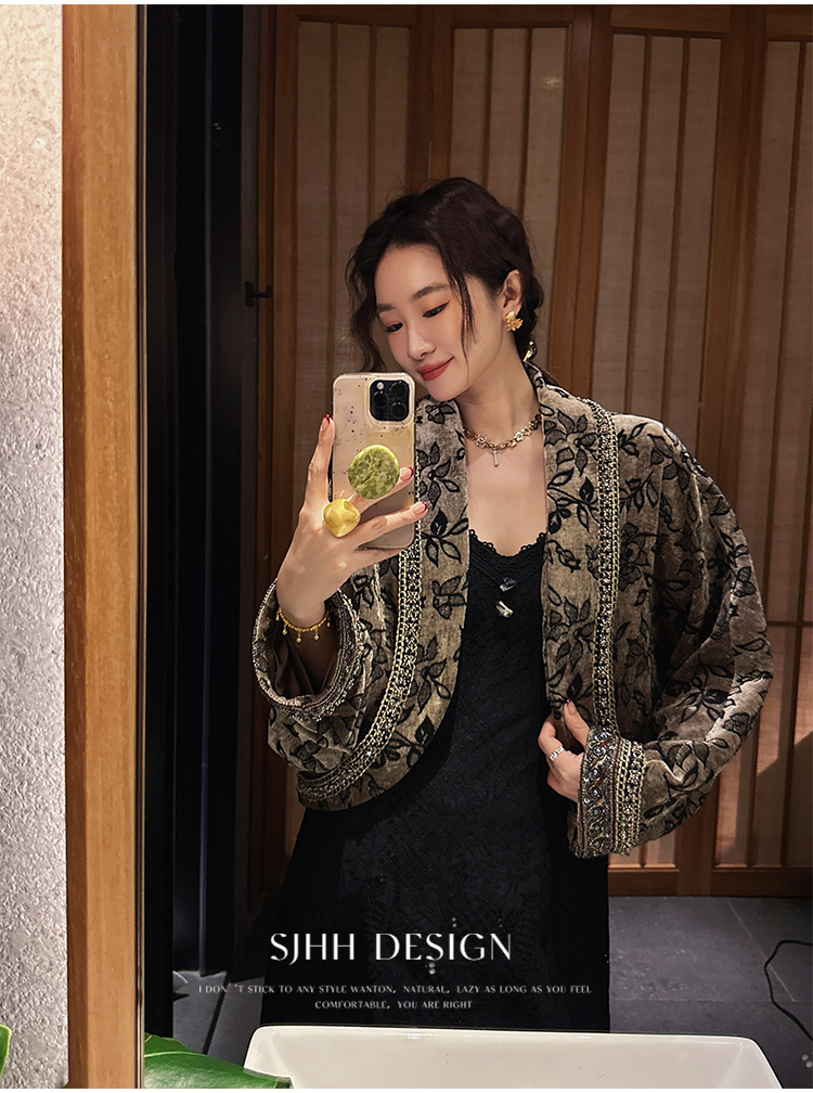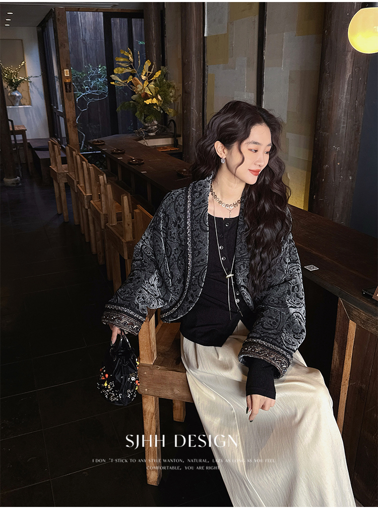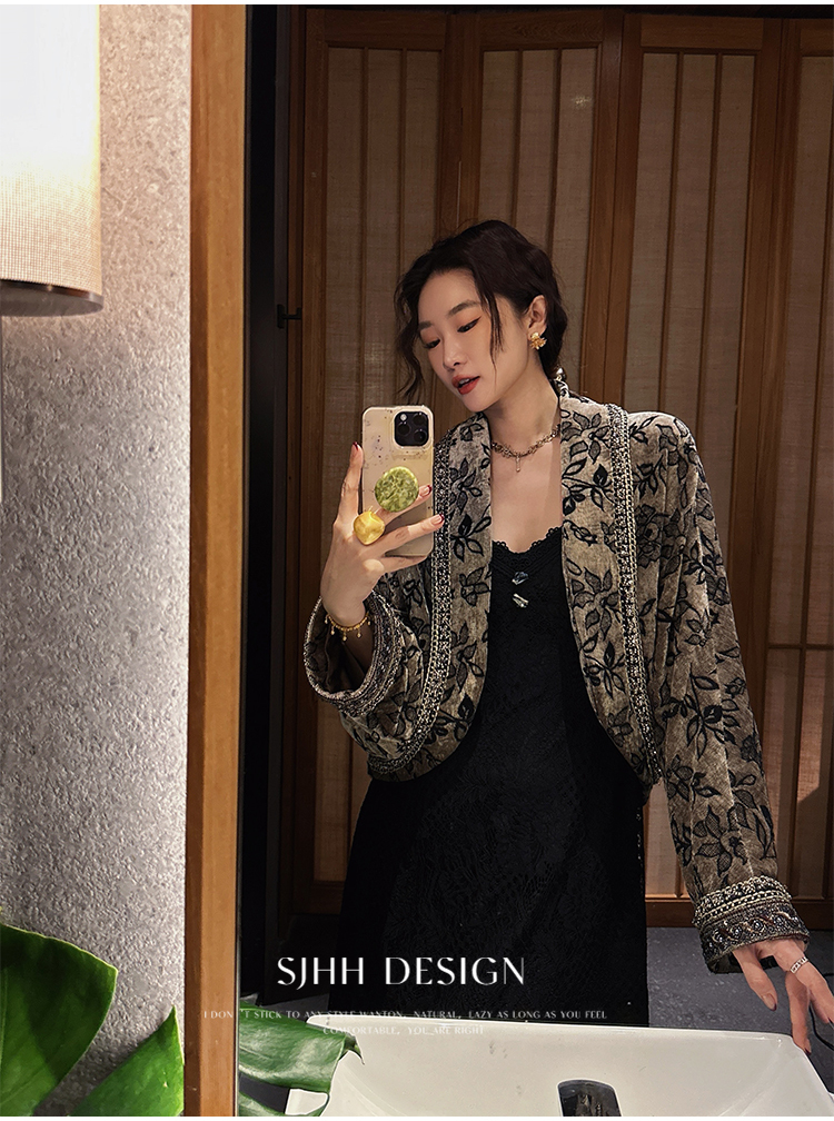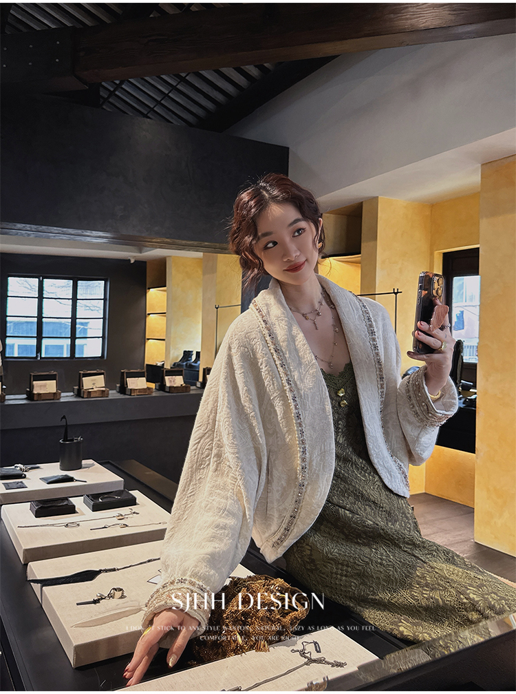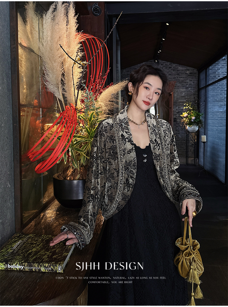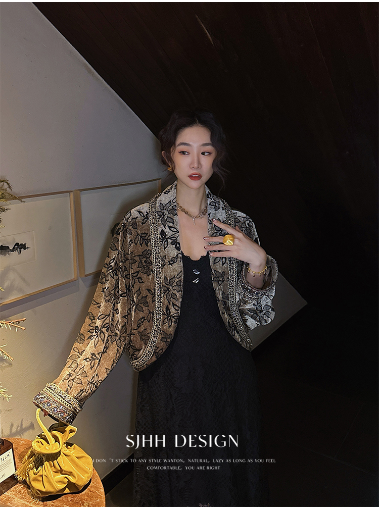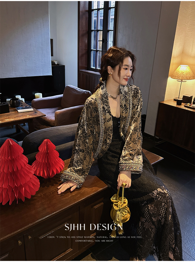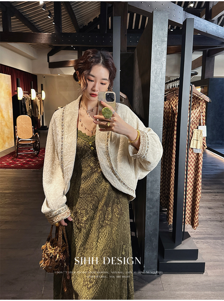 *o-ha-you*【FSJ0198】【曉山青】設計款新中式繭型釘珠短袍外套