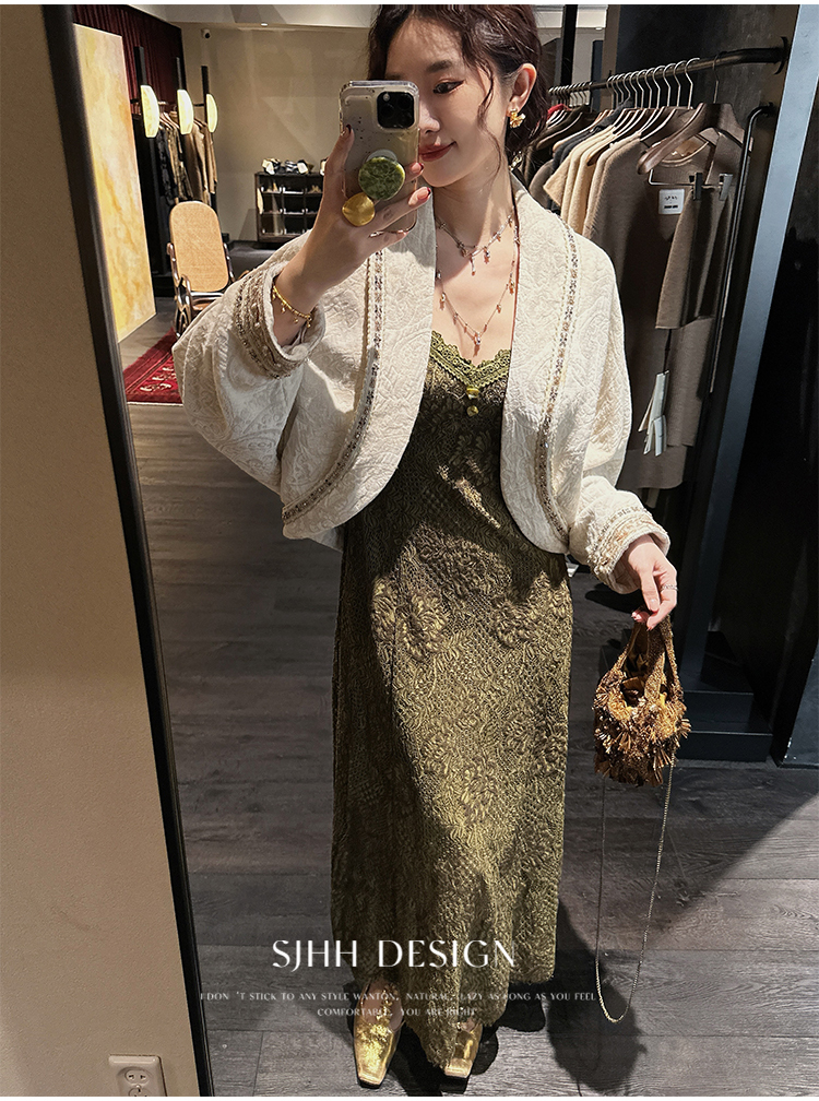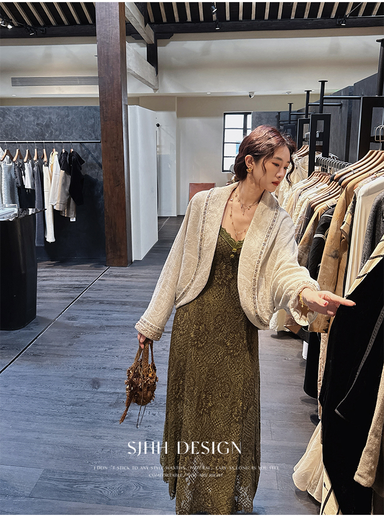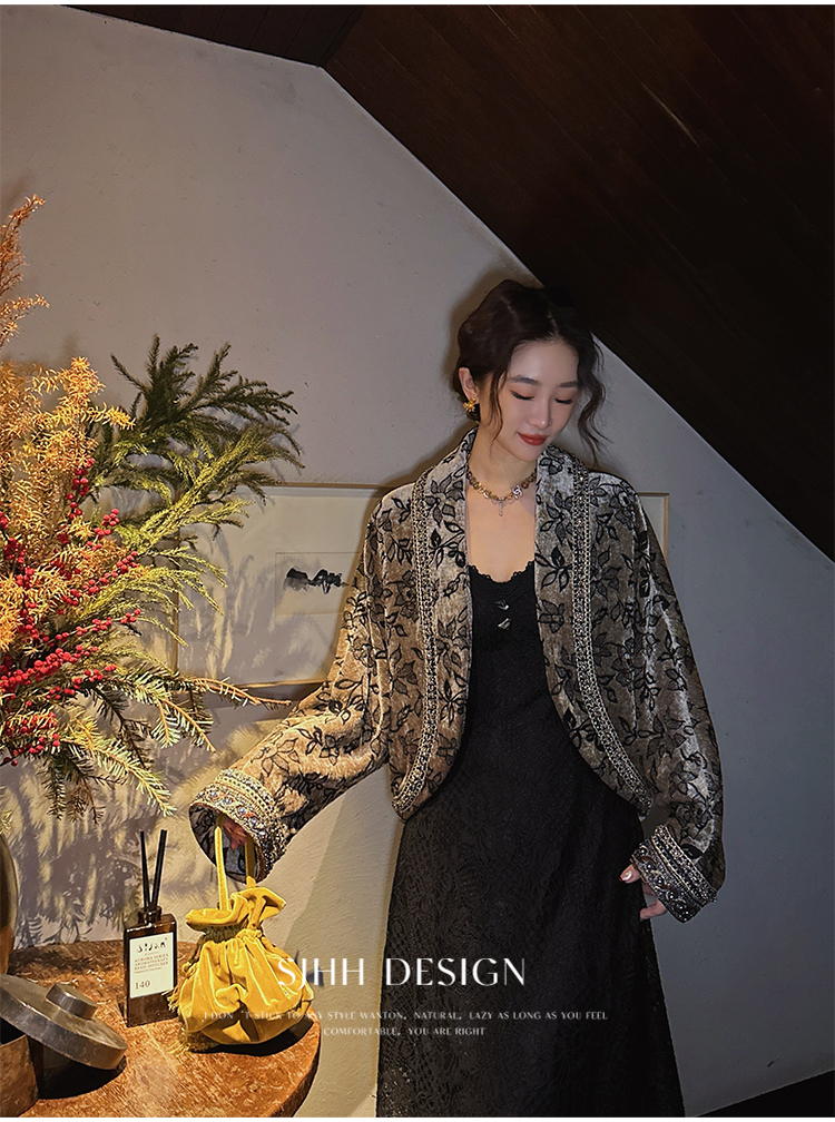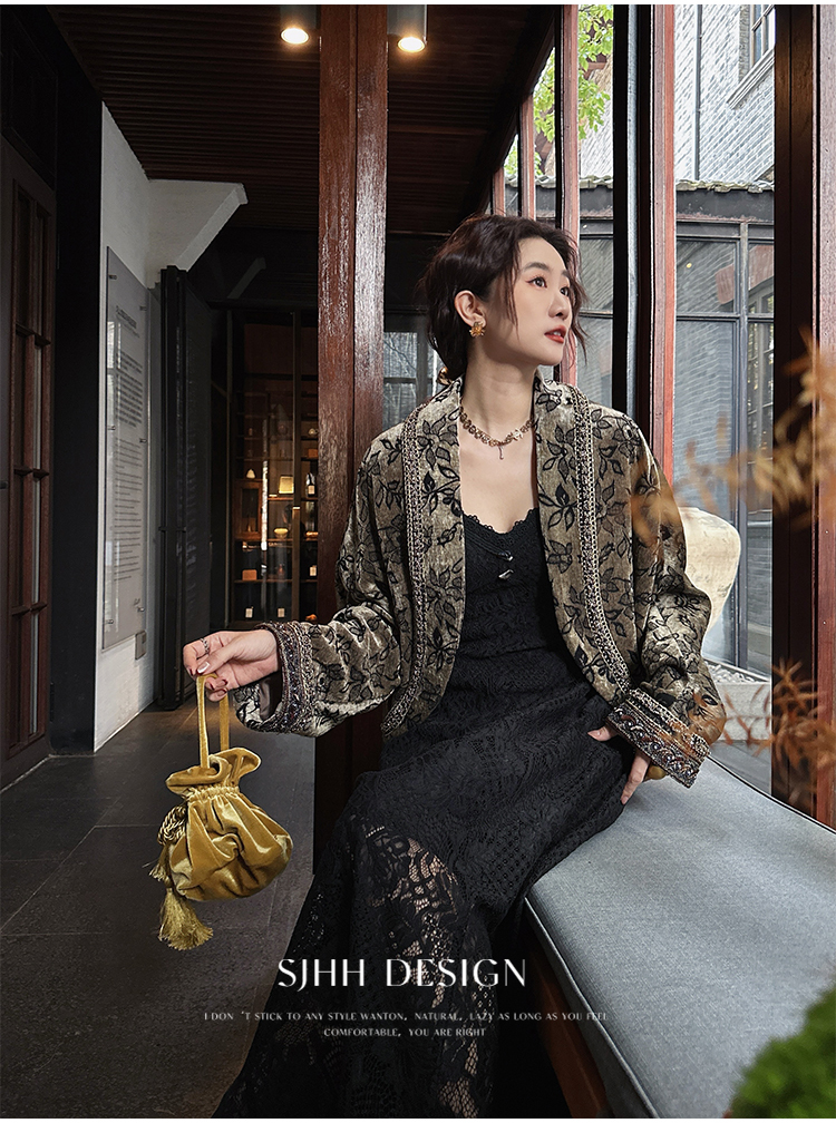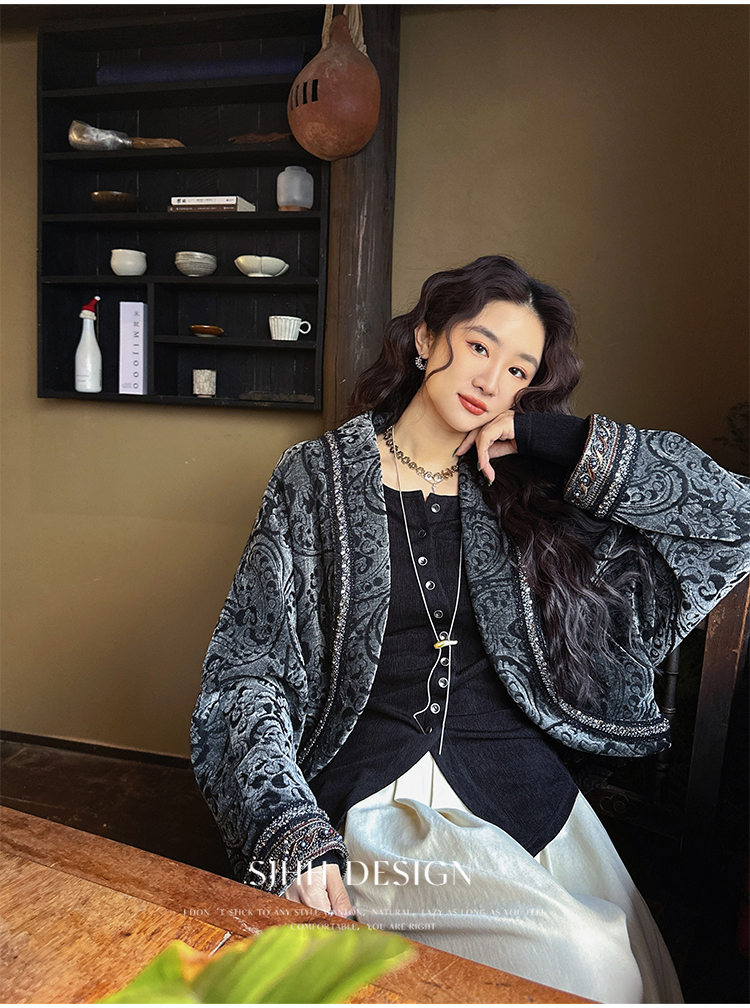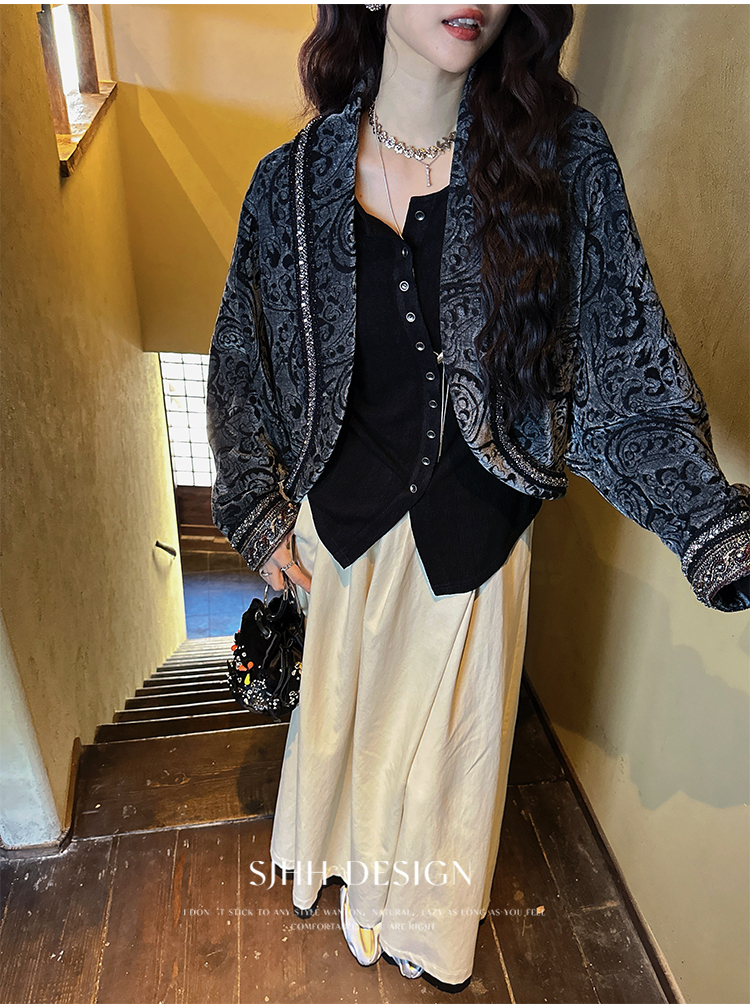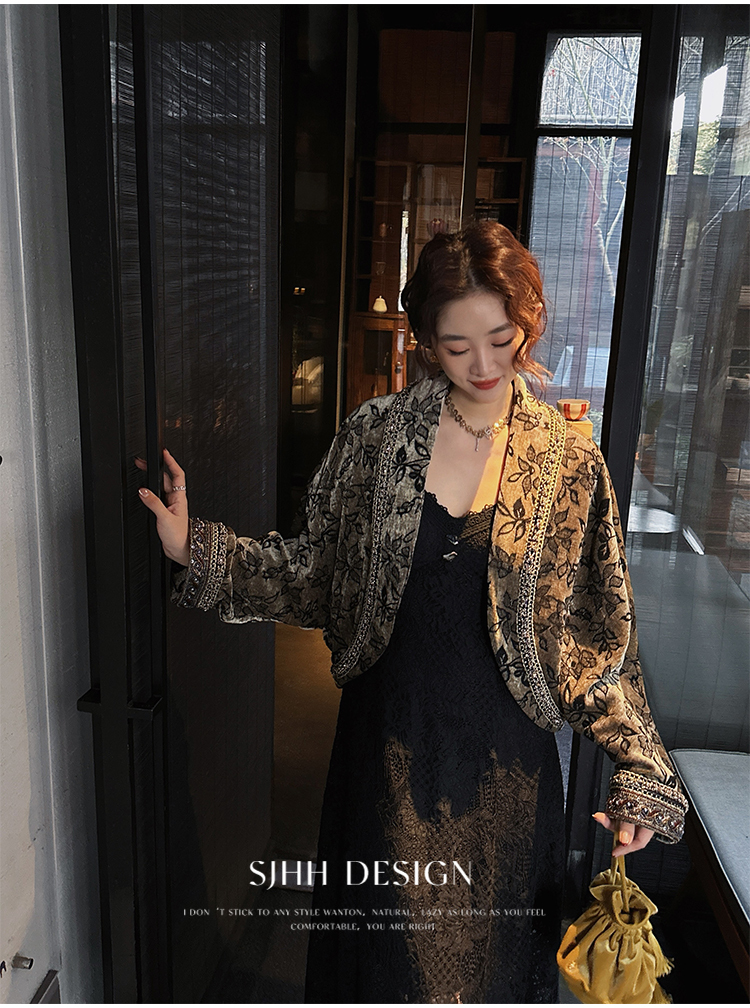 *o-ha-you*【FSJ0198】【曉山青】設計款新中式繭型釘珠短袍外套