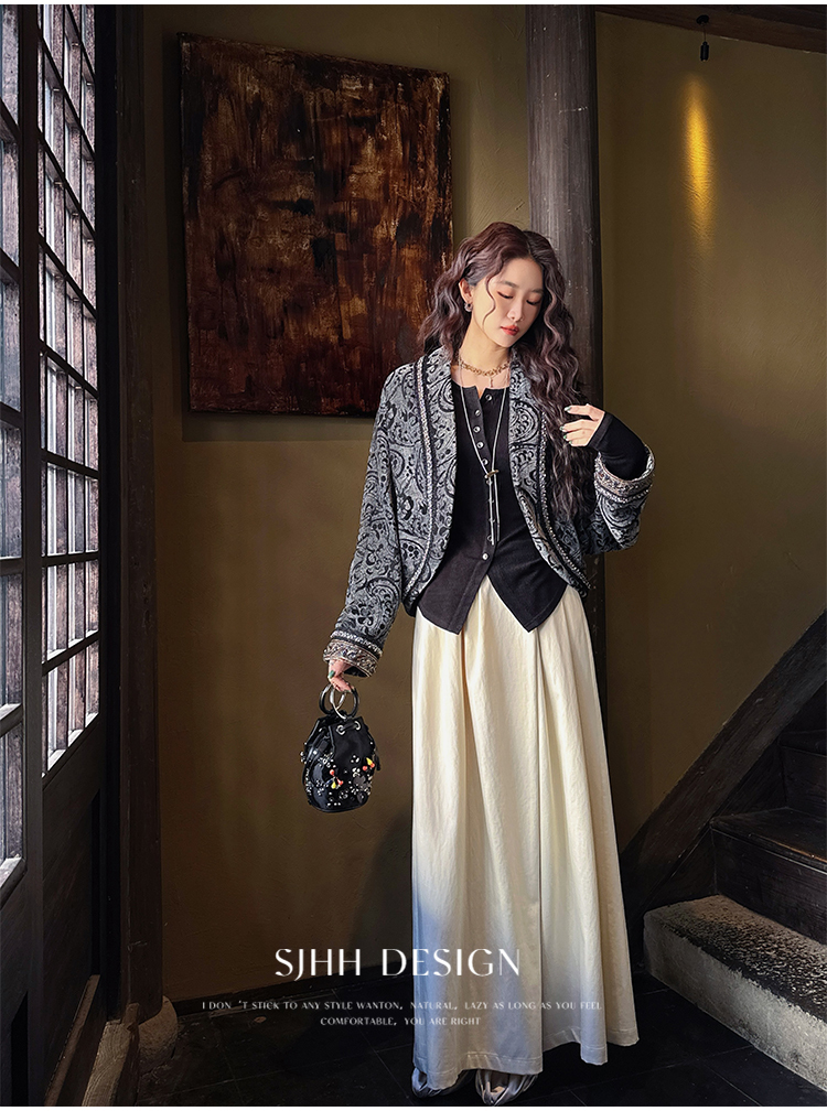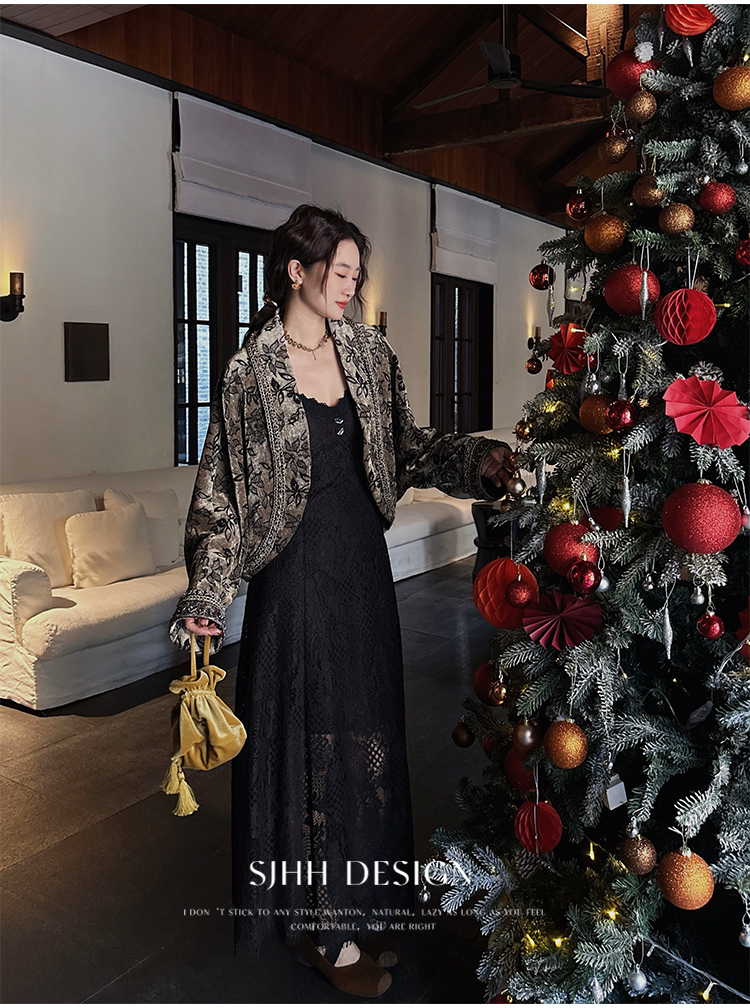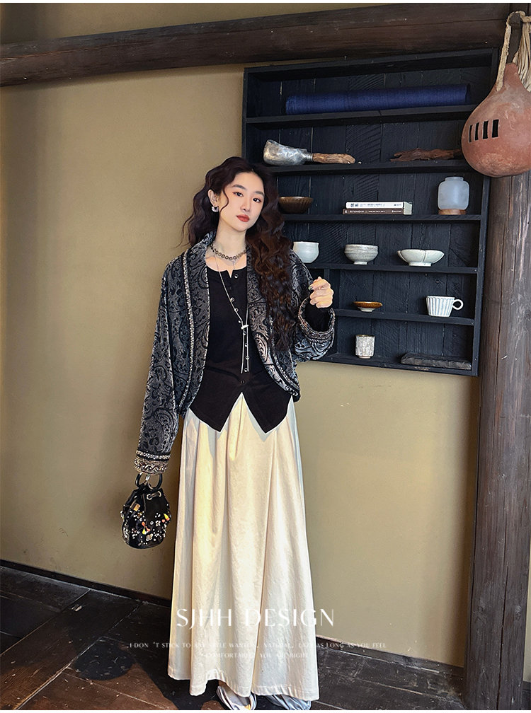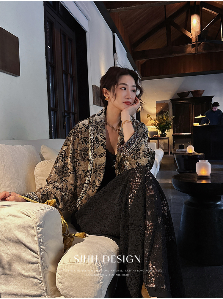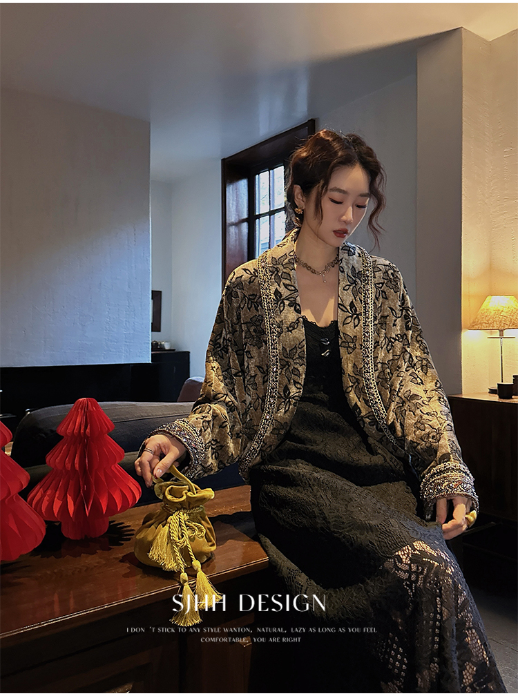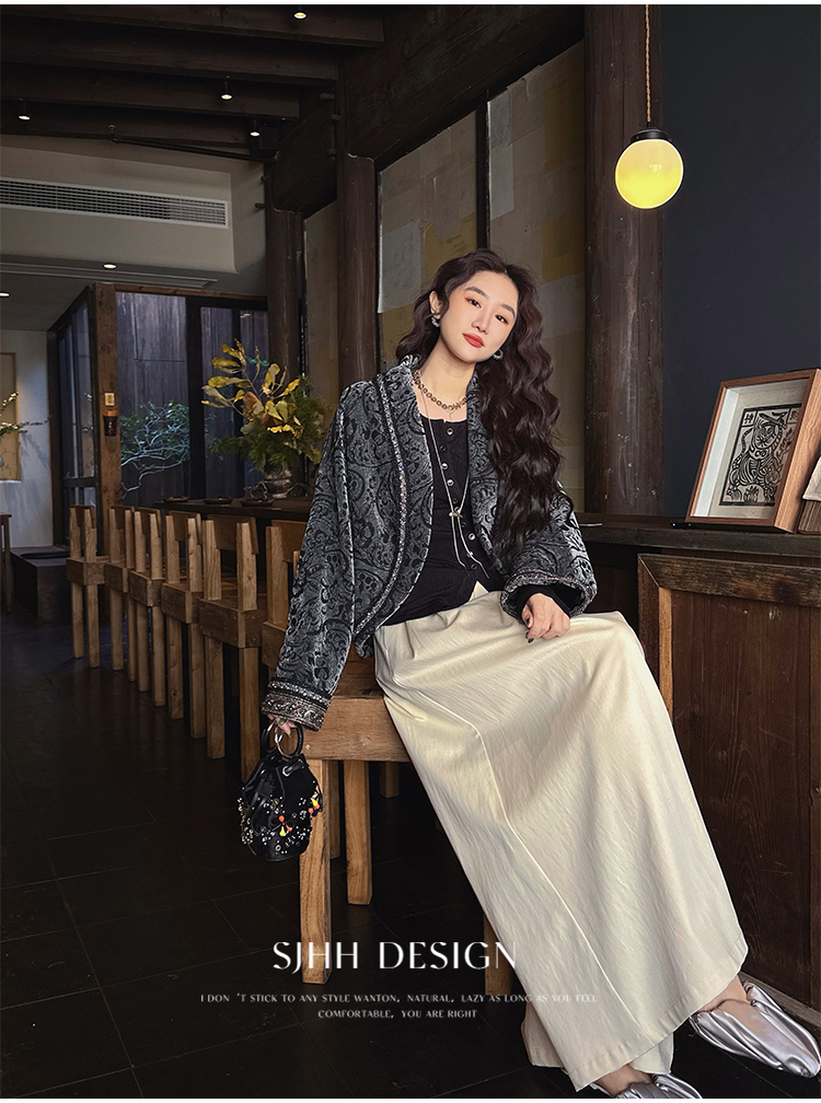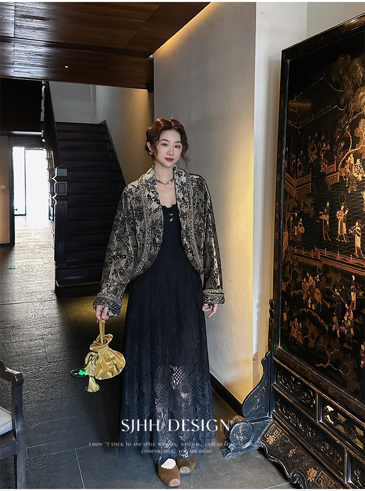 *o-ha-you*【FSJ0198】【曉山青】設計款新中式繭型釘珠短袍外套