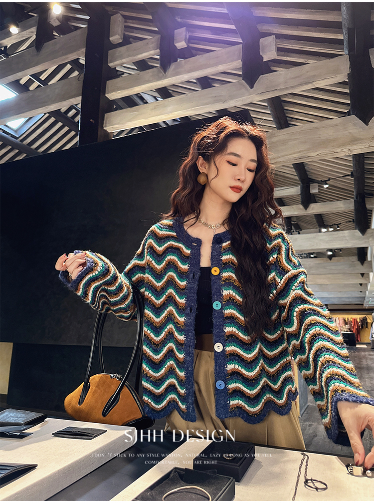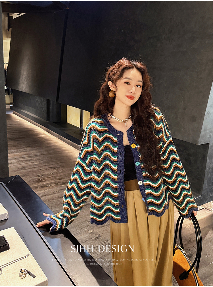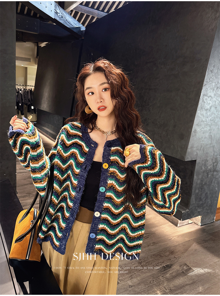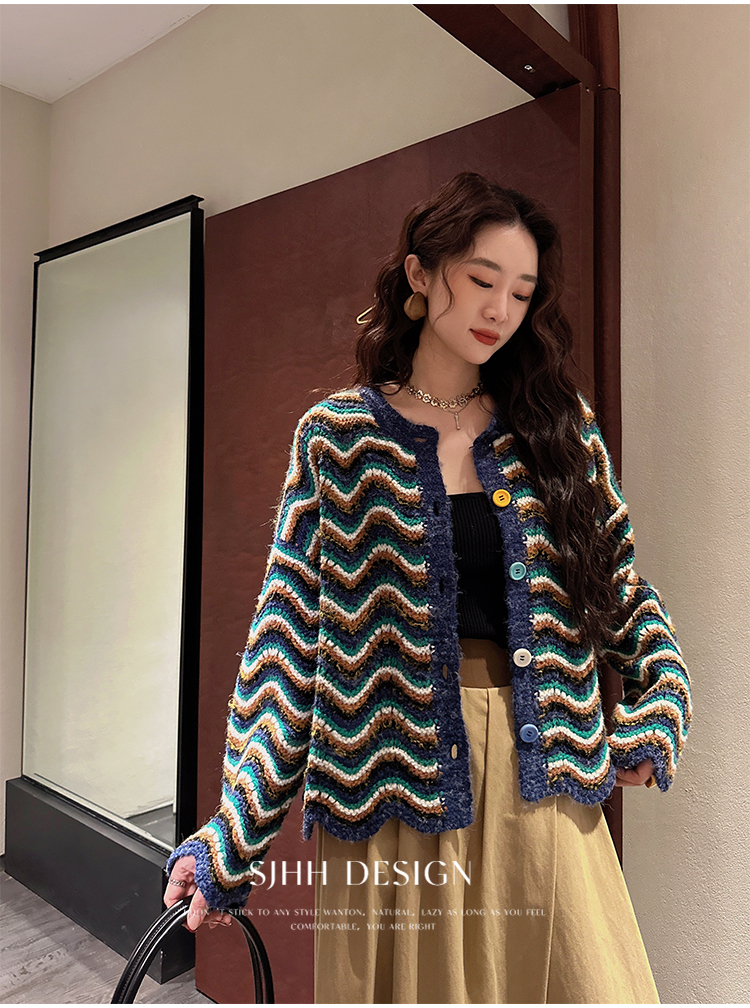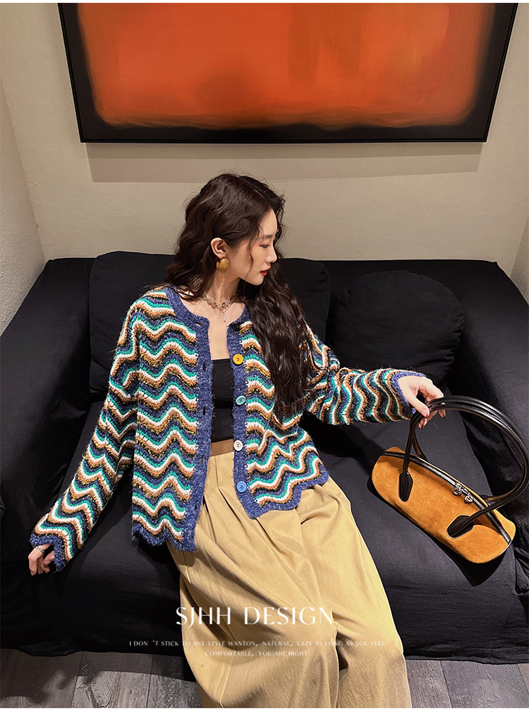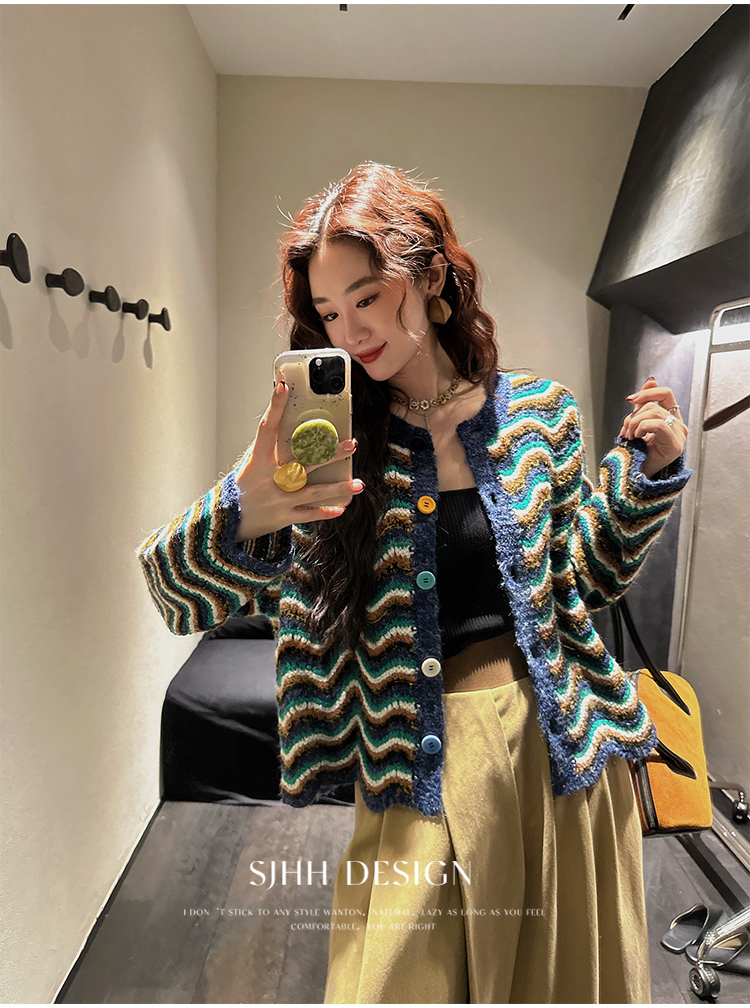 *o-ha-you*【FSJ0200】【枝眠】設計款撞色條紋針織開襟衫外套