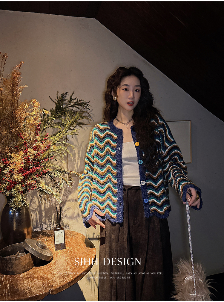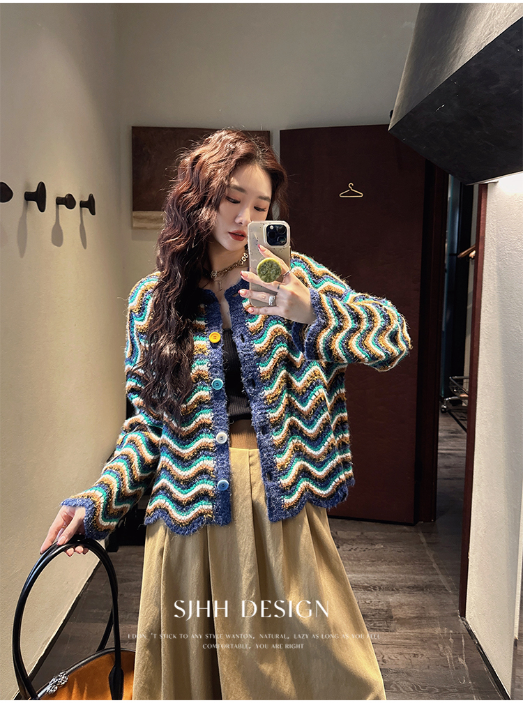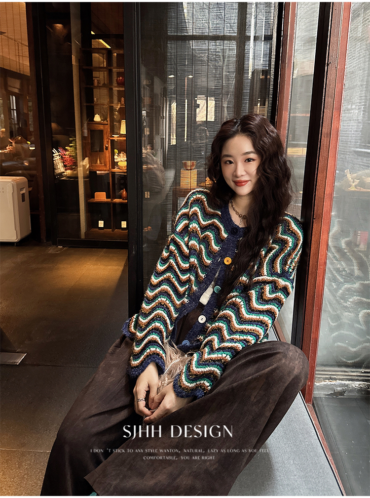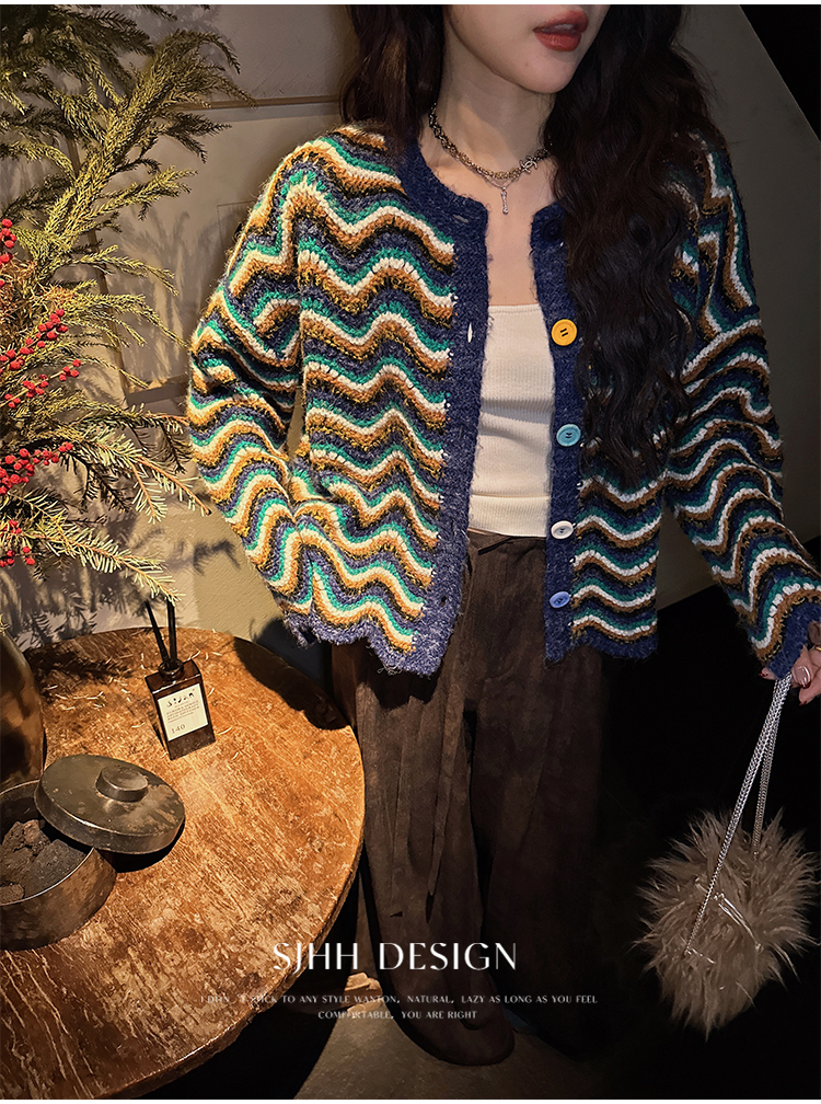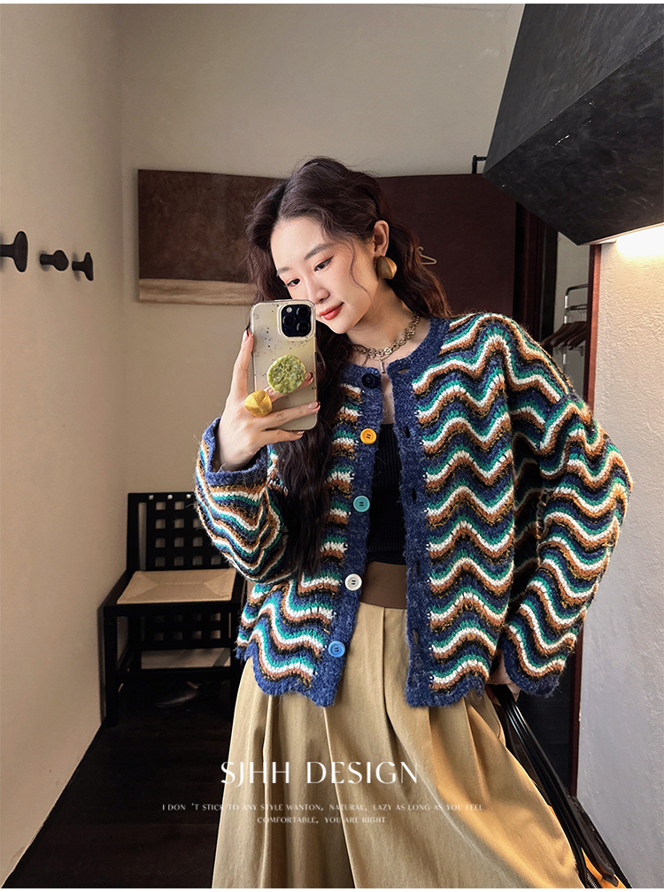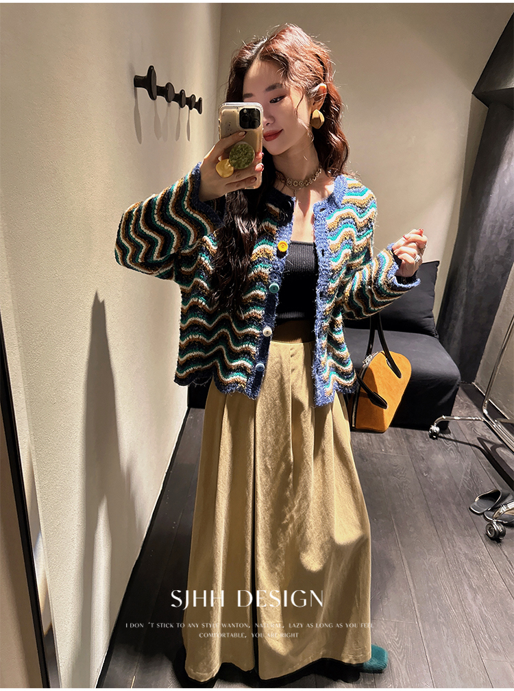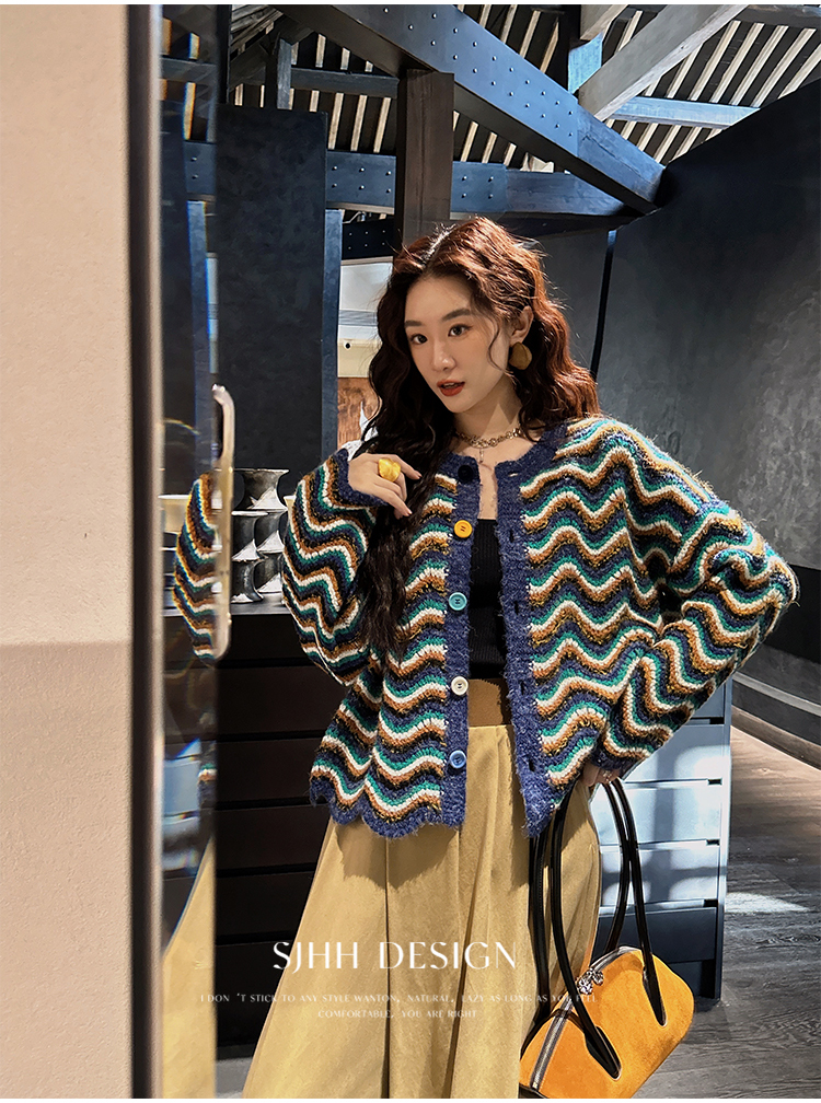 *o-ha-you*【FSJ0200】【枝眠】設計款撞色條紋針織開襟衫外套