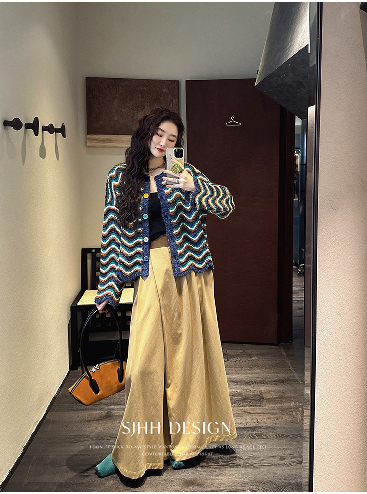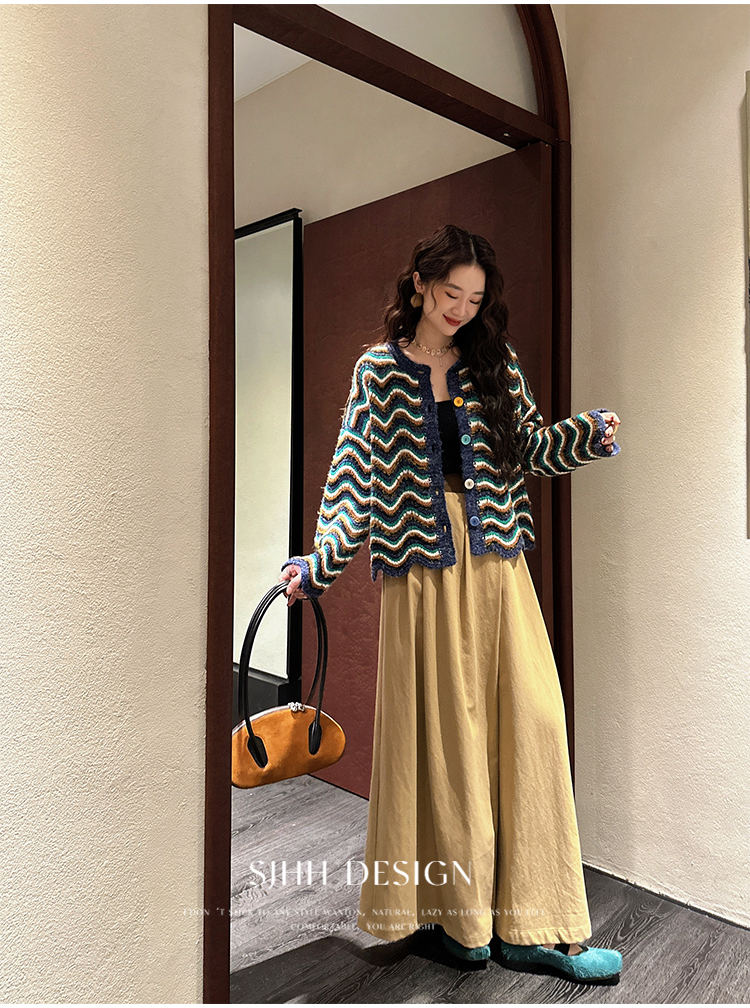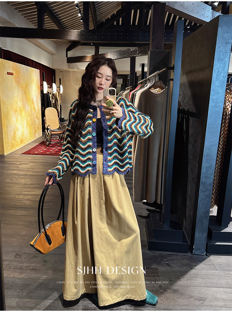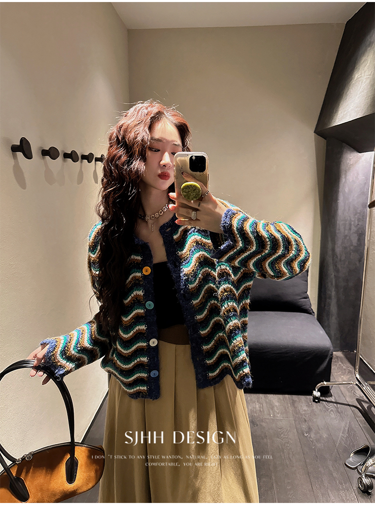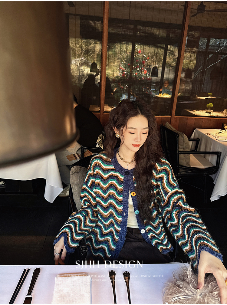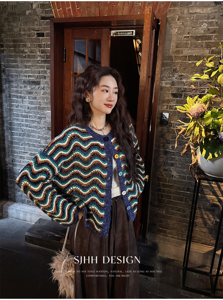 *o-ha-you*【FSJ0200】【枝眠】設計款撞色條紋針織開襟衫外套