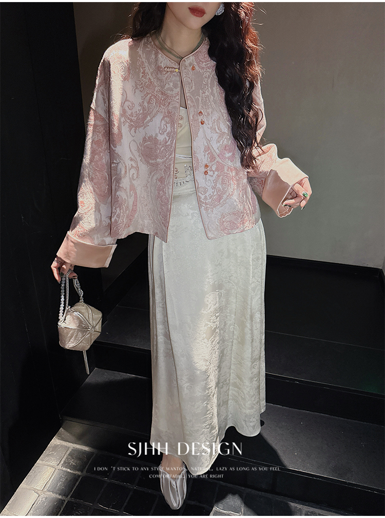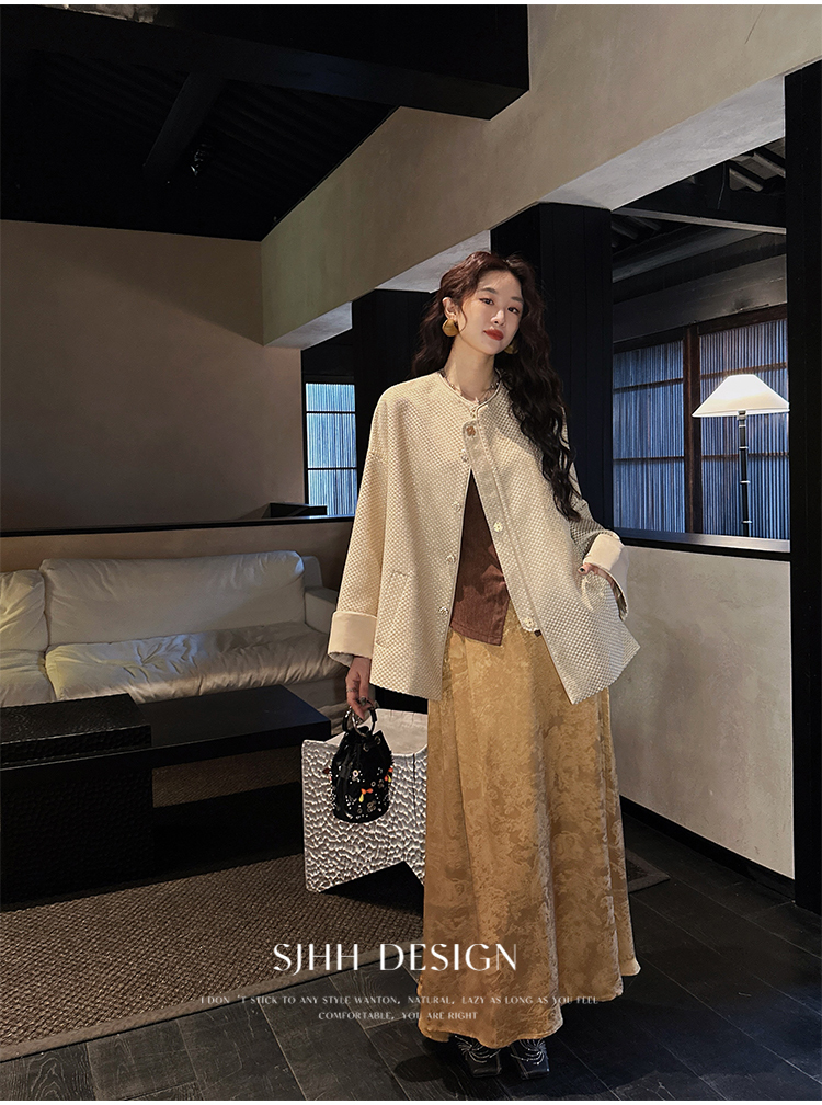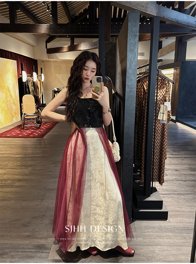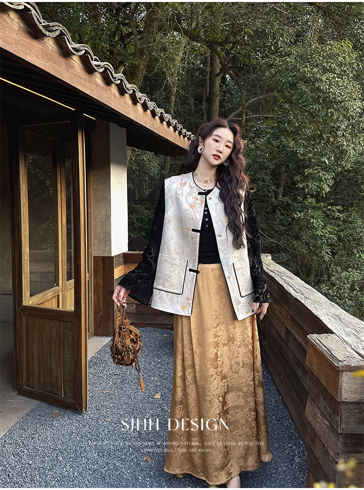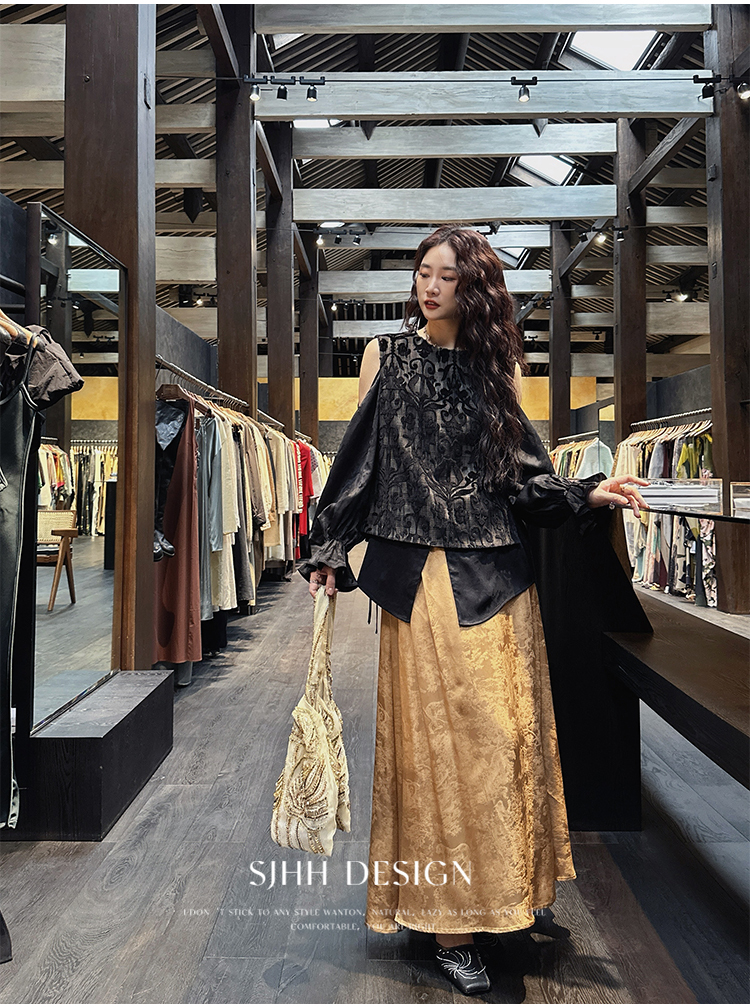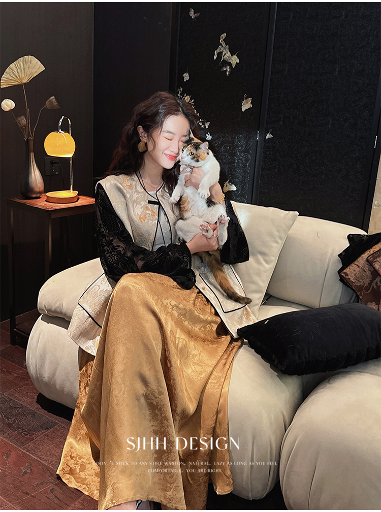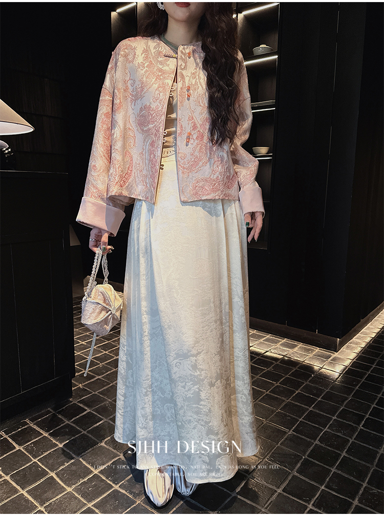 *o-ha-you*【FSJ0203】【弦月】新中式中國風高腰人絲半裙