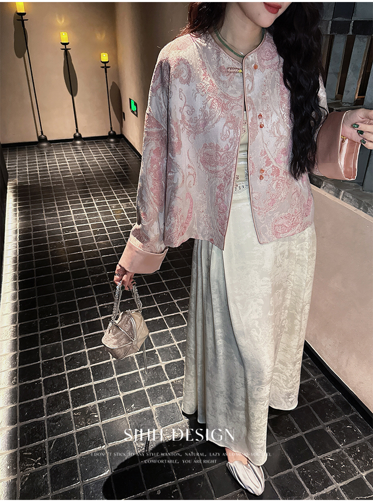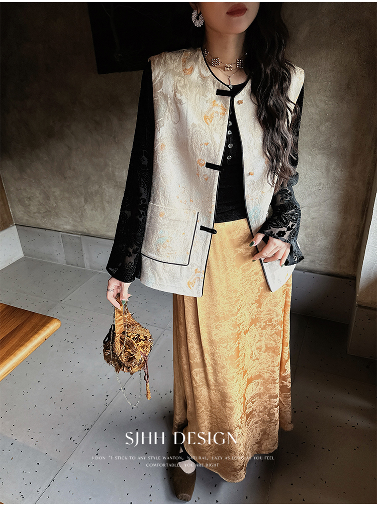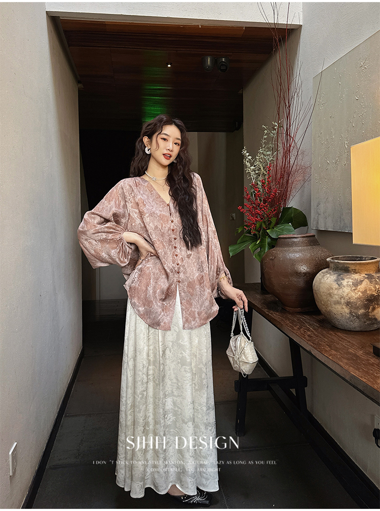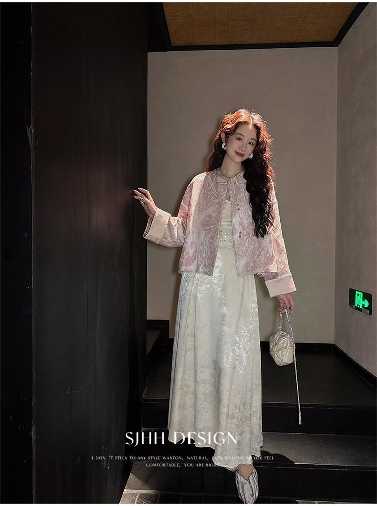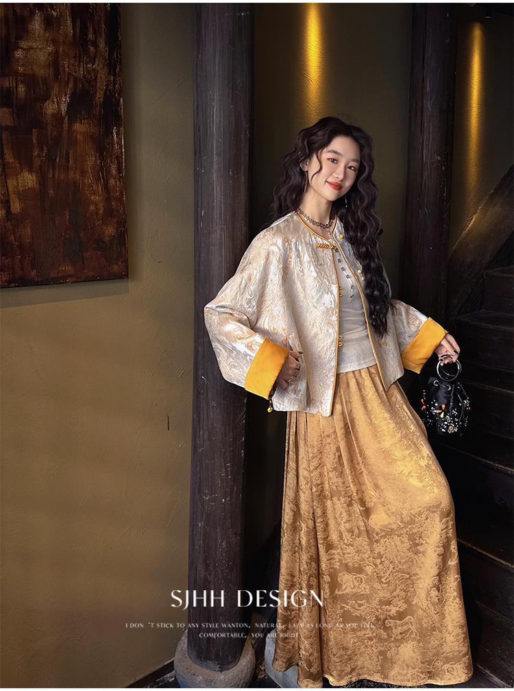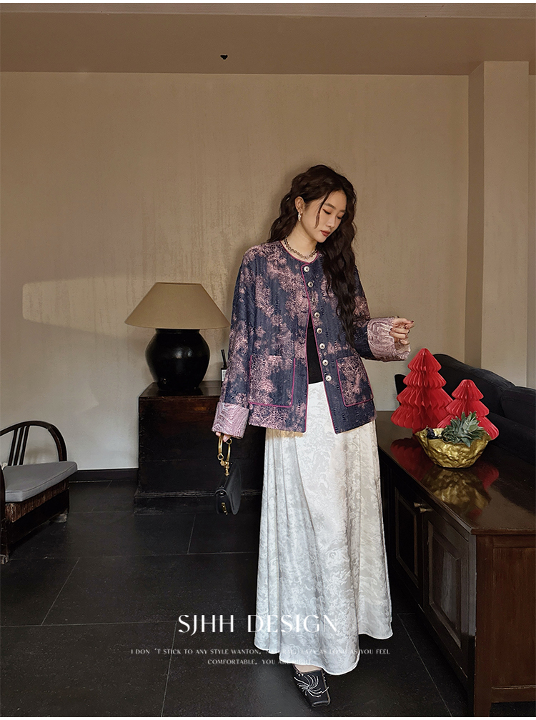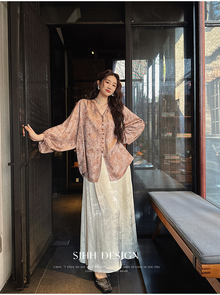 *o-ha-you*【FSJ0203】【弦月】新中式中國風高腰人絲半裙