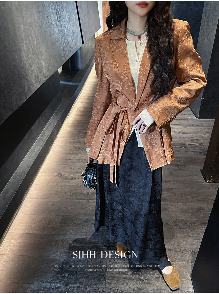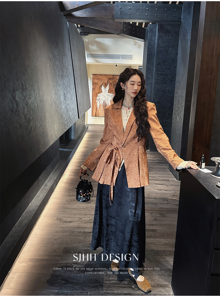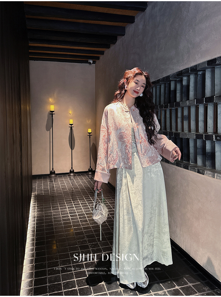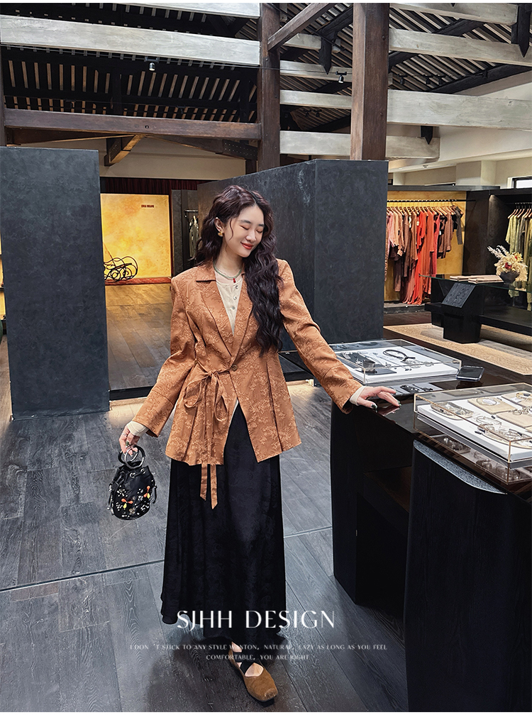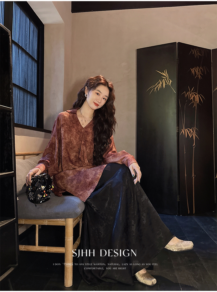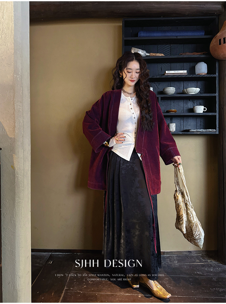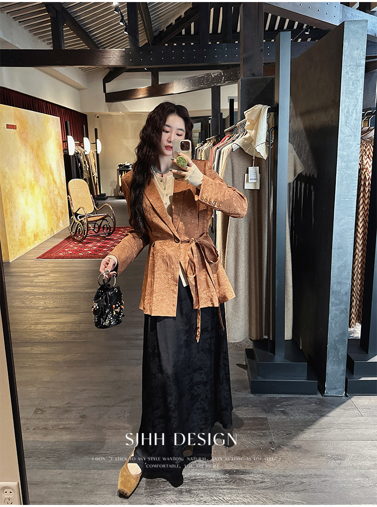 *o-ha-you*【FSJ0203】【弦月】新中式中國風高腰人絲半裙