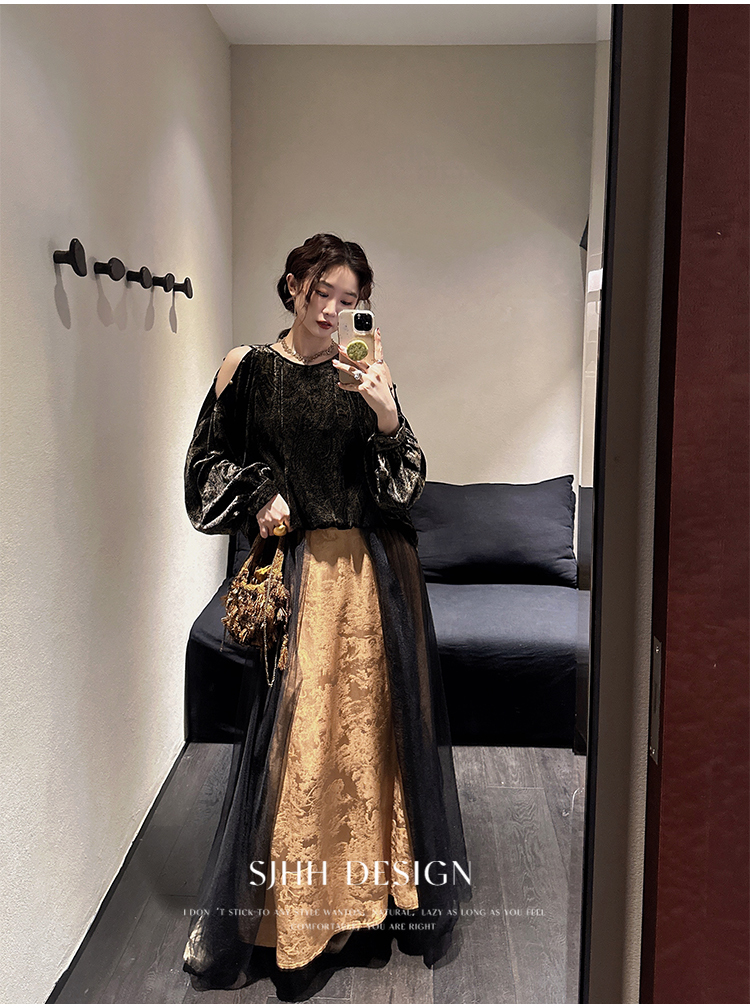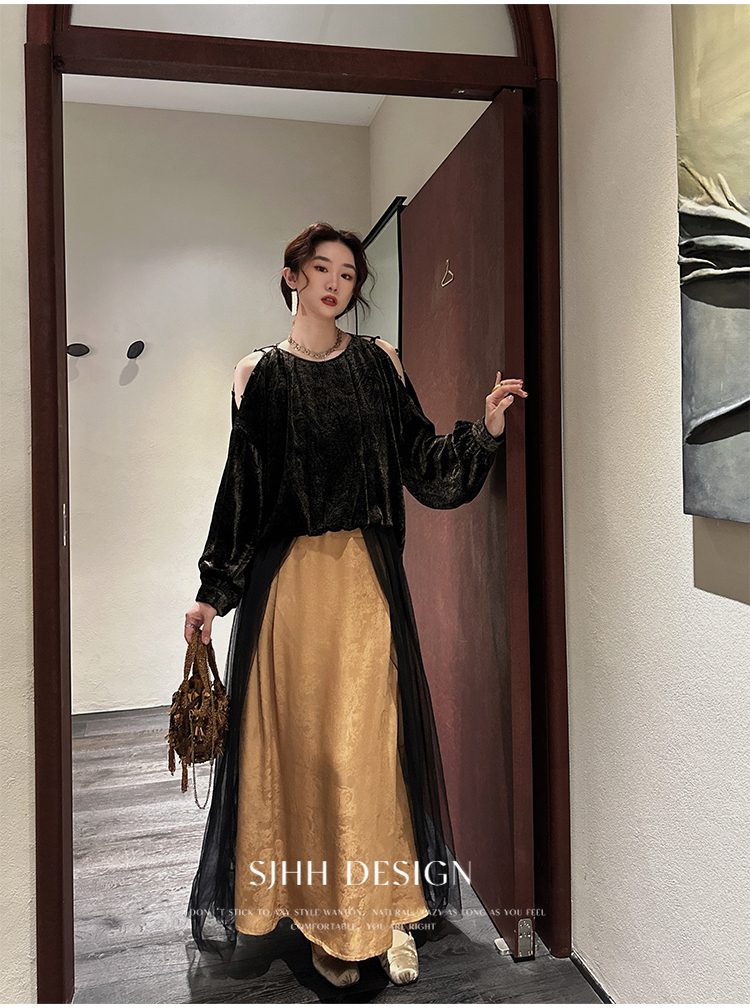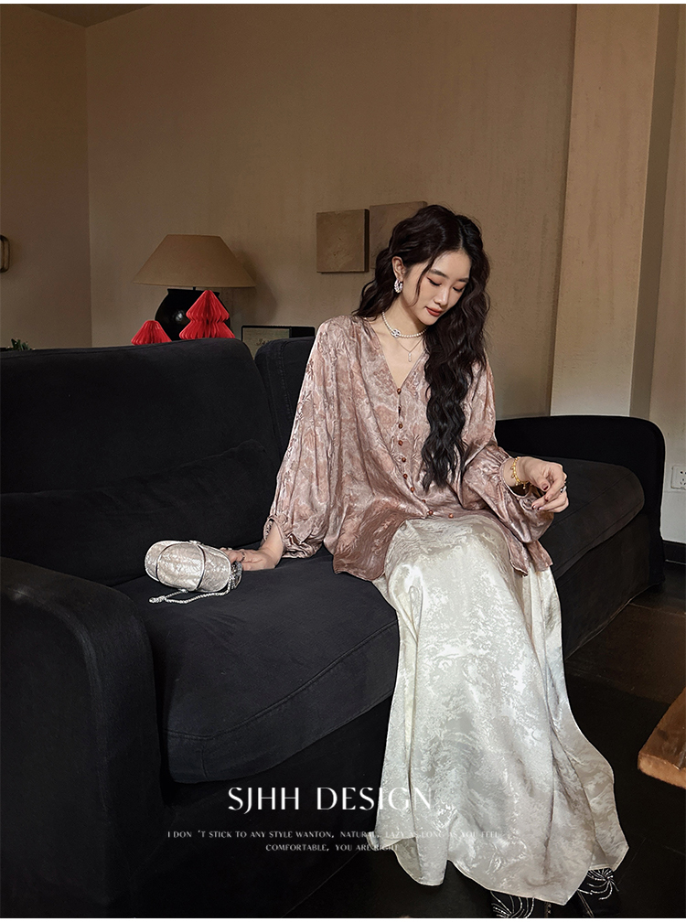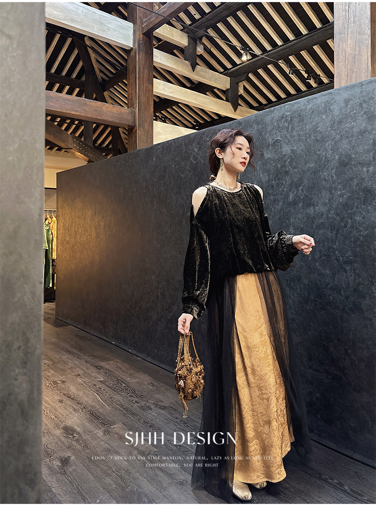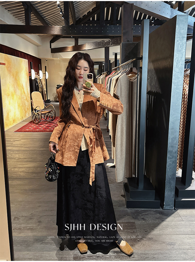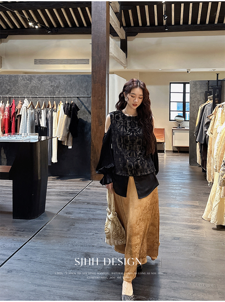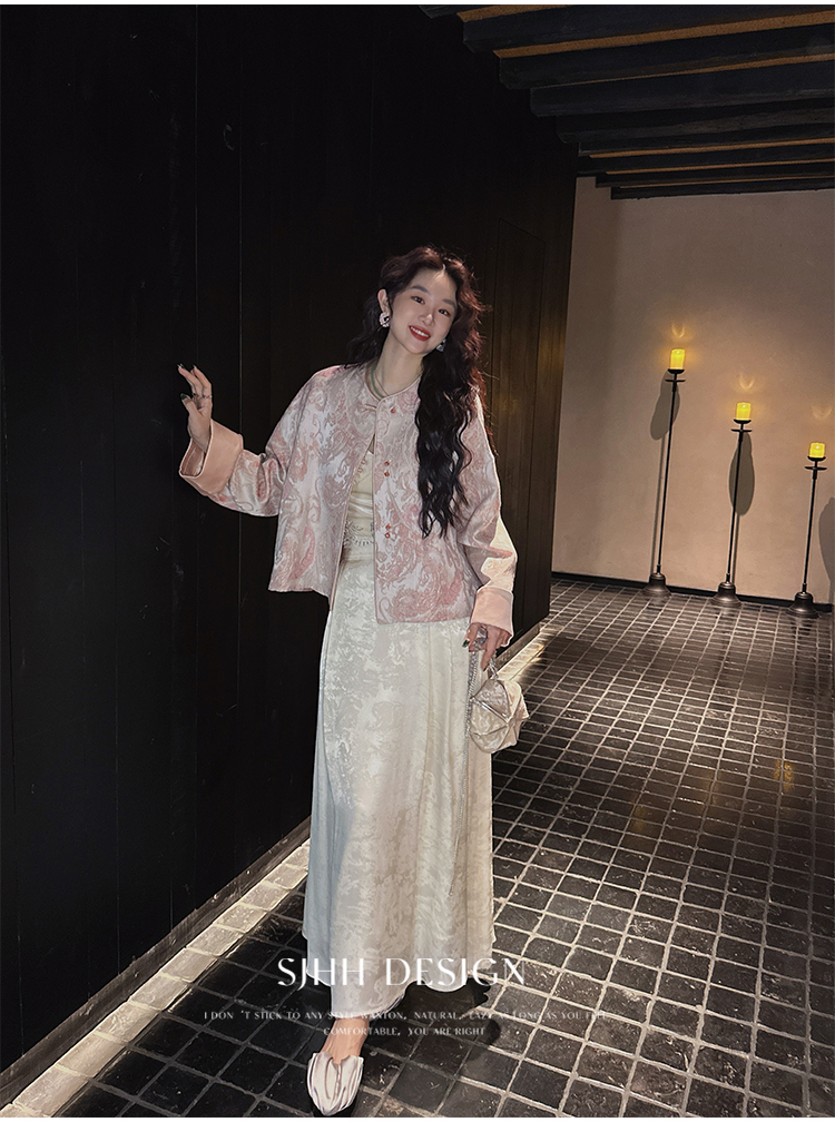 *o-ha-you*【FSJ0203】【弦月】新中式中國風高腰人絲半裙