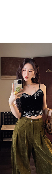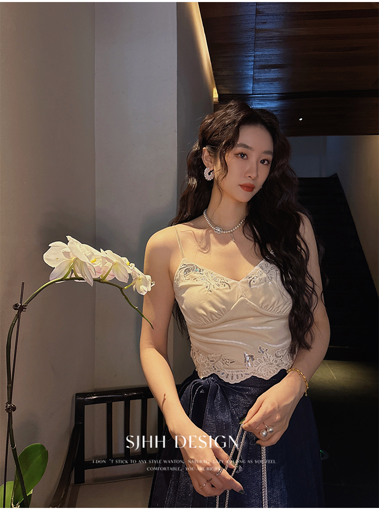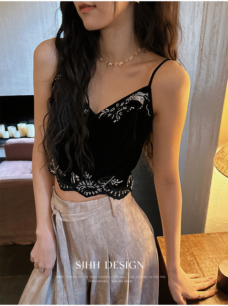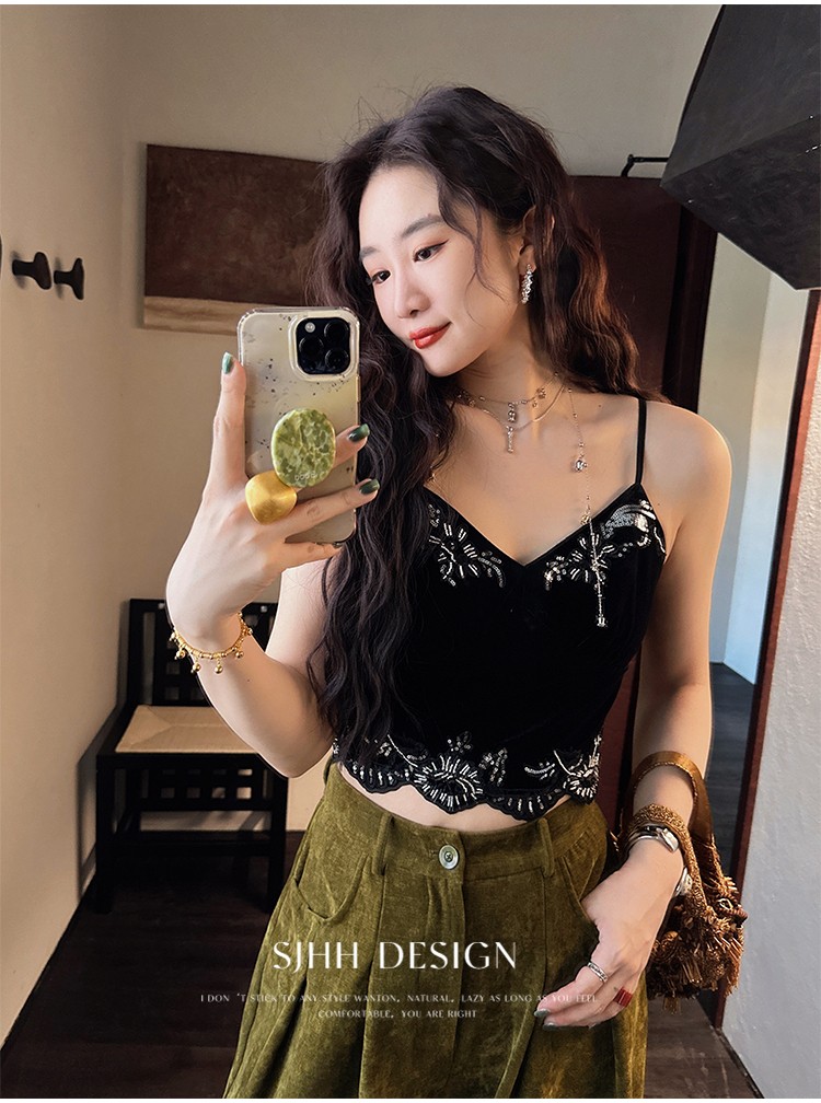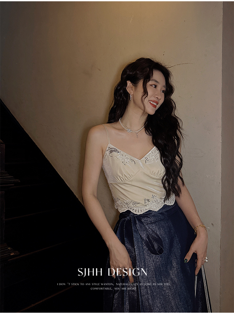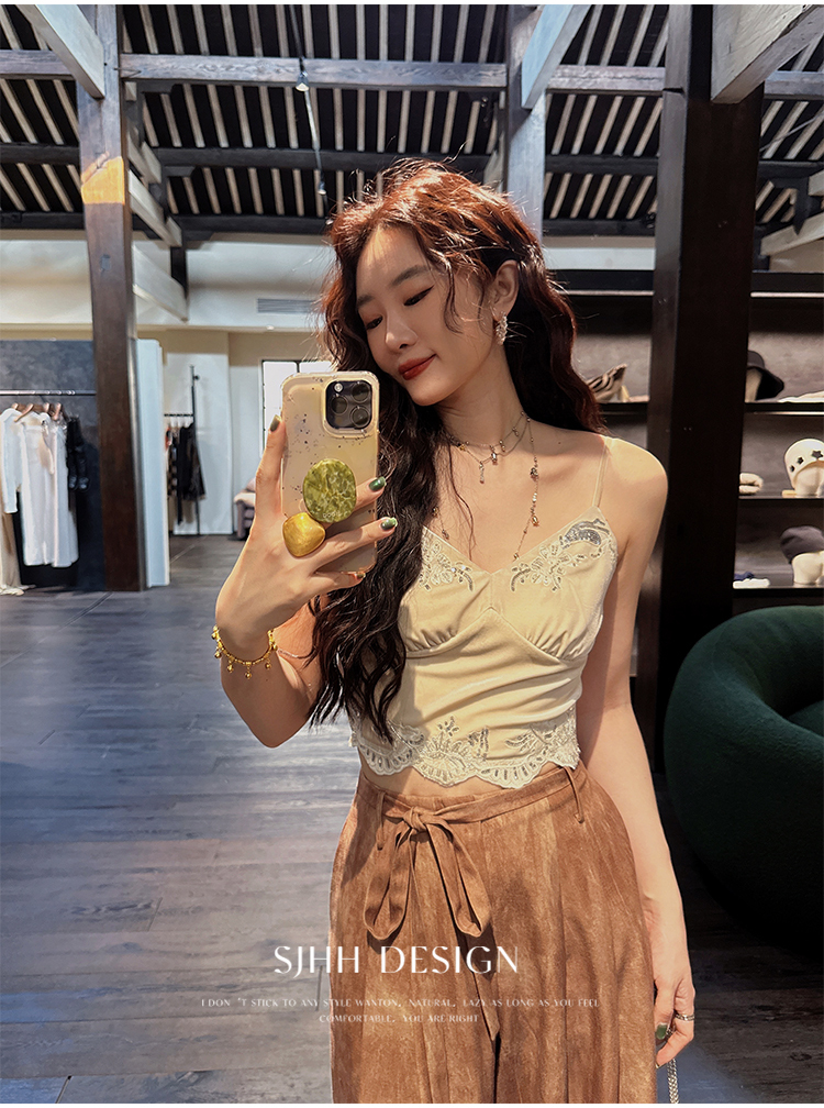 *o-ha-you*【FSJ0206】【水雲間】絲絨蕾絲吊帶背心內搭打底無袖上衣2025新款