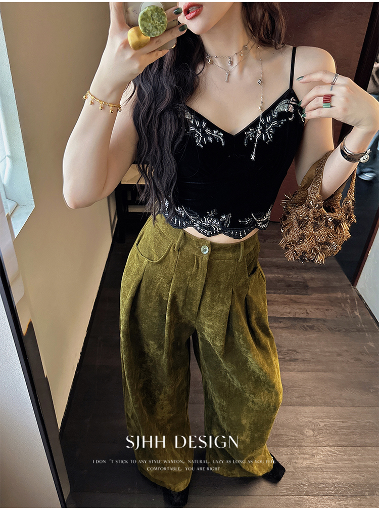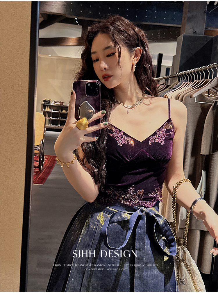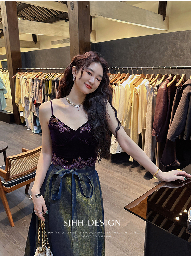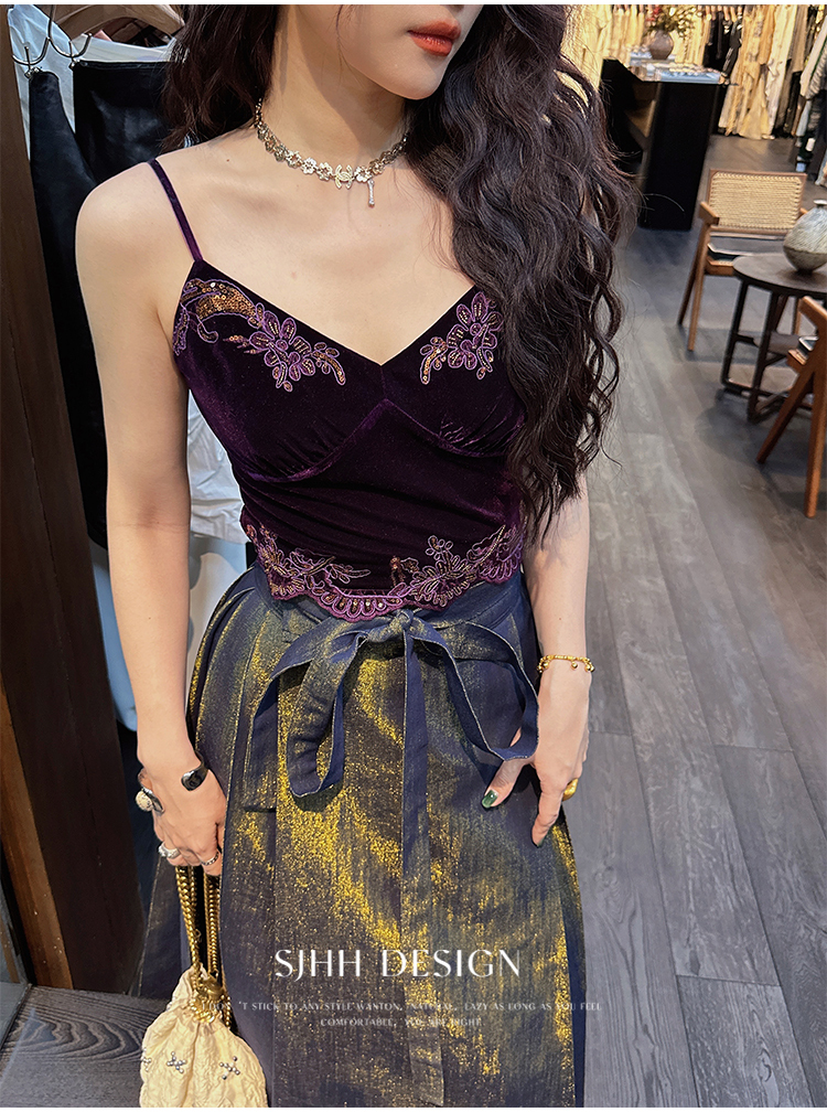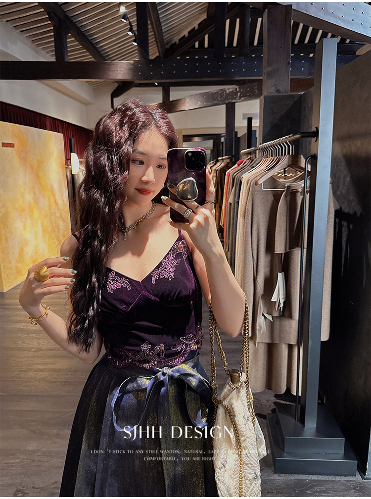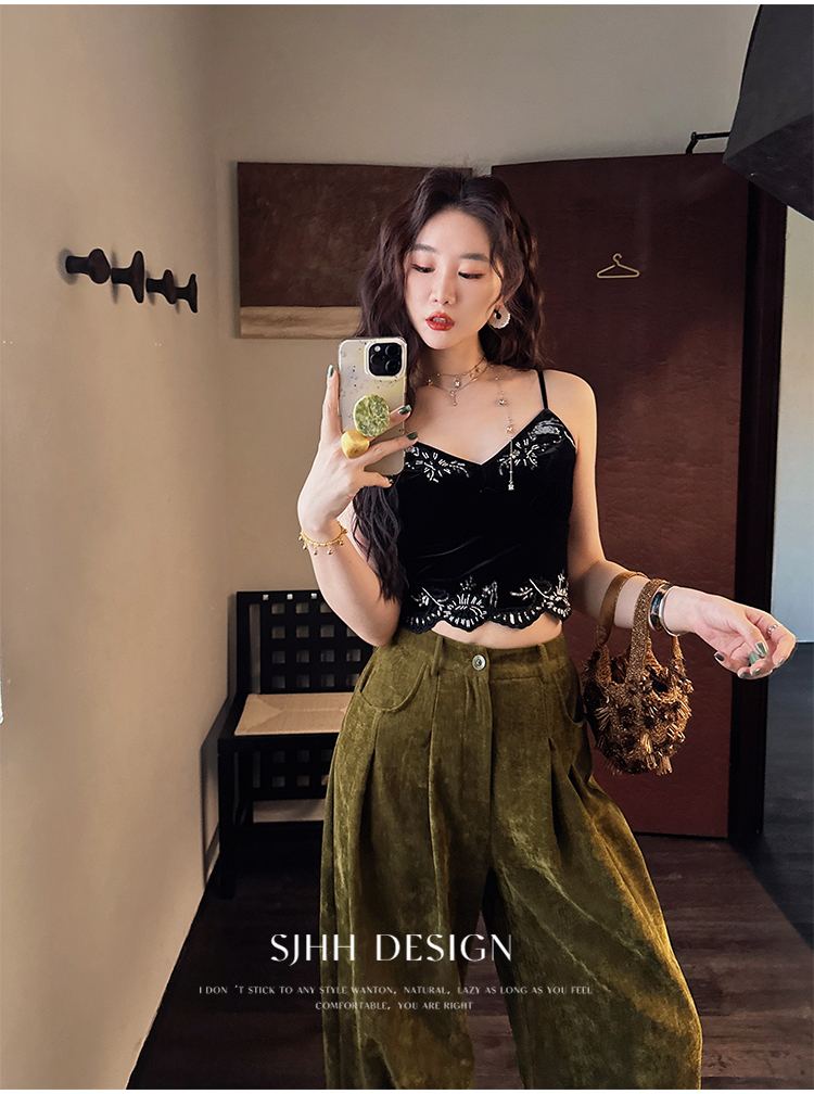 *o-ha-you*【FSJ0206】【水雲間】絲絨蕾絲吊帶背心內搭打底無袖上衣2025新款
