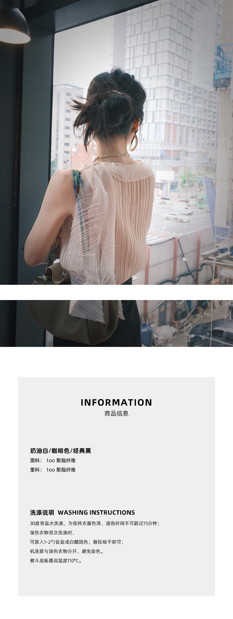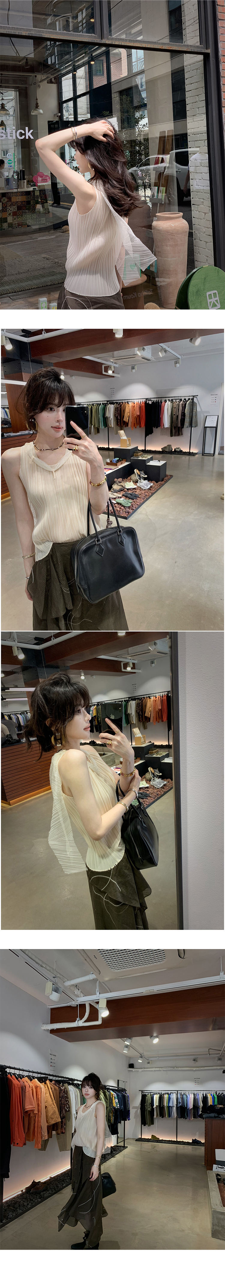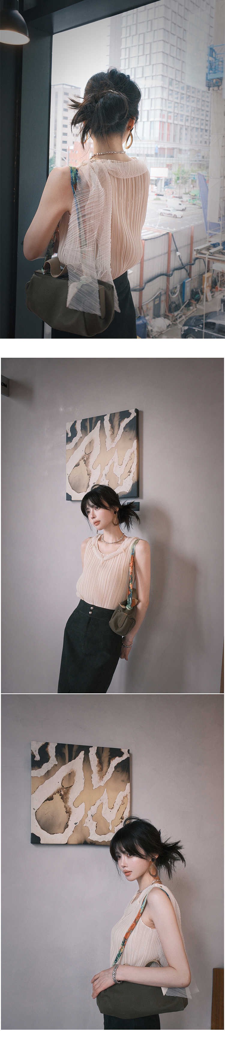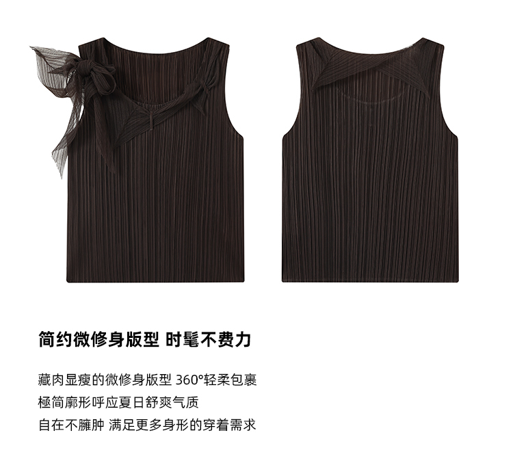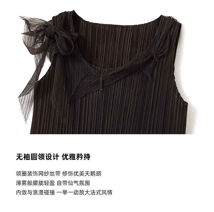 *o-ha-you*【FSM2307AXS0109】頸間浪漫 訂製紗線&進口機成衣壓褶無袖飄帶背心