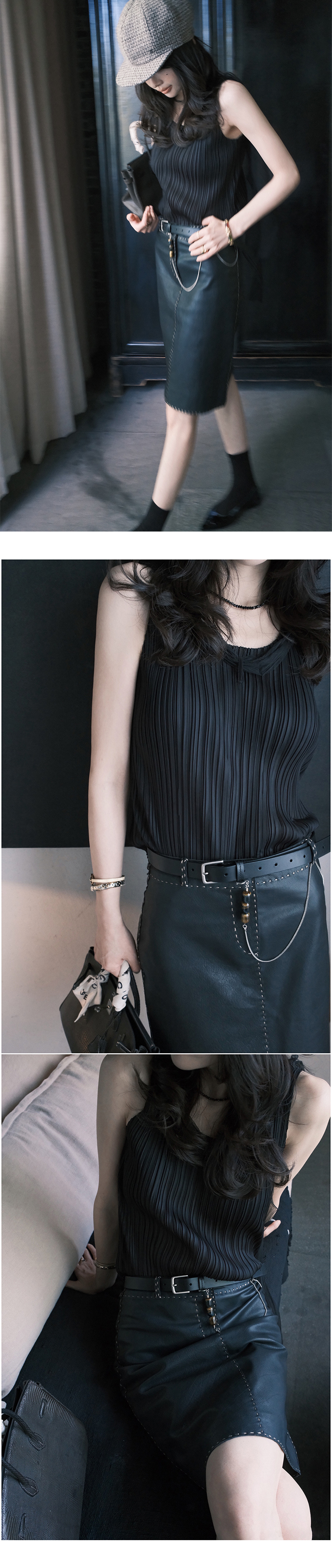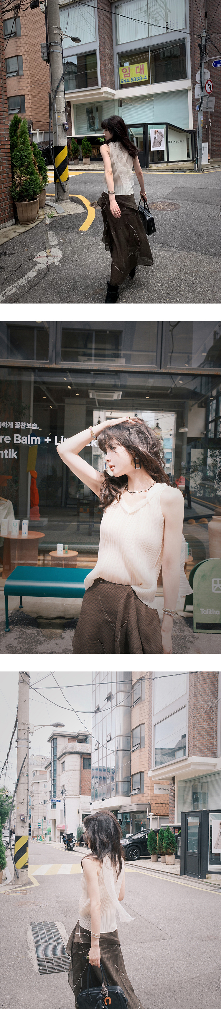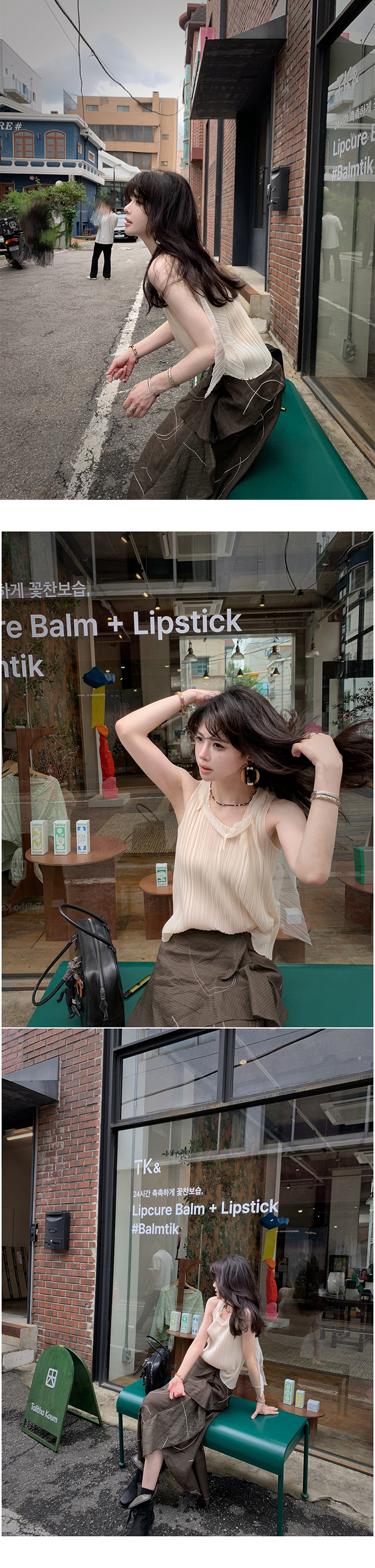 *o-ha-you*【FSM2307AXS0109】頸間浪漫 訂製紗線&進口機成衣壓褶無袖飄帶背心