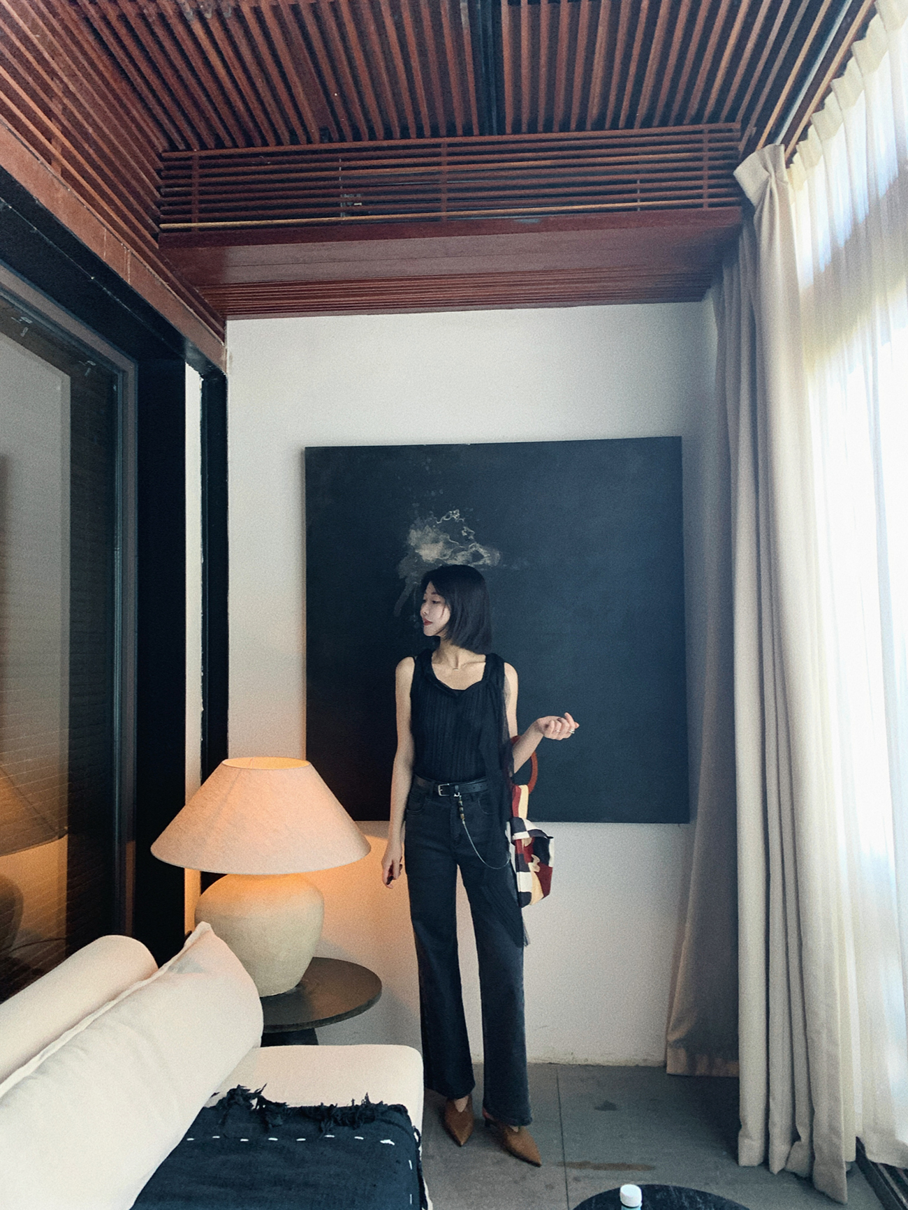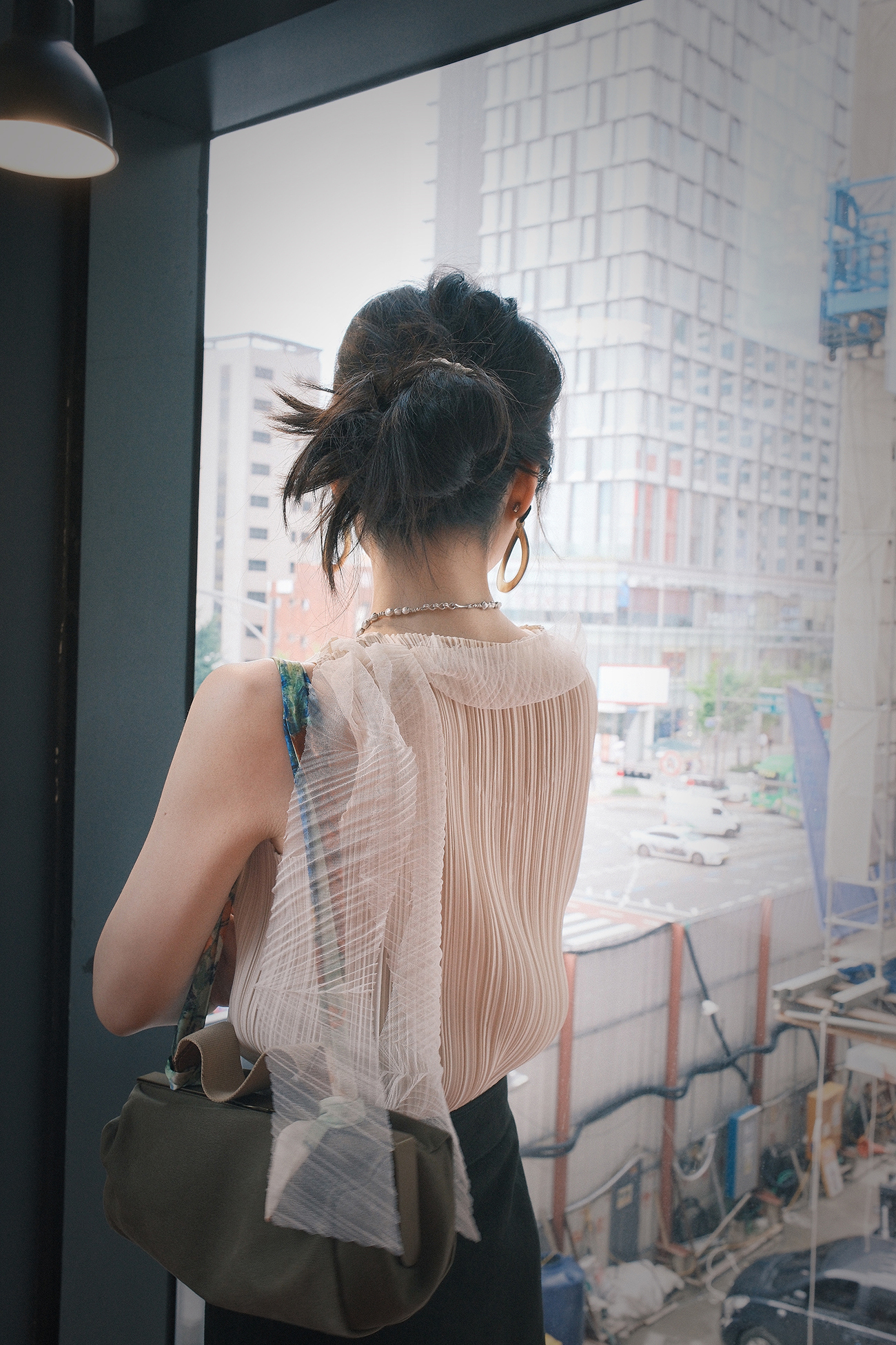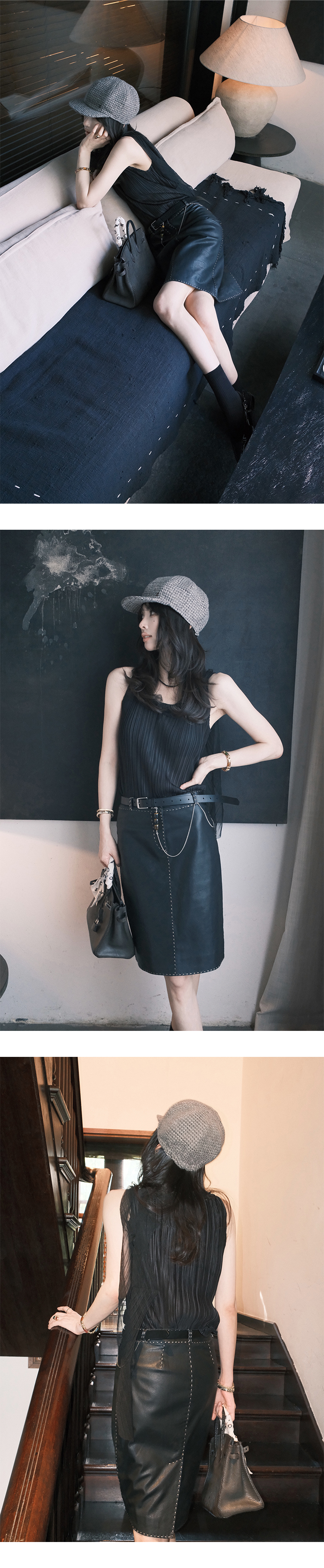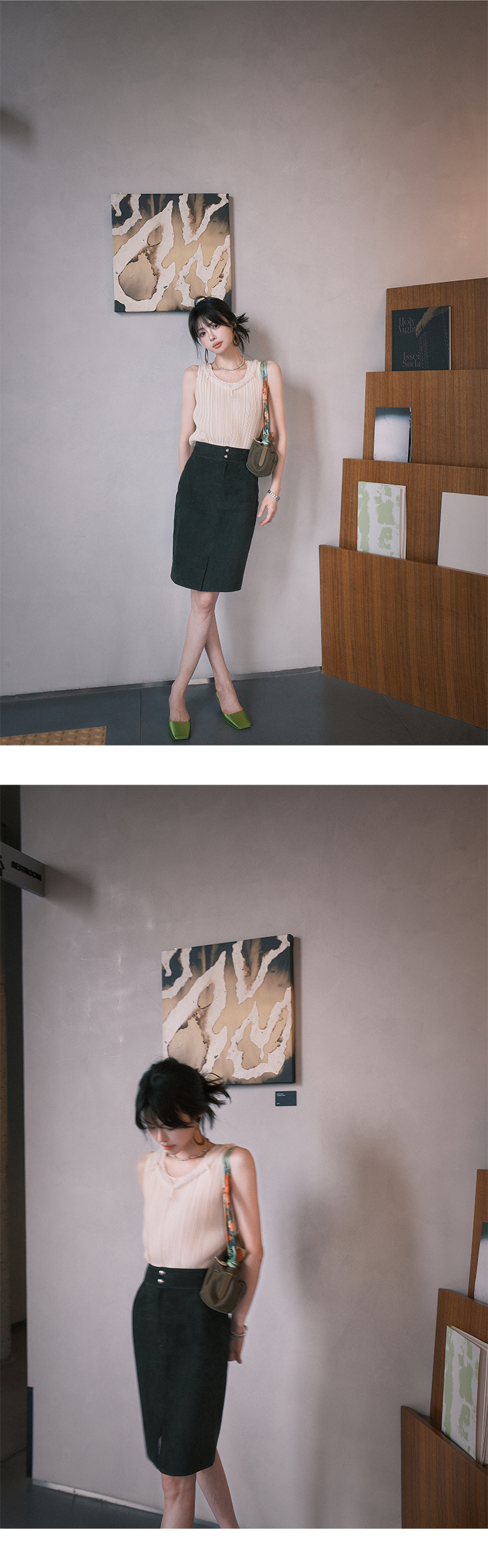 *o-ha-you*【FSM2307AXS0109】頸間浪漫 訂製紗線&進口機成衣壓褶無袖飄帶背心