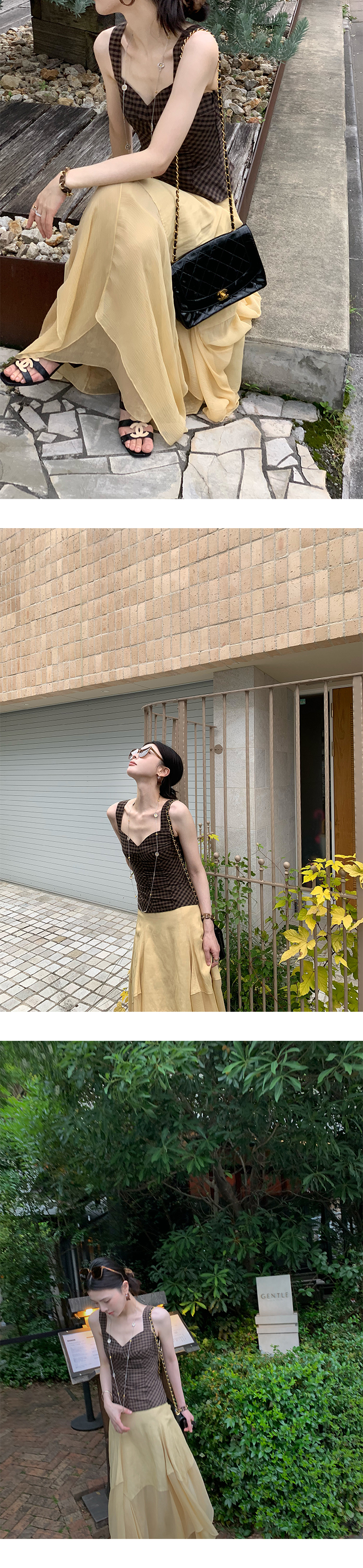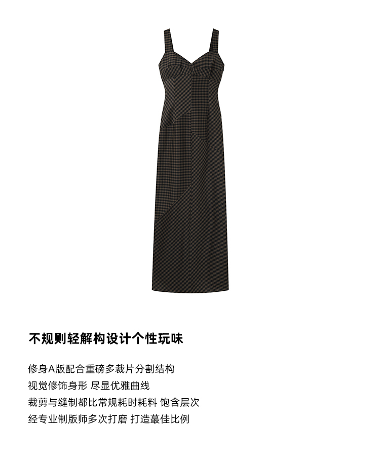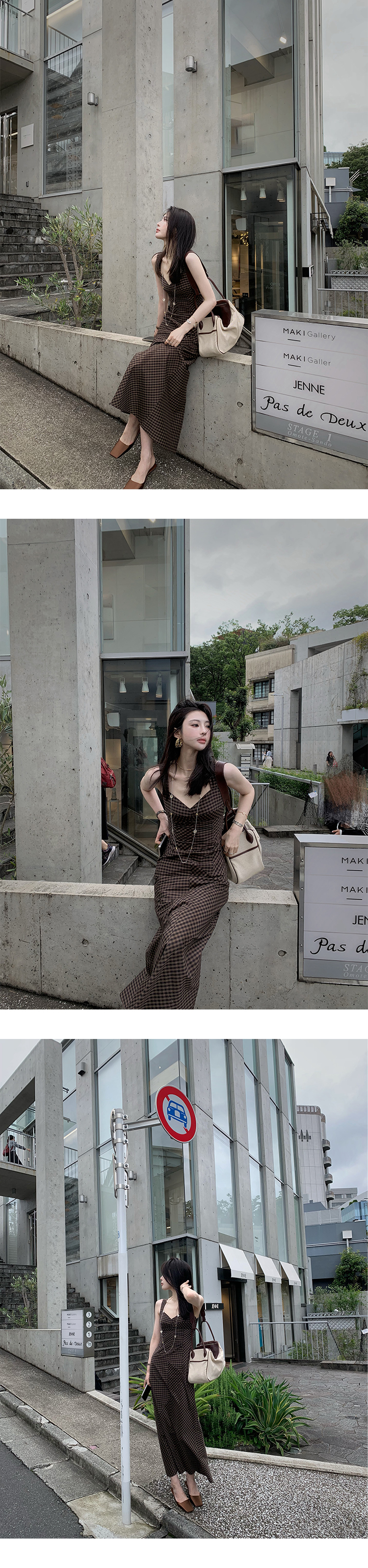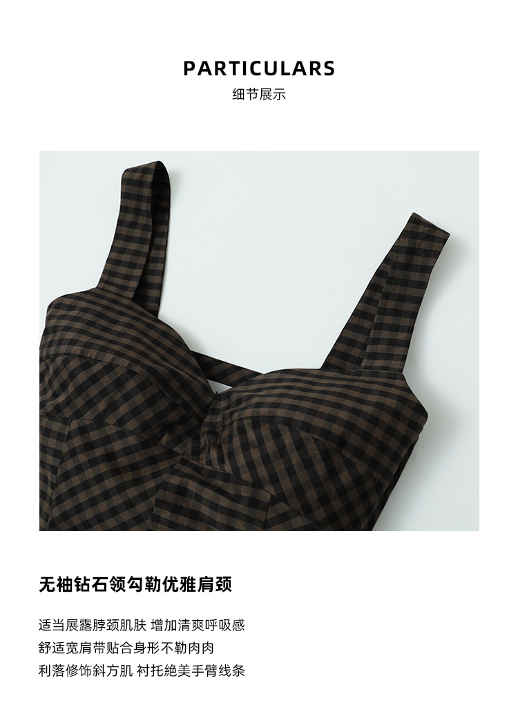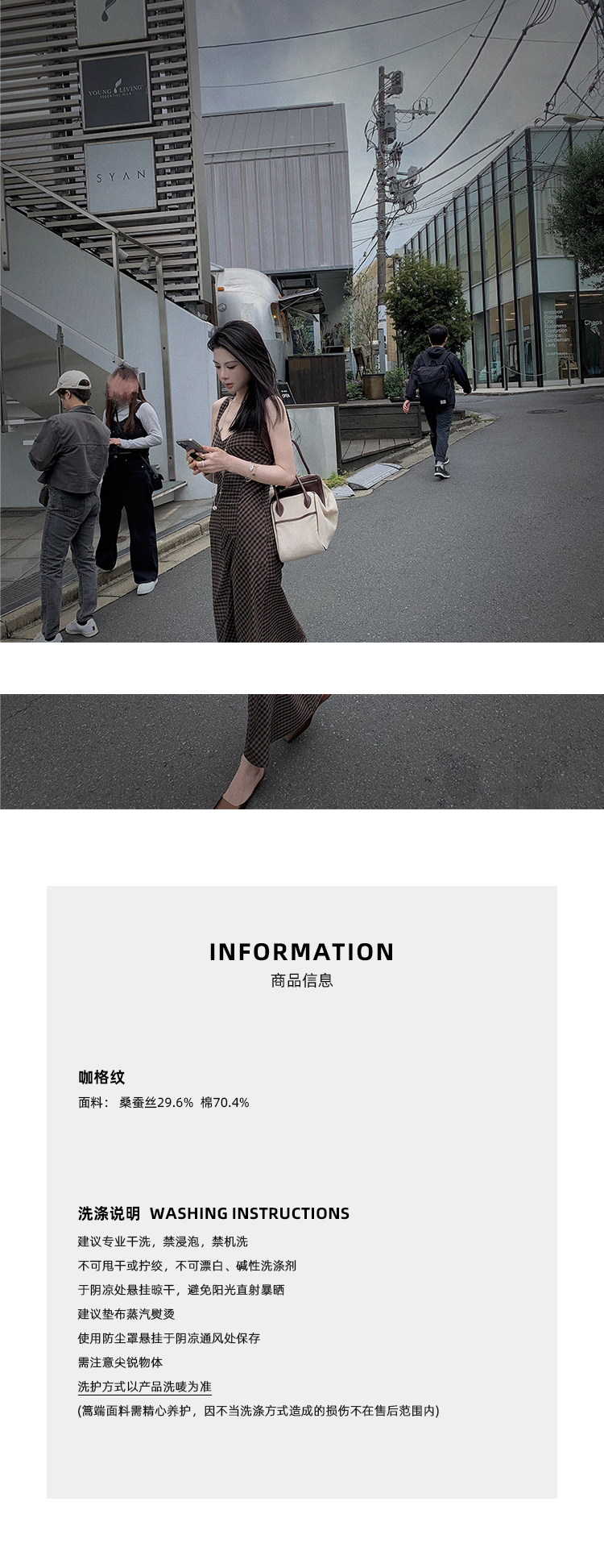 *o-ha-you*【FSM2308ALY1800】復古時髦感16MM真絲混紡收腰長款格紋吊帶裙洋裝+紙片人感吊帶背心
