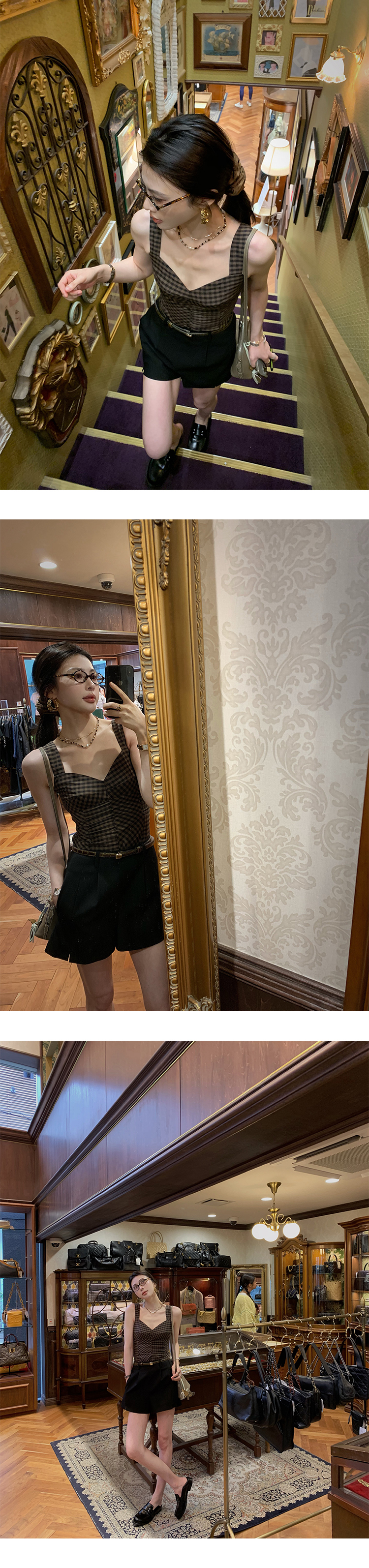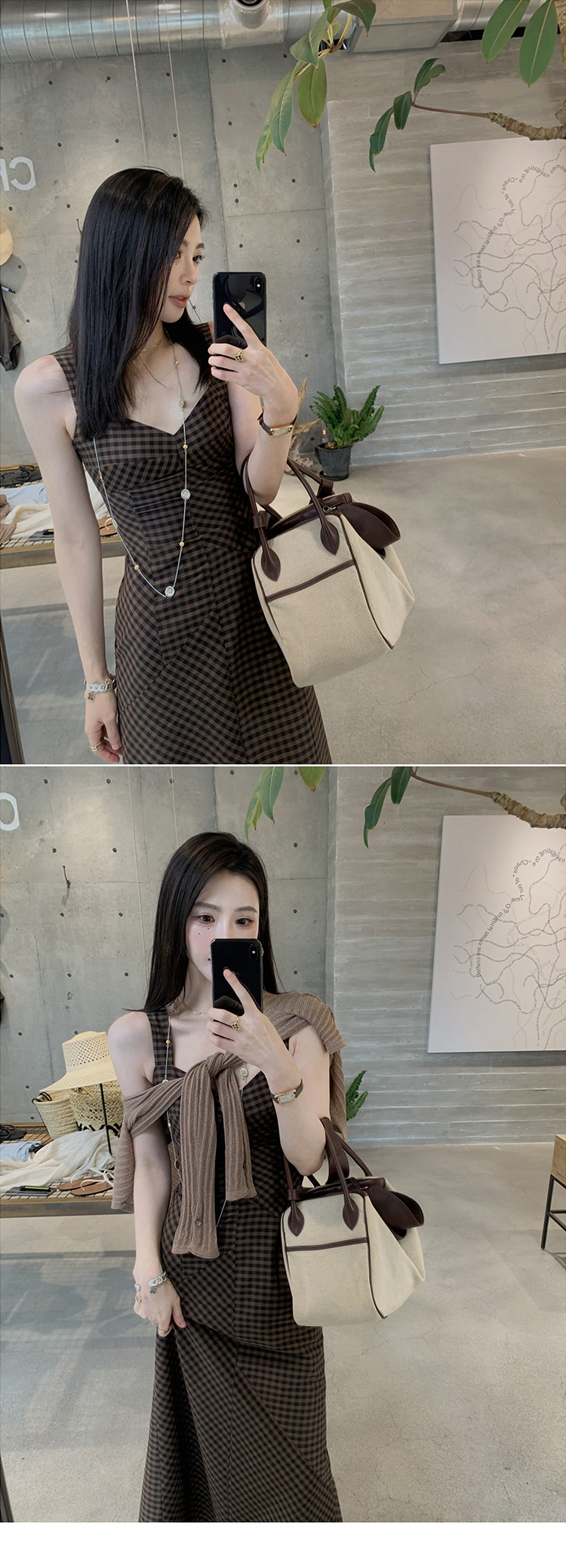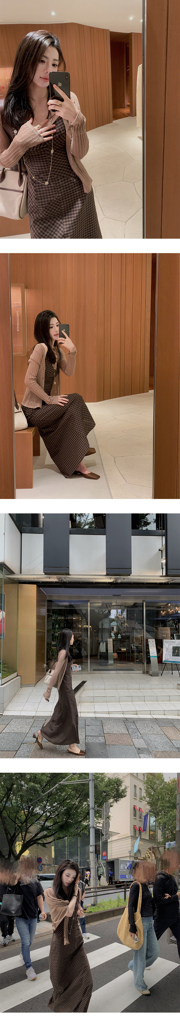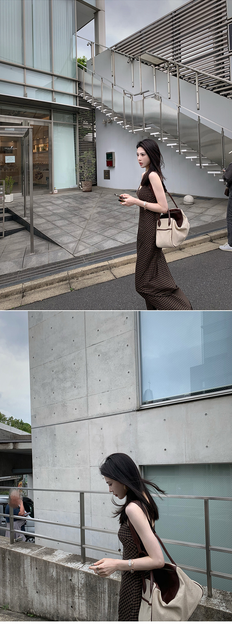 *o-ha-you*【FSM2308ALY1800】復古時髦感16MM真絲混紡收腰長款格紋吊帶裙洋裝+紙片人感吊帶背心