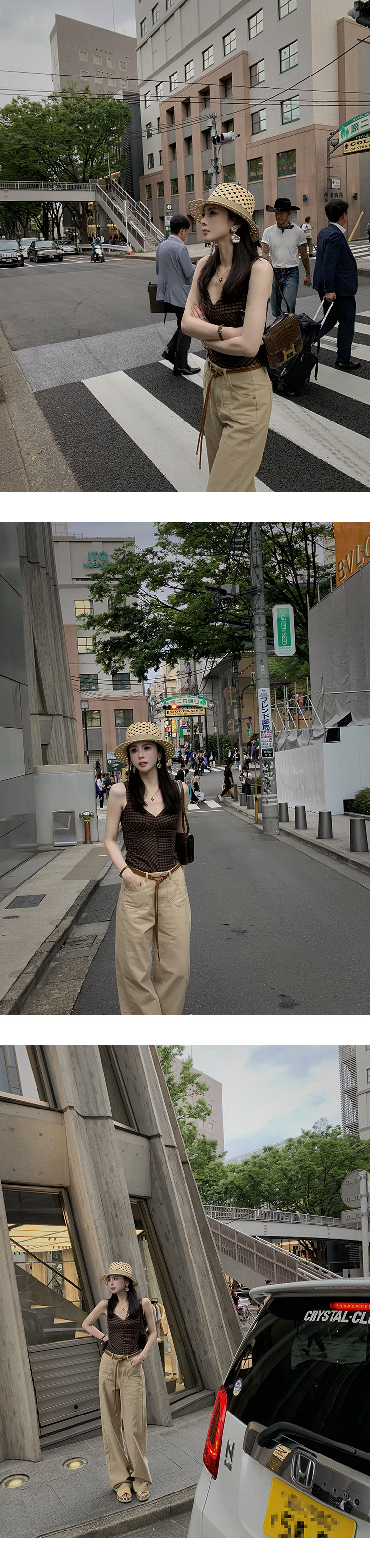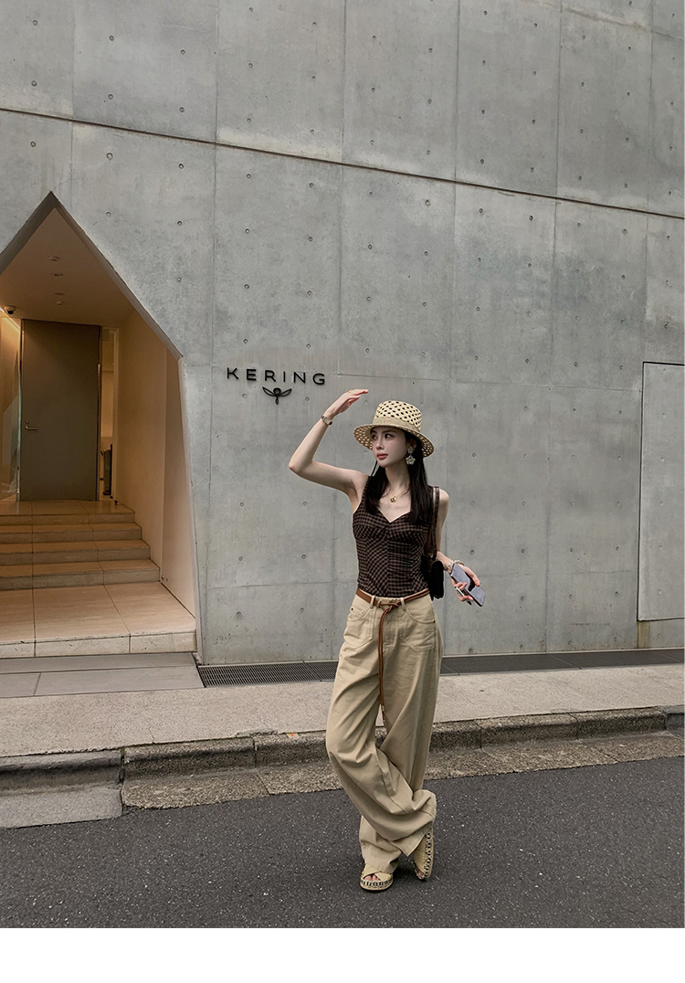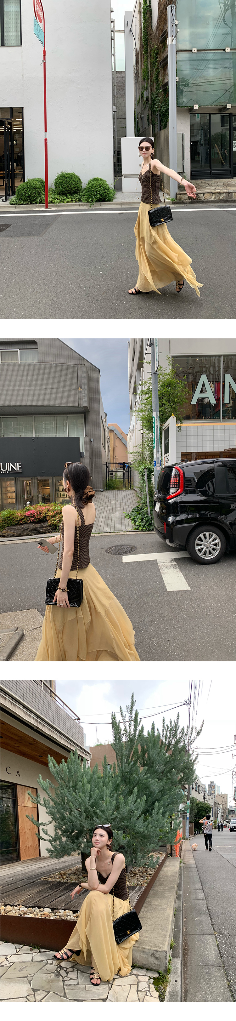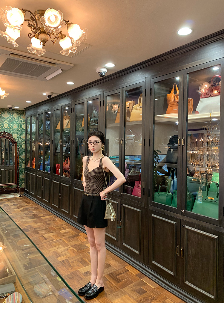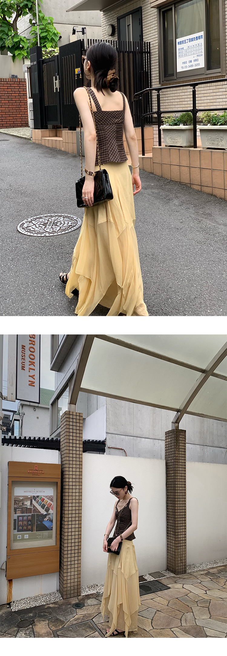 *o-ha-you*【FSM2308ALY1800】復古時髦感16MM真絲混紡收腰長款格紋吊帶裙洋裝+紙片人感吊帶背心