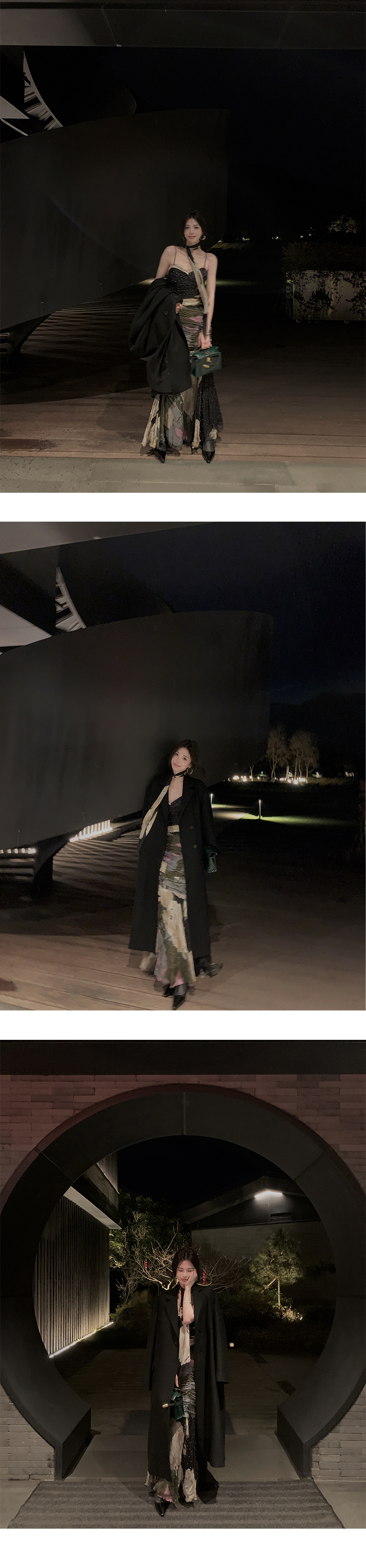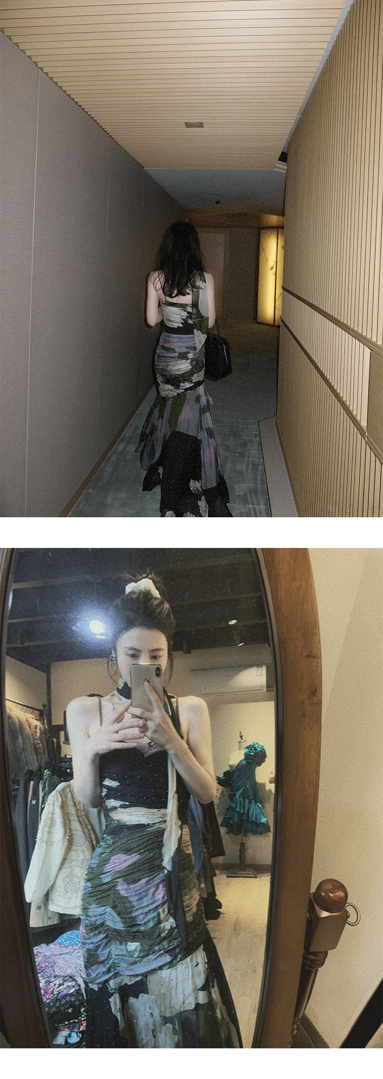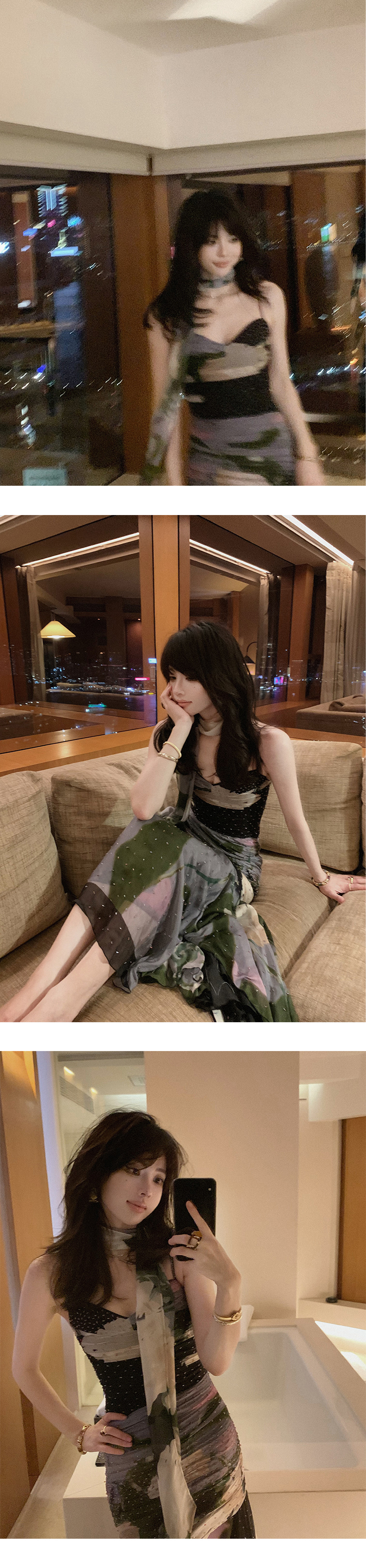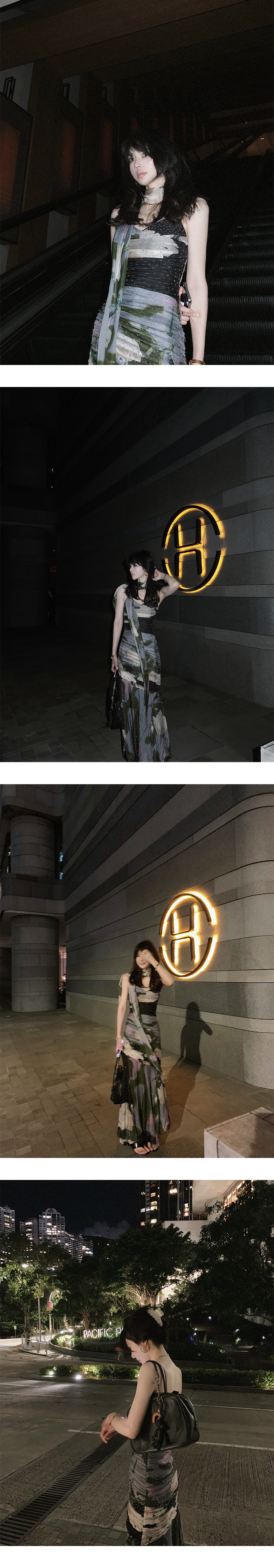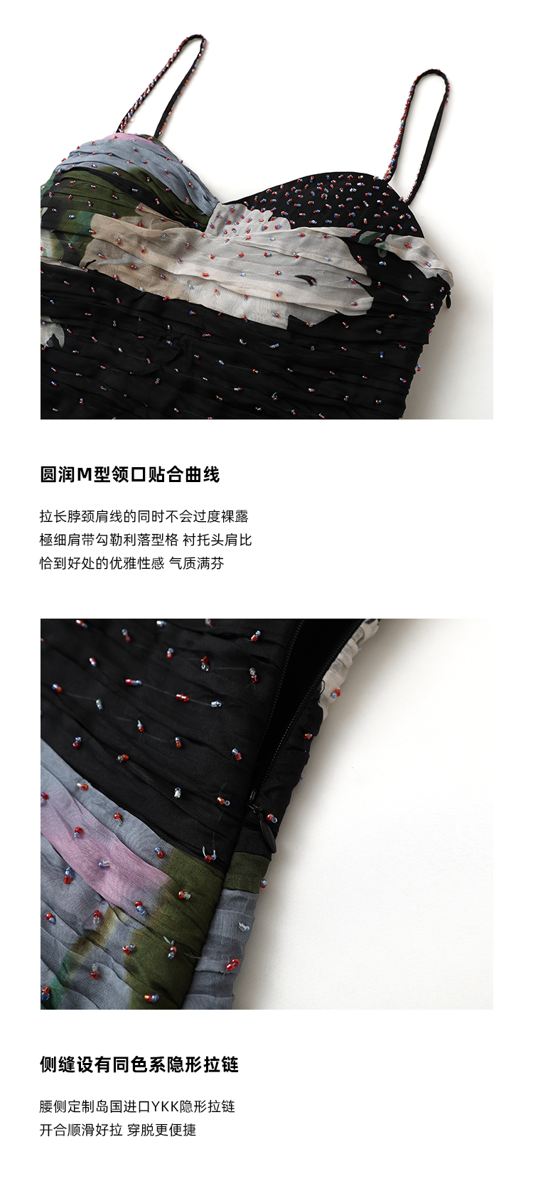 *o-ha-you*【FSM241ALY0704】重磅全客製化壓褶&手縫釘珠&6MM真絲印花吊帶裙洋裝輕禮服