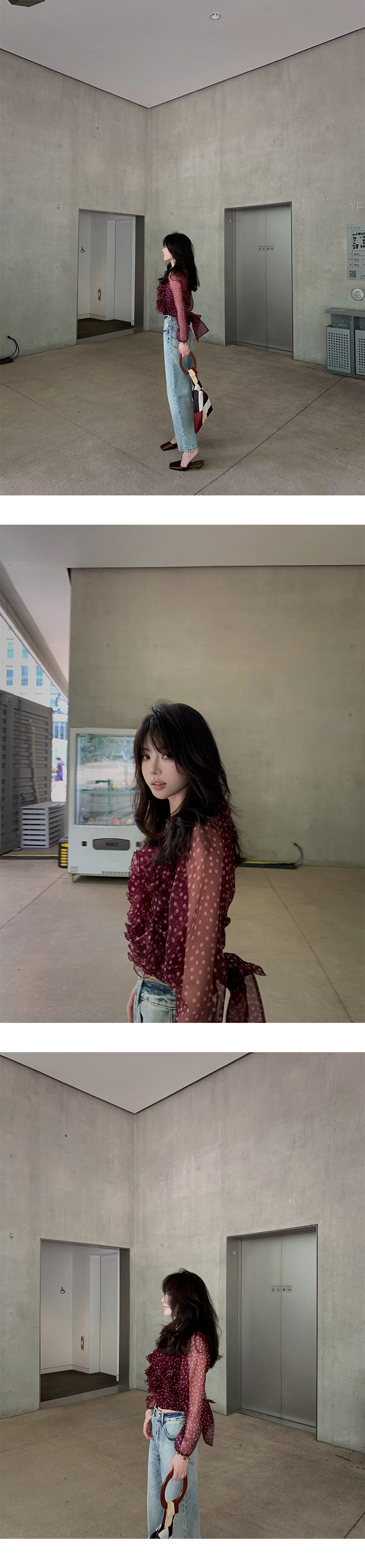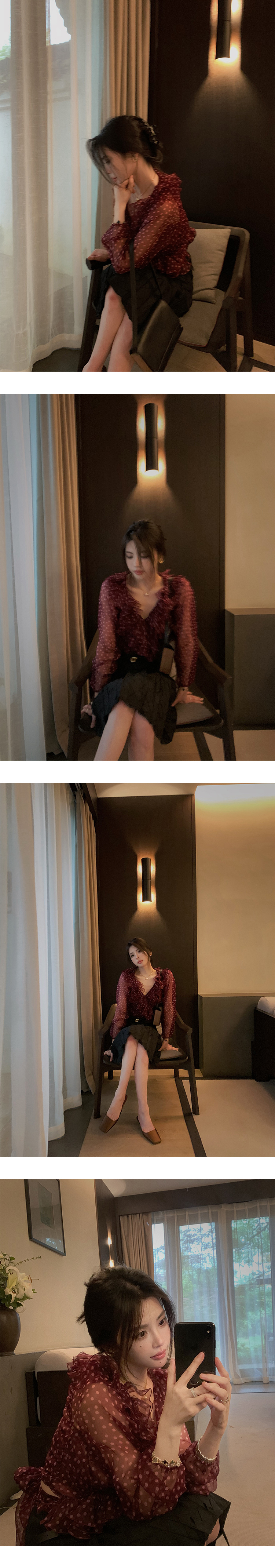 *o-ha-you*【FSM243ACS0109】摩登女郎6MM真絲歐根紗&活性直噴波點微透上衣
