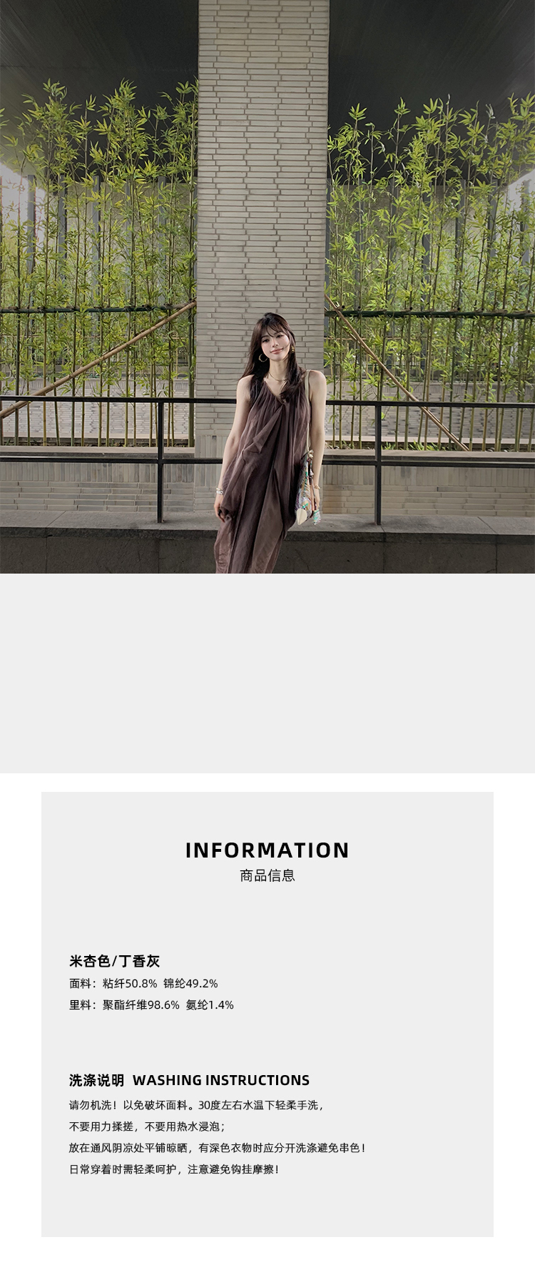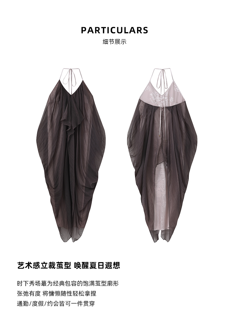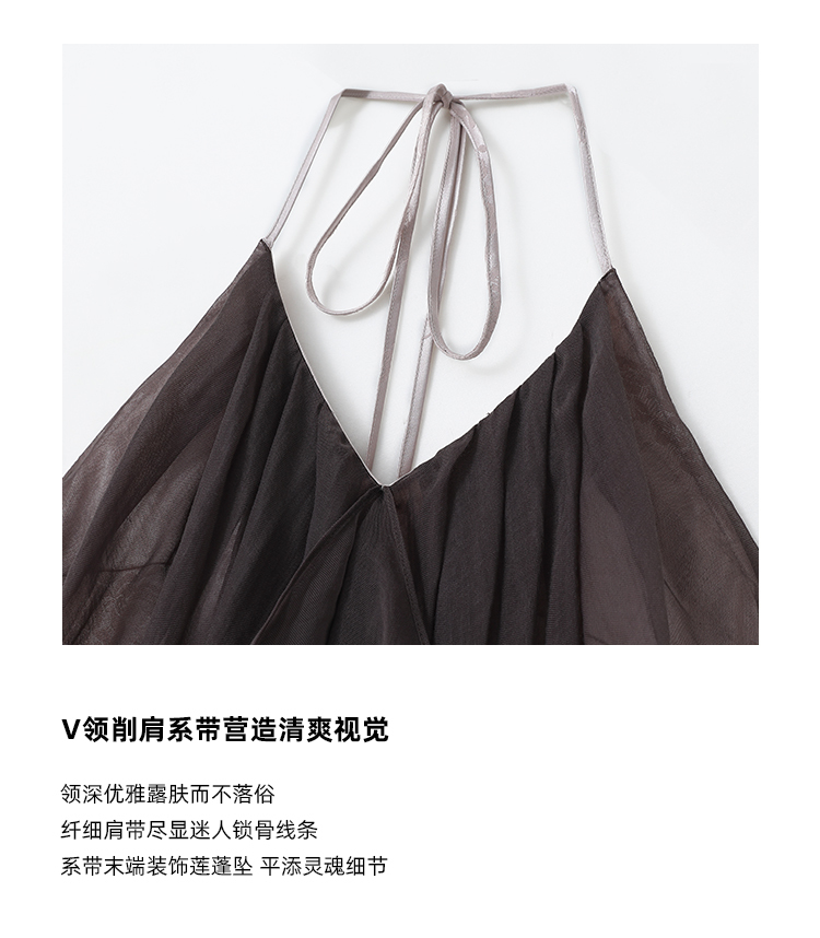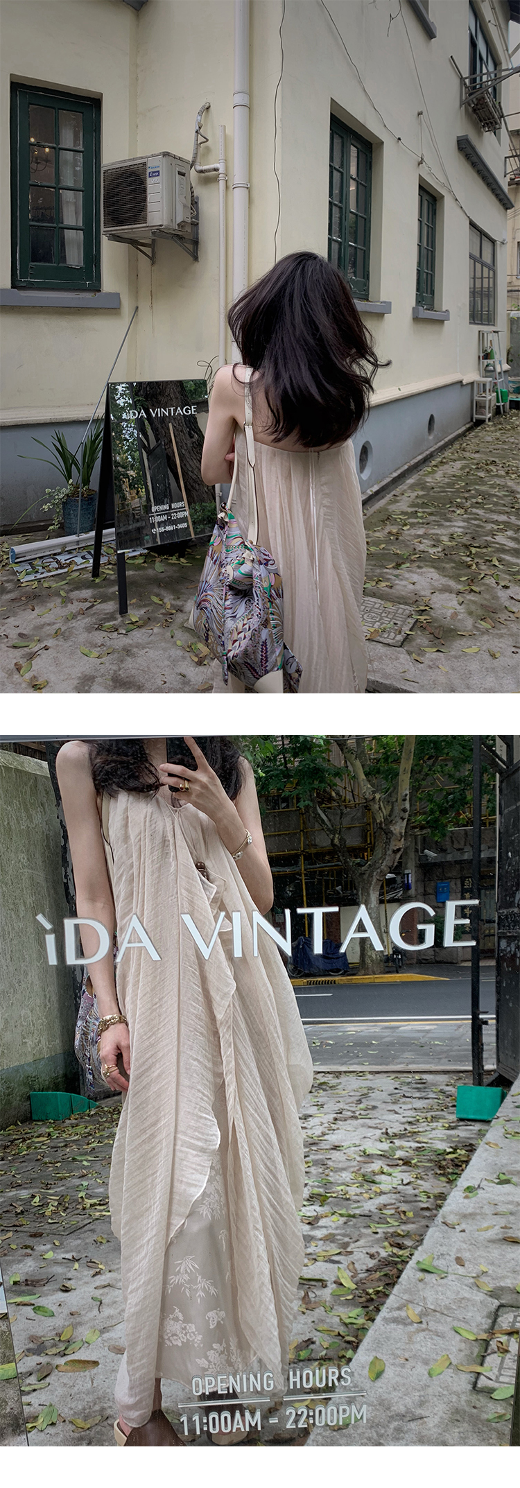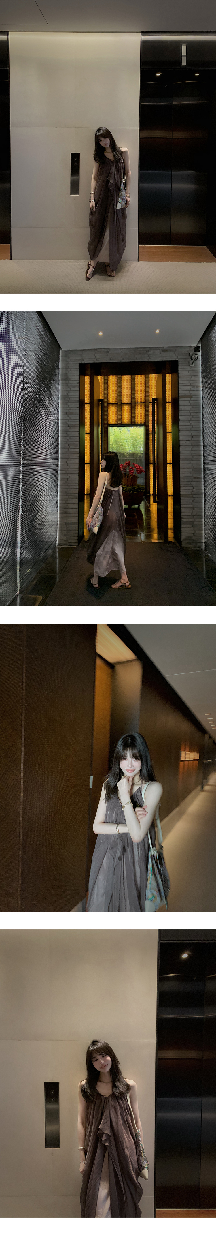 *o-ha-you*【FSM246ADD0203】設計感不規則削肩掛脖繫帶連衣裙法式氣質別緻款長裙洋裝-2色