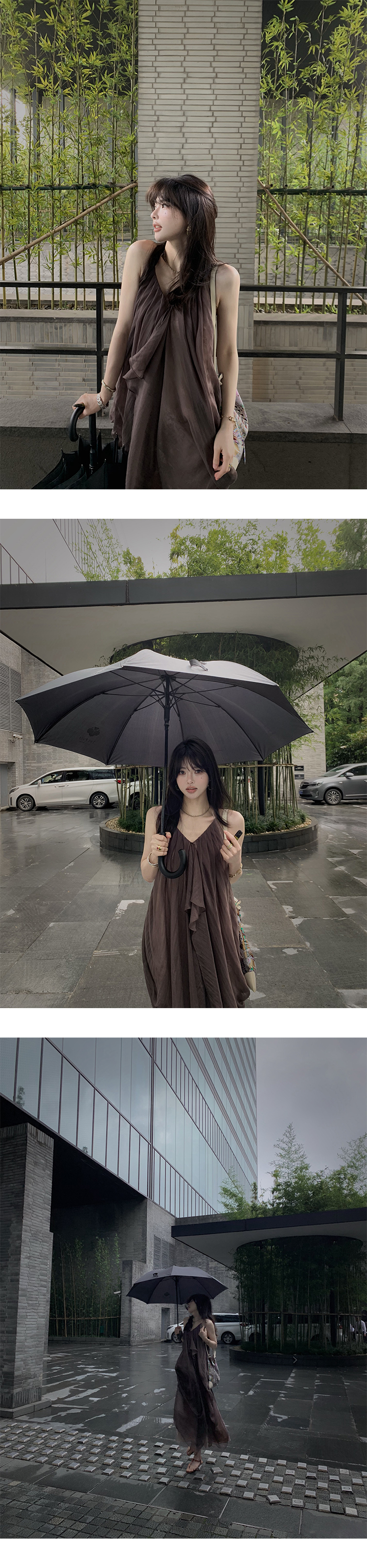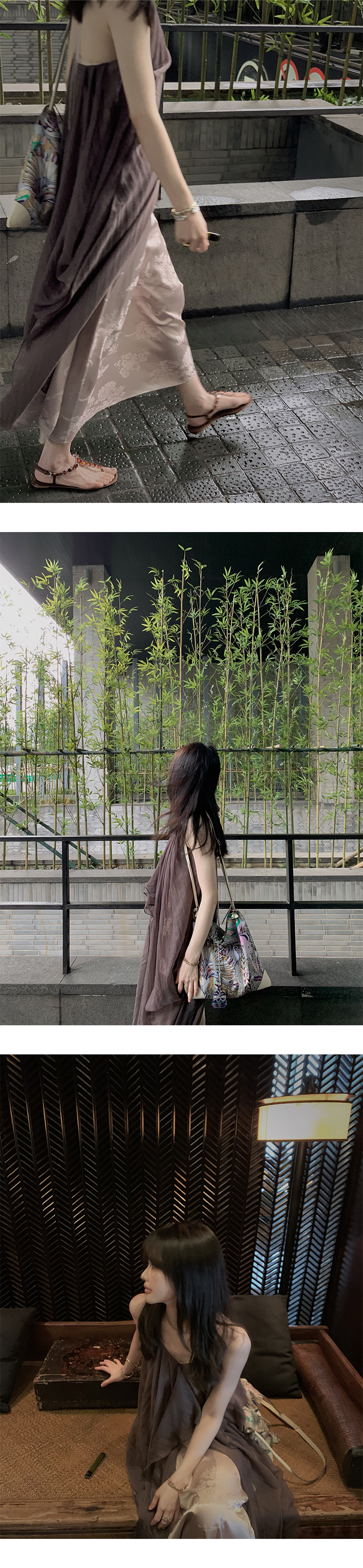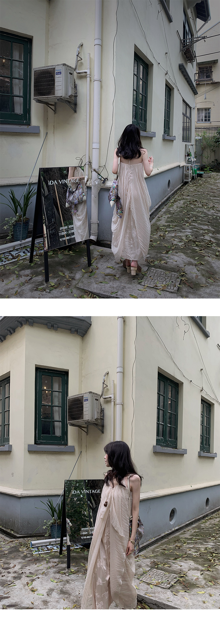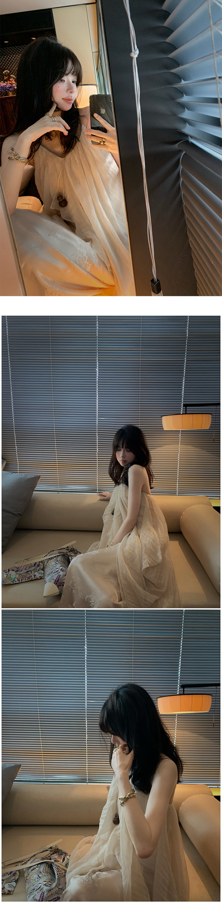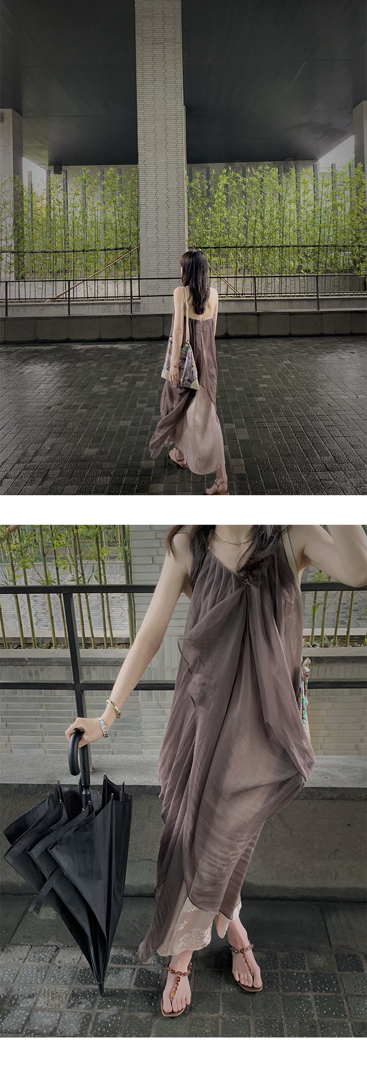 *o-ha-you*【FSM246ADD0203】設計感不規則削肩掛脖繫帶連衣裙法式氣質別緻款長裙洋裝-2色