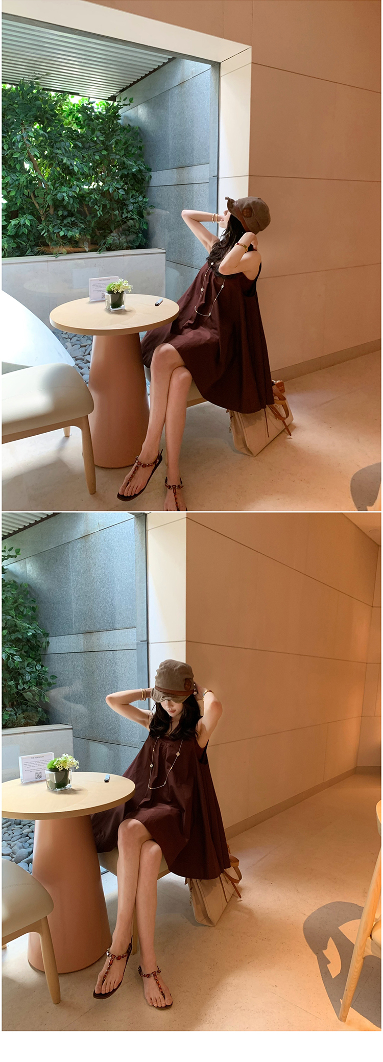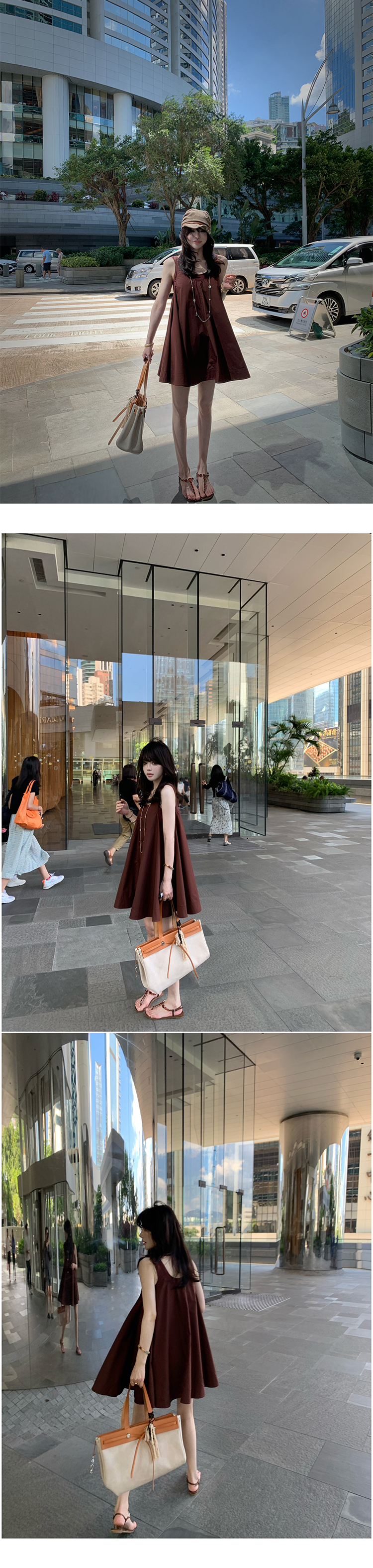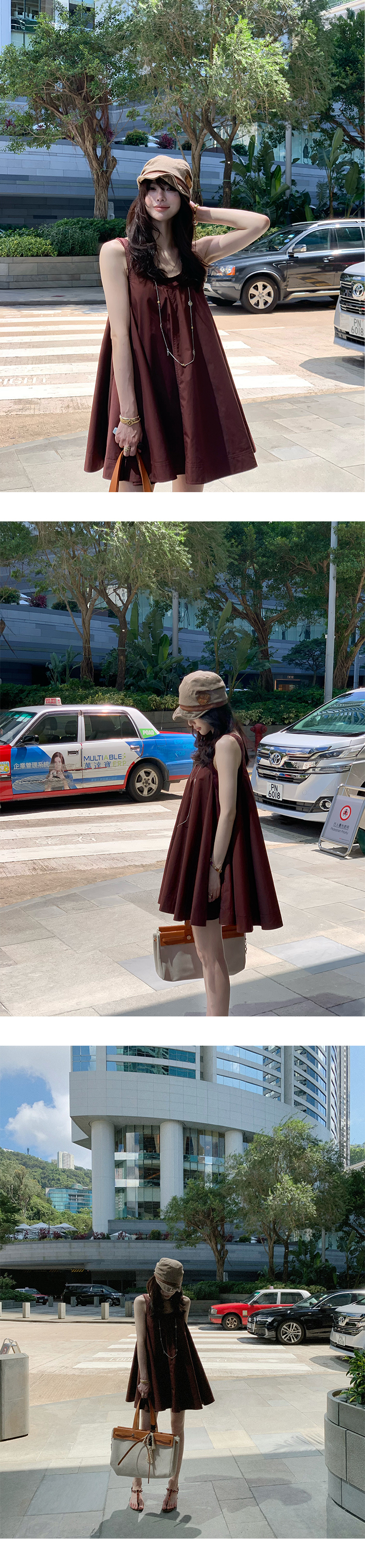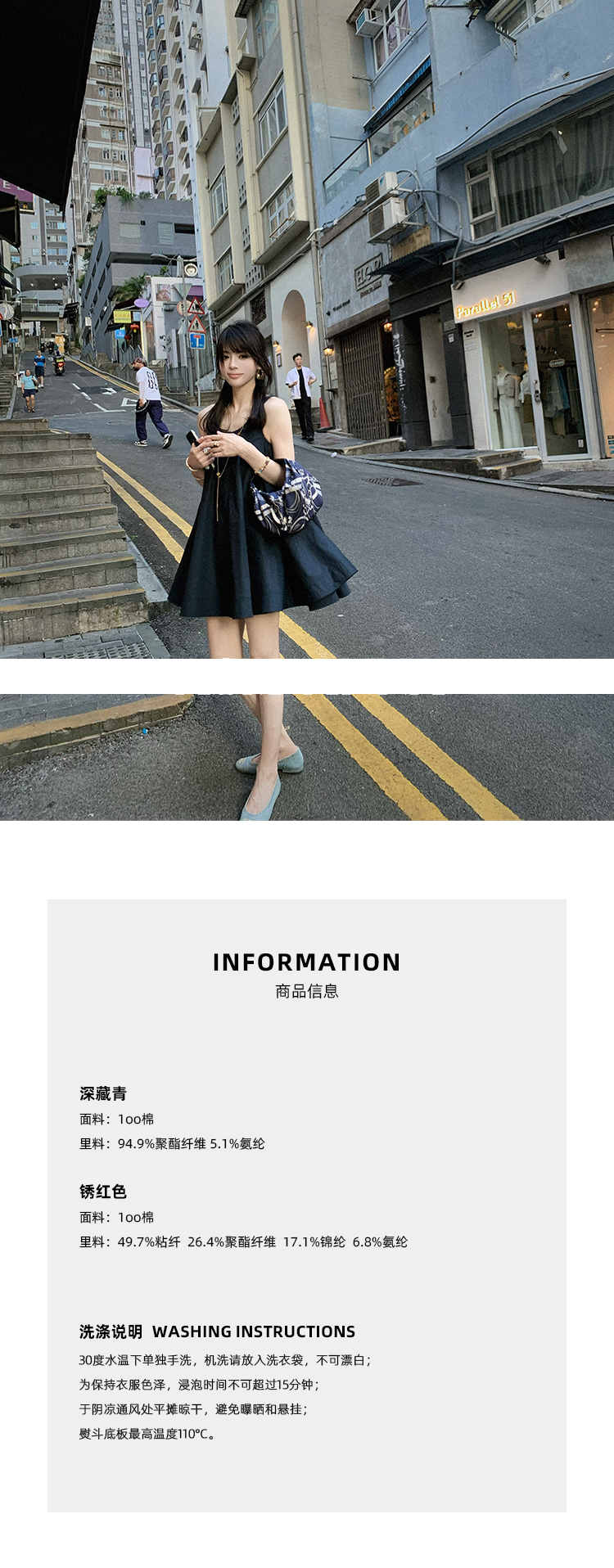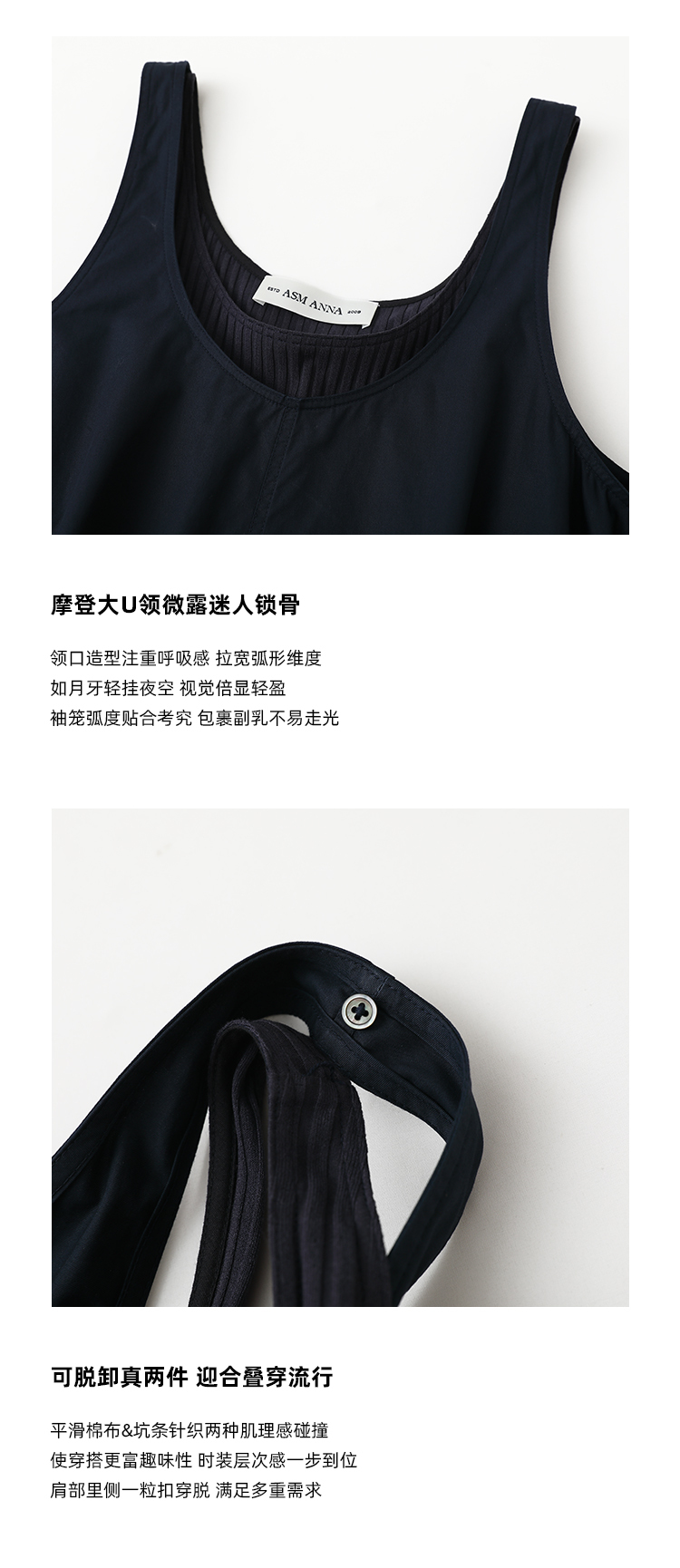 *o-ha-you*【FSM246BBX0106】小眾設計感高密全棉&彈性針織連衣裙疊穿真兩件A字背心裙洋裝