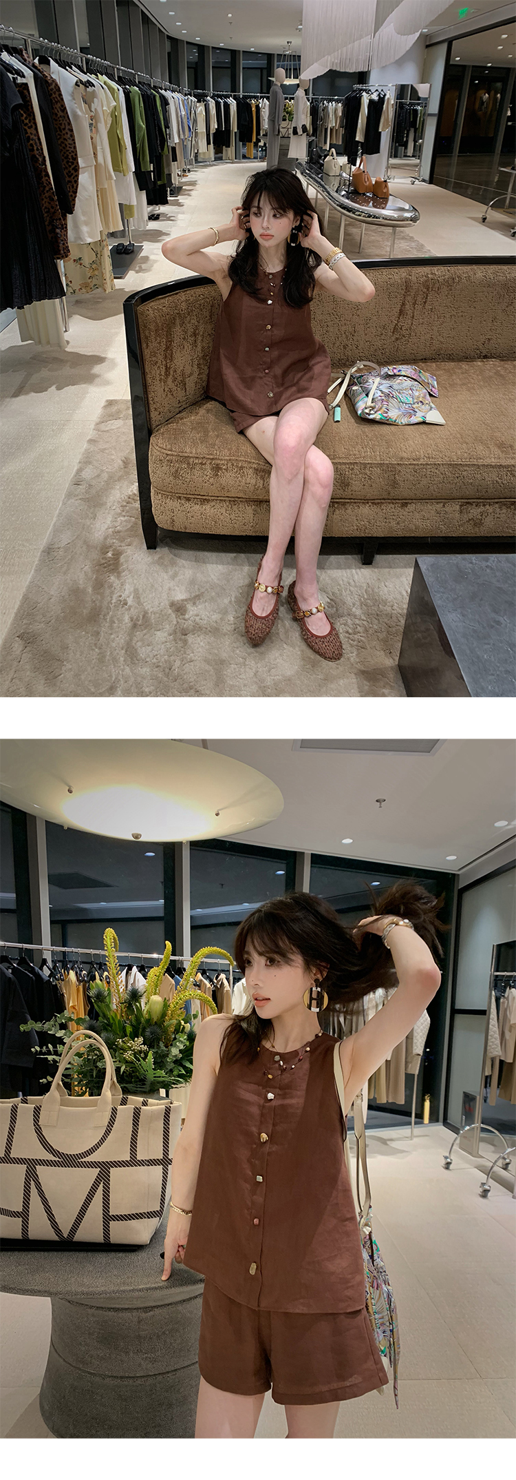 *o-ha-you*【FSM246BTZ0507】老錢風極簡100亞麻設計感幹練氣質女裝套裝又A又颯