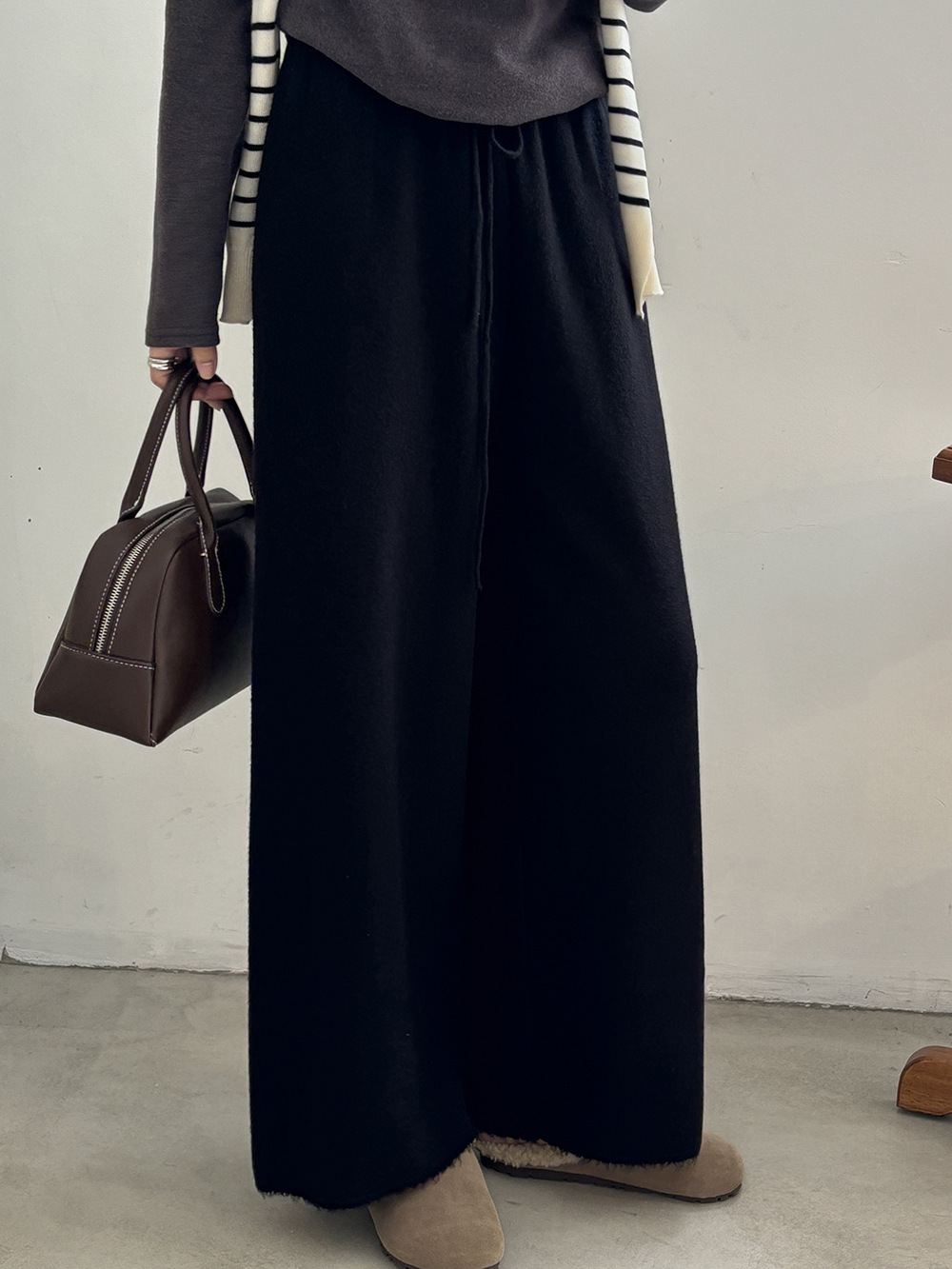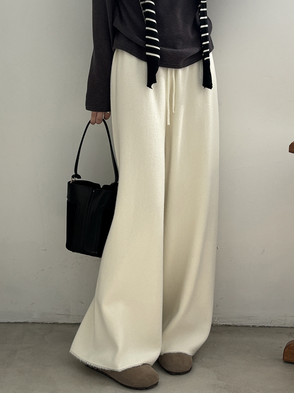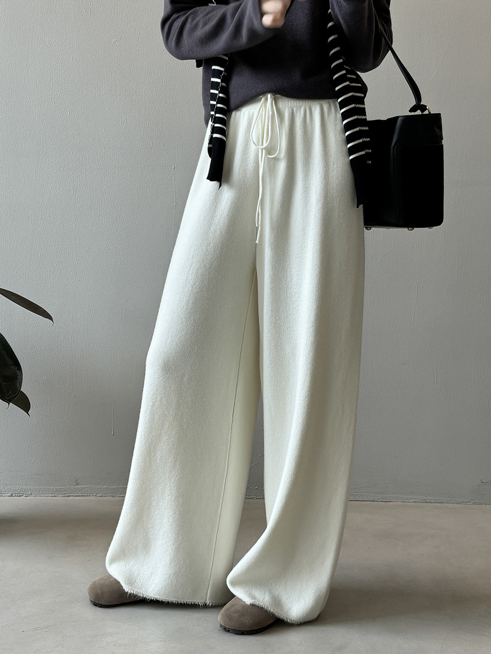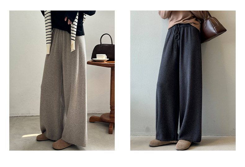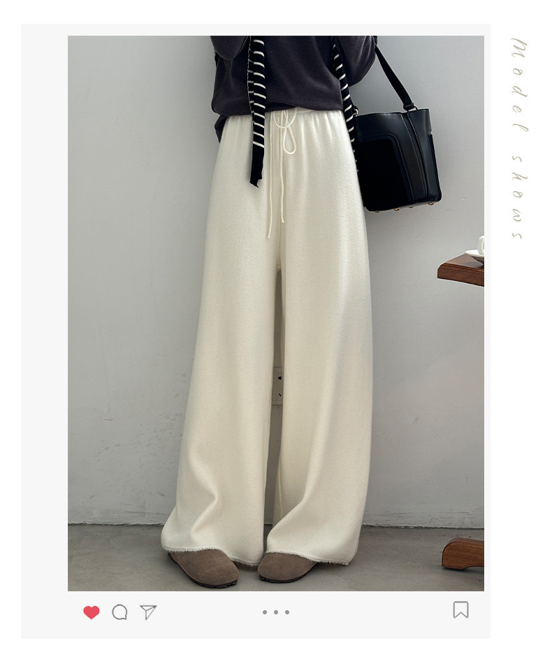 *o-ha-you*【FYS208056】慵懶風針織軟糯闊腿褲2024秋季高腰寬鬆毛線拖地褲-5色-如有需要請先諮詢