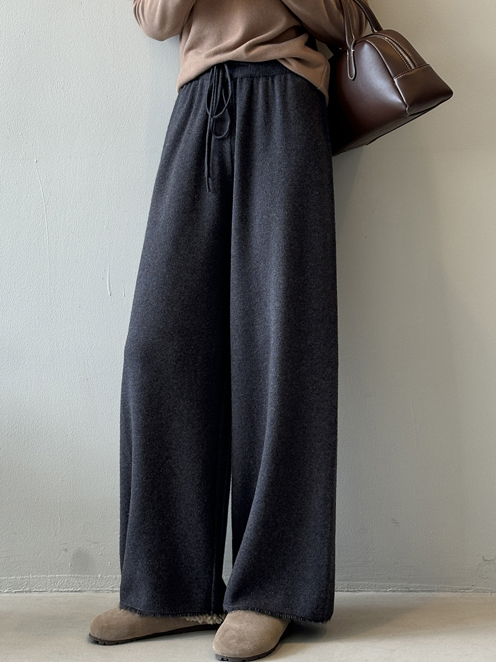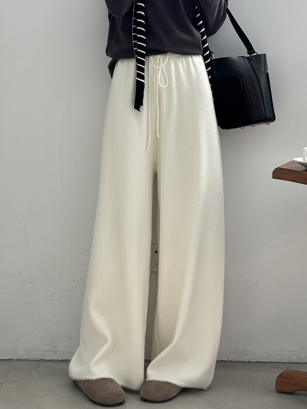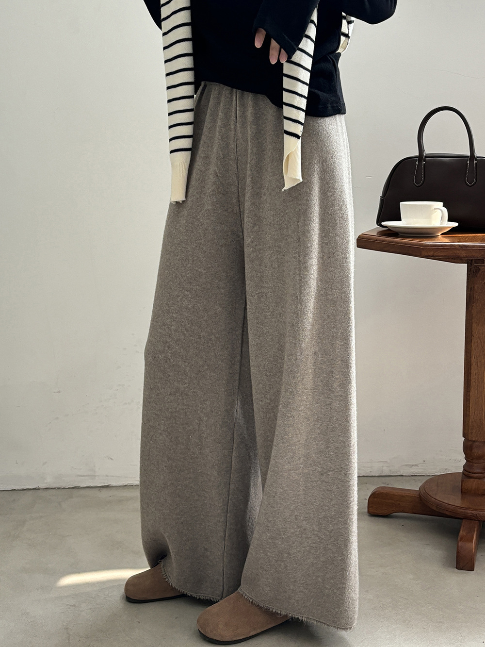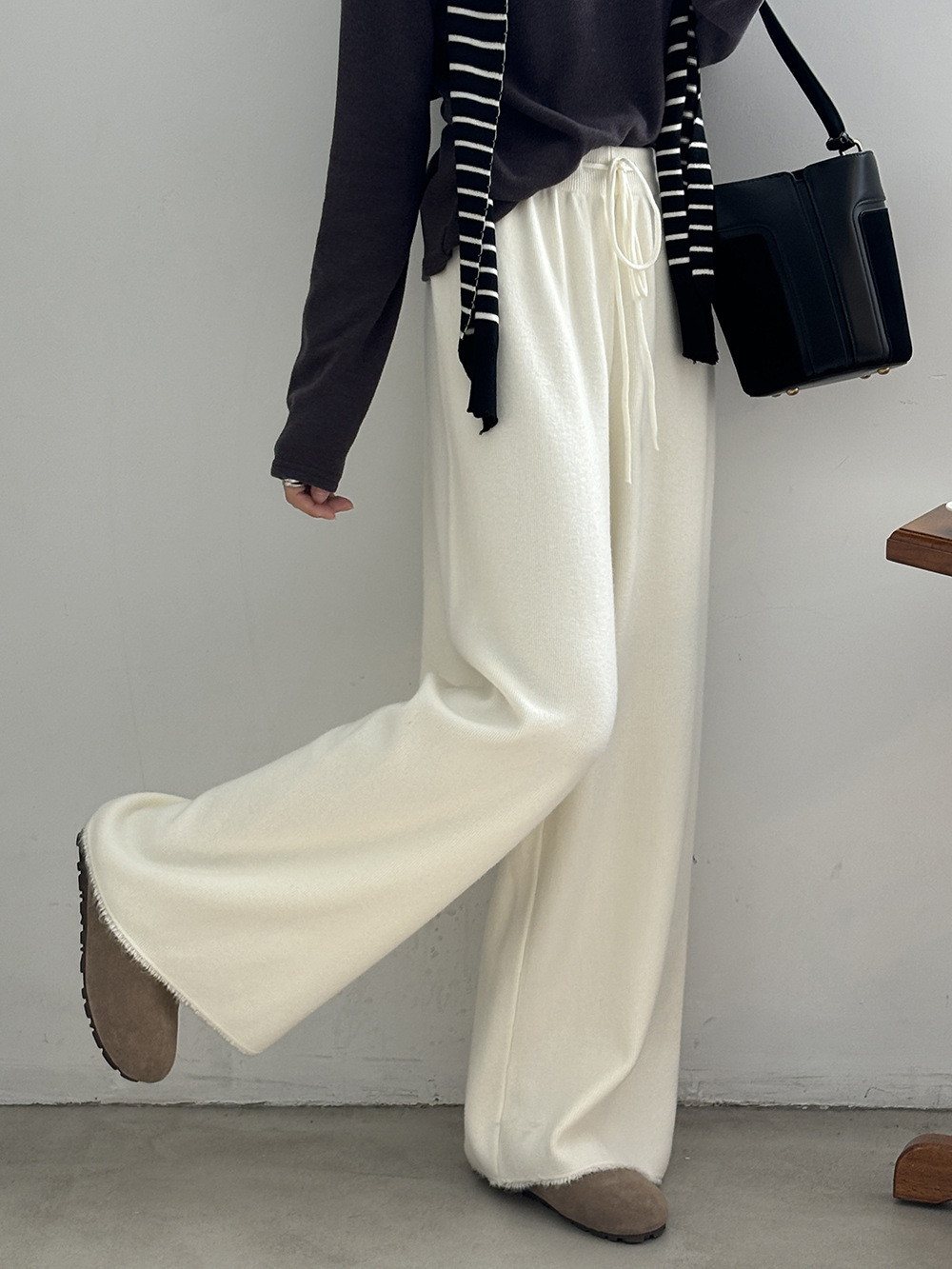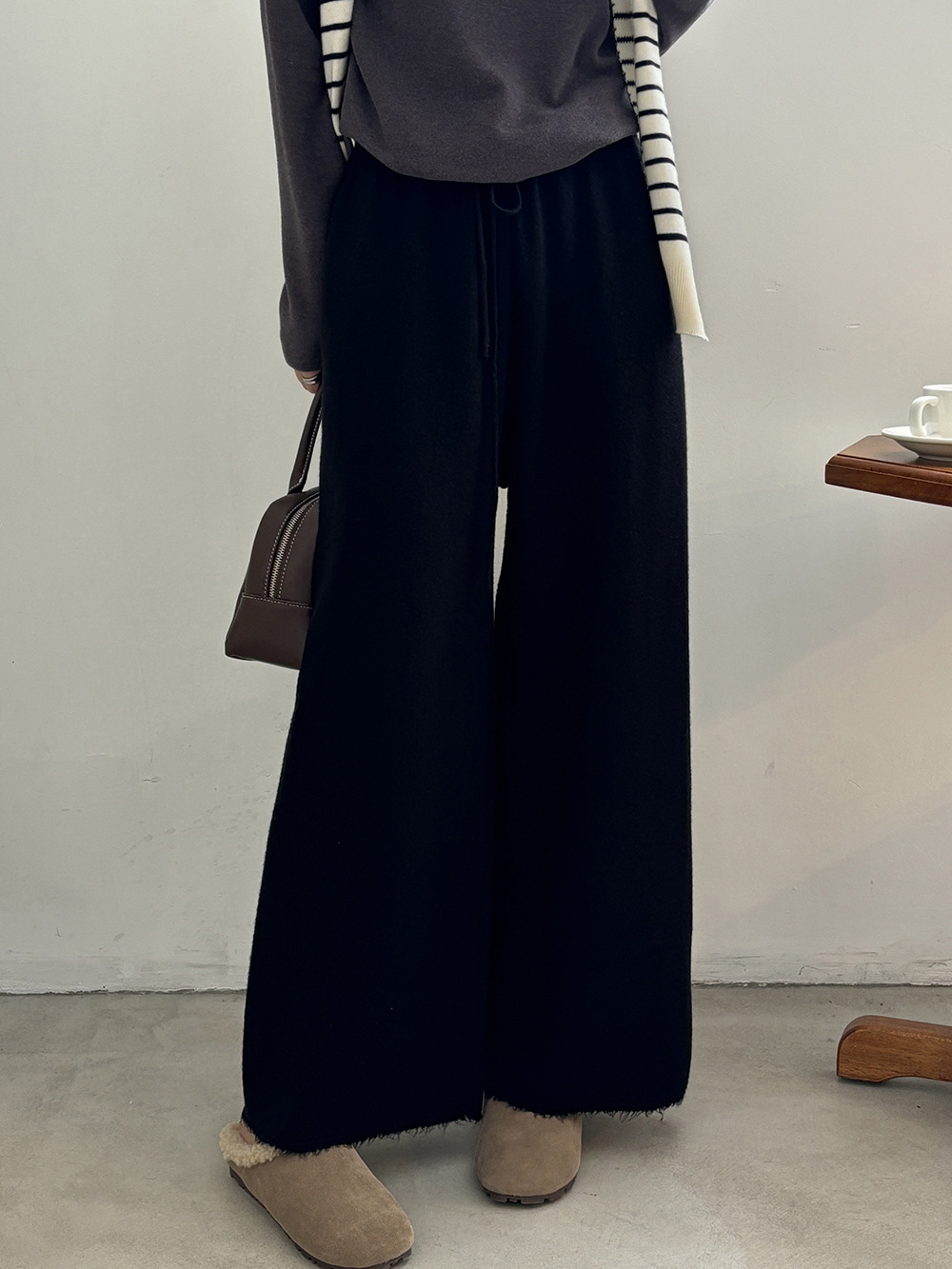 *o-ha-you*【FYS208056】慵懶風針織軟糯闊腿褲2024秋季高腰寬鬆毛線拖地褲-5色-如有需要請先諮詢