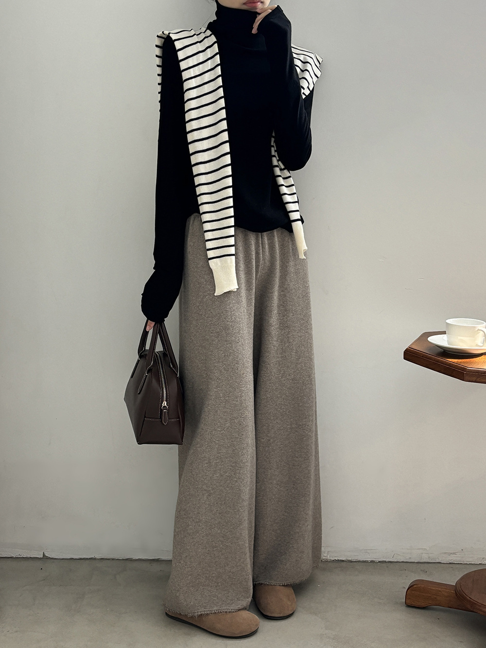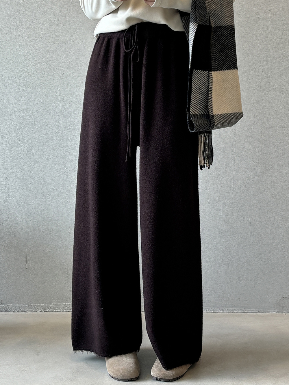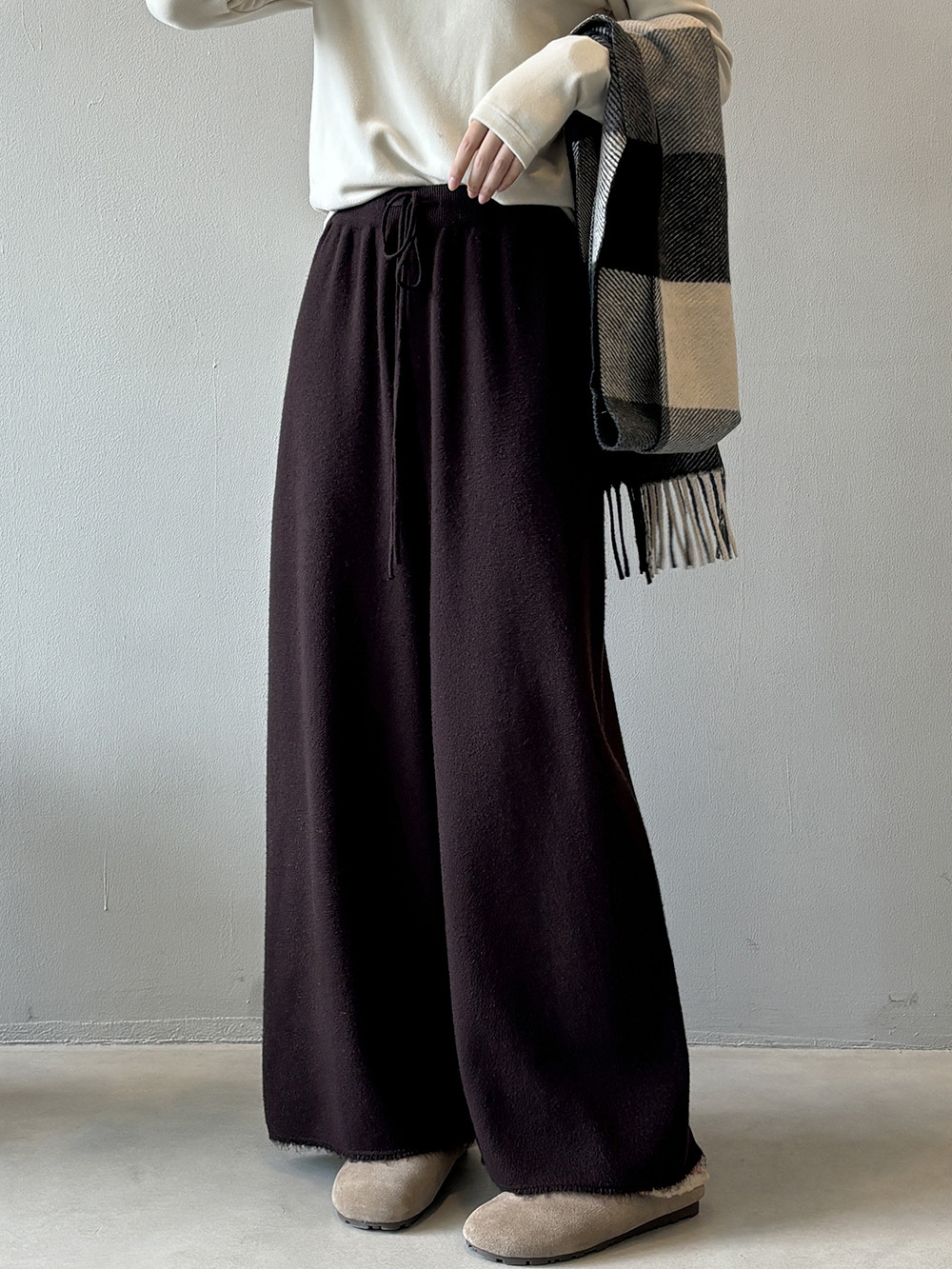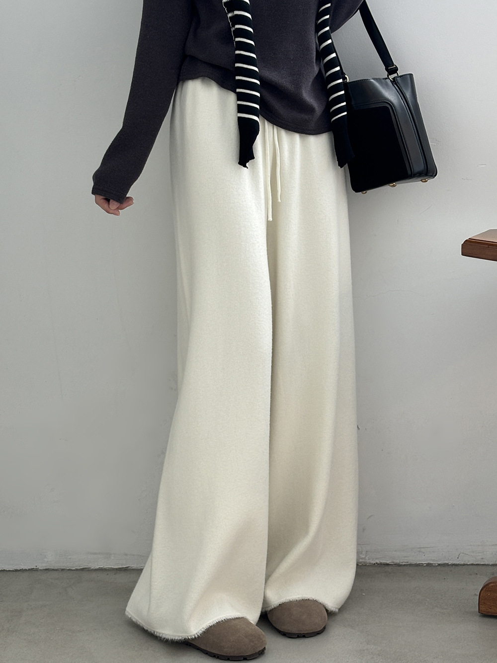 *o-ha-you*【FYS208056】慵懶風針織軟糯闊腿褲2024秋季高腰寬鬆毛線拖地褲-5色-如有需要請先諮詢