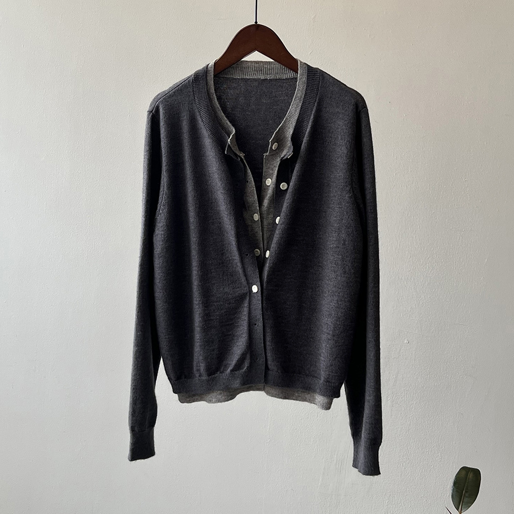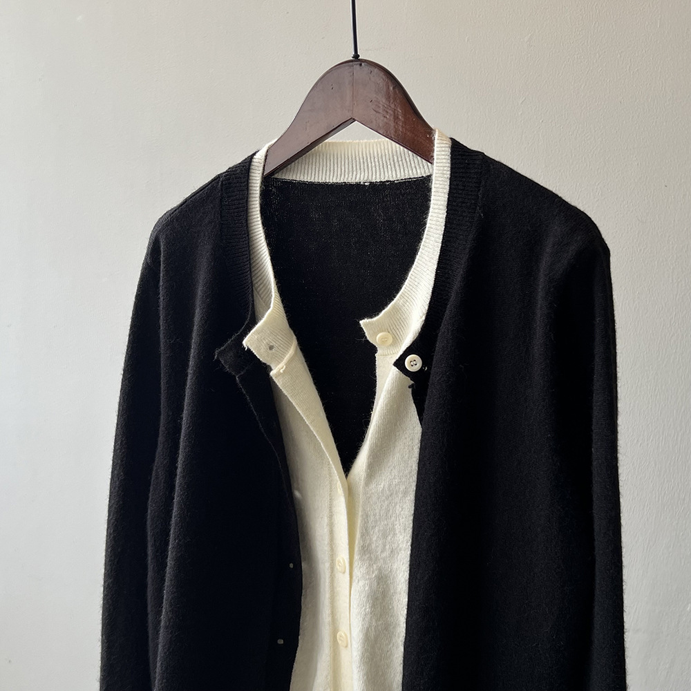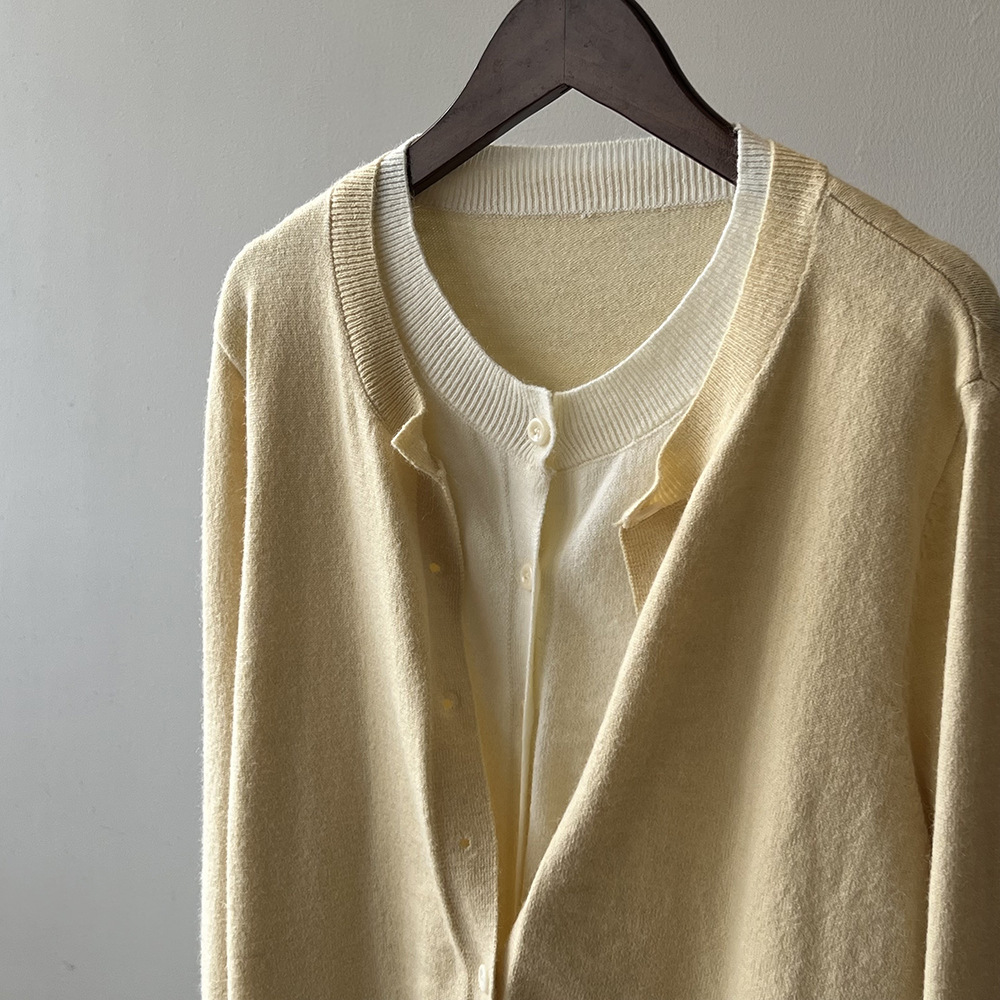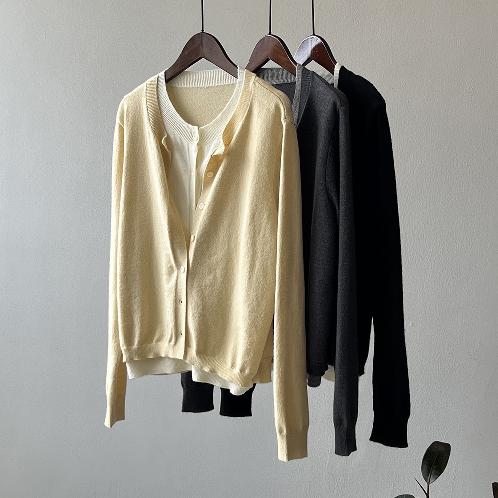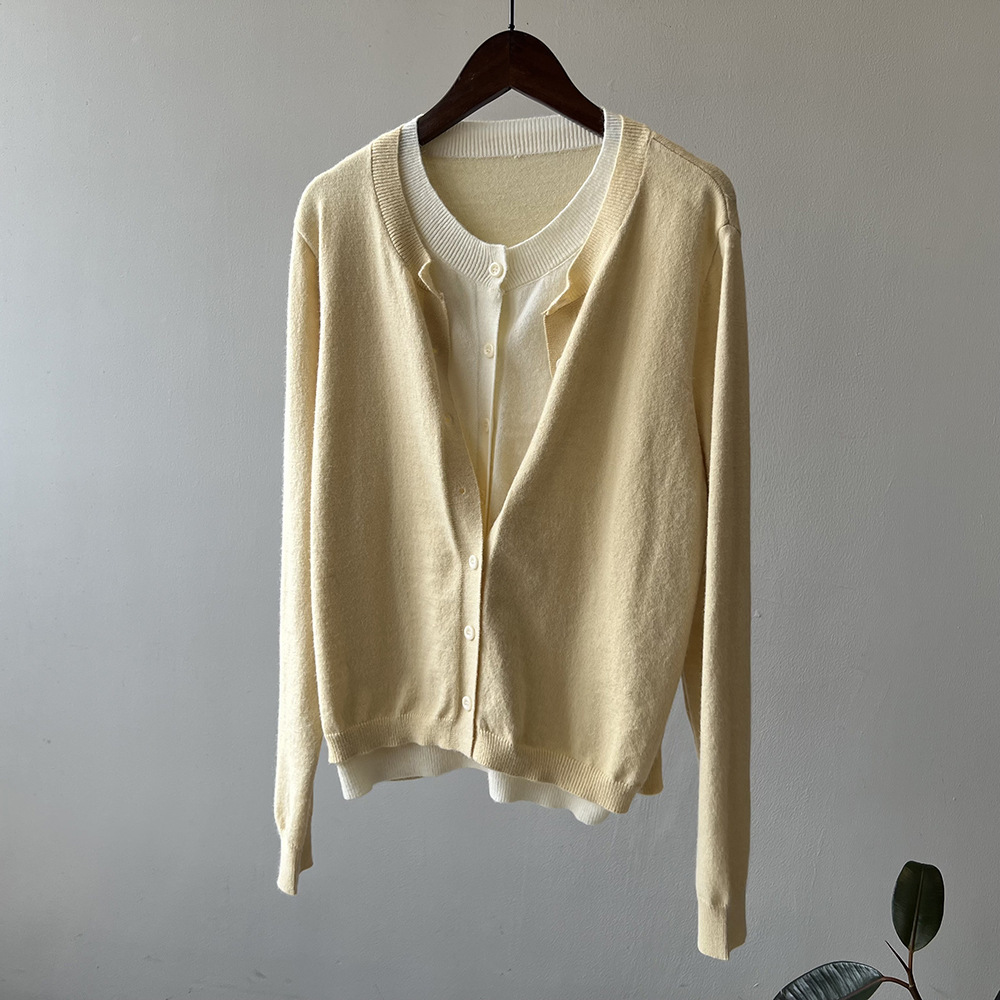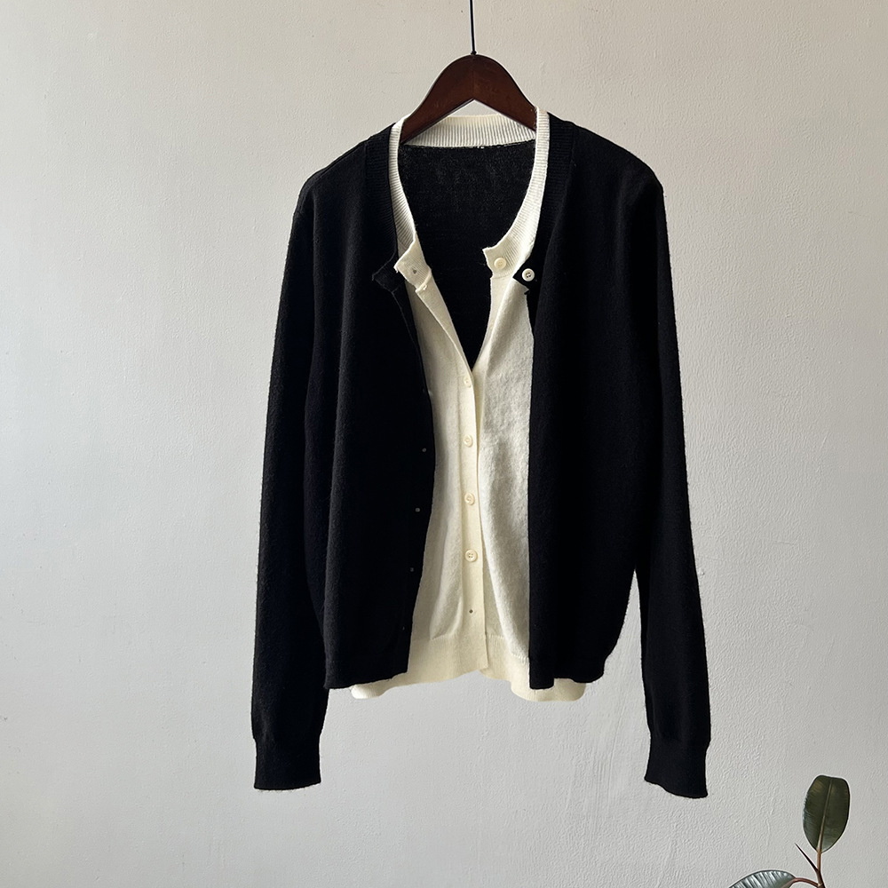 *o-ha-you*【FYS500603】拼色圓領假兩件針織開襟衫2024秋季顯瘦毛衣外套上衣-3色